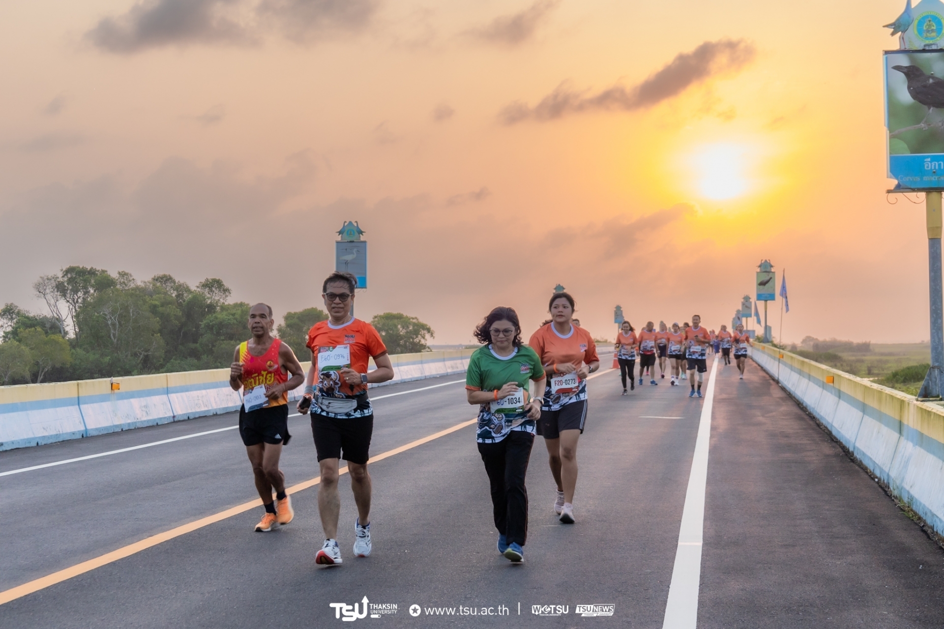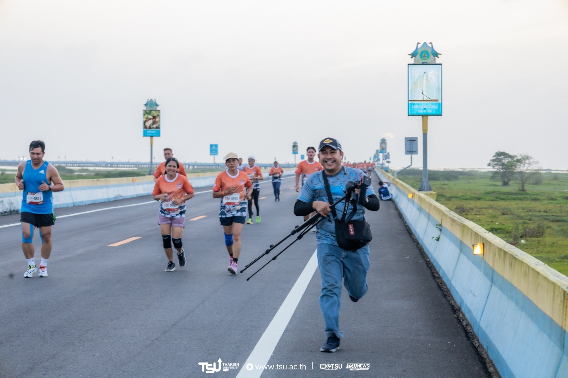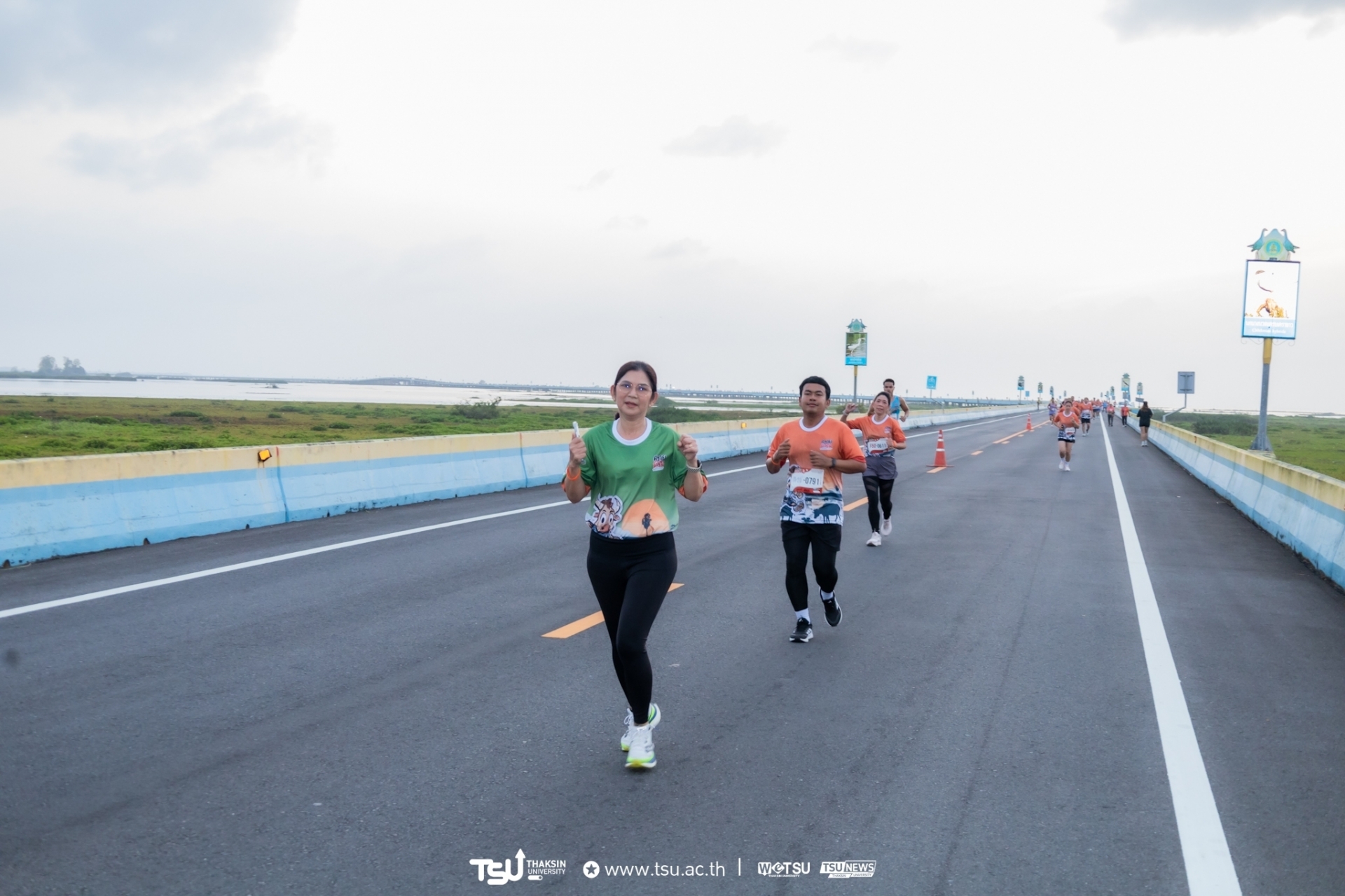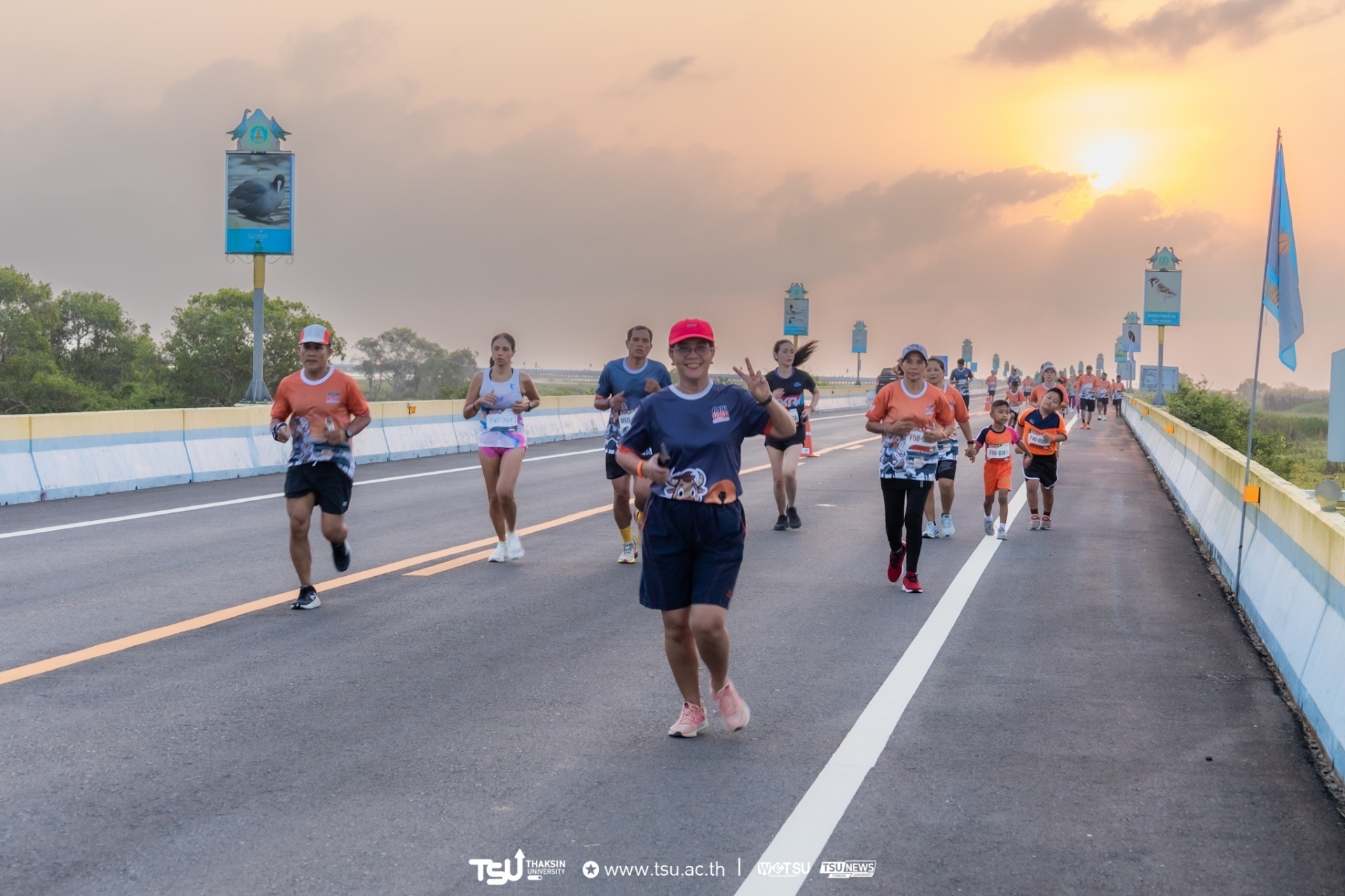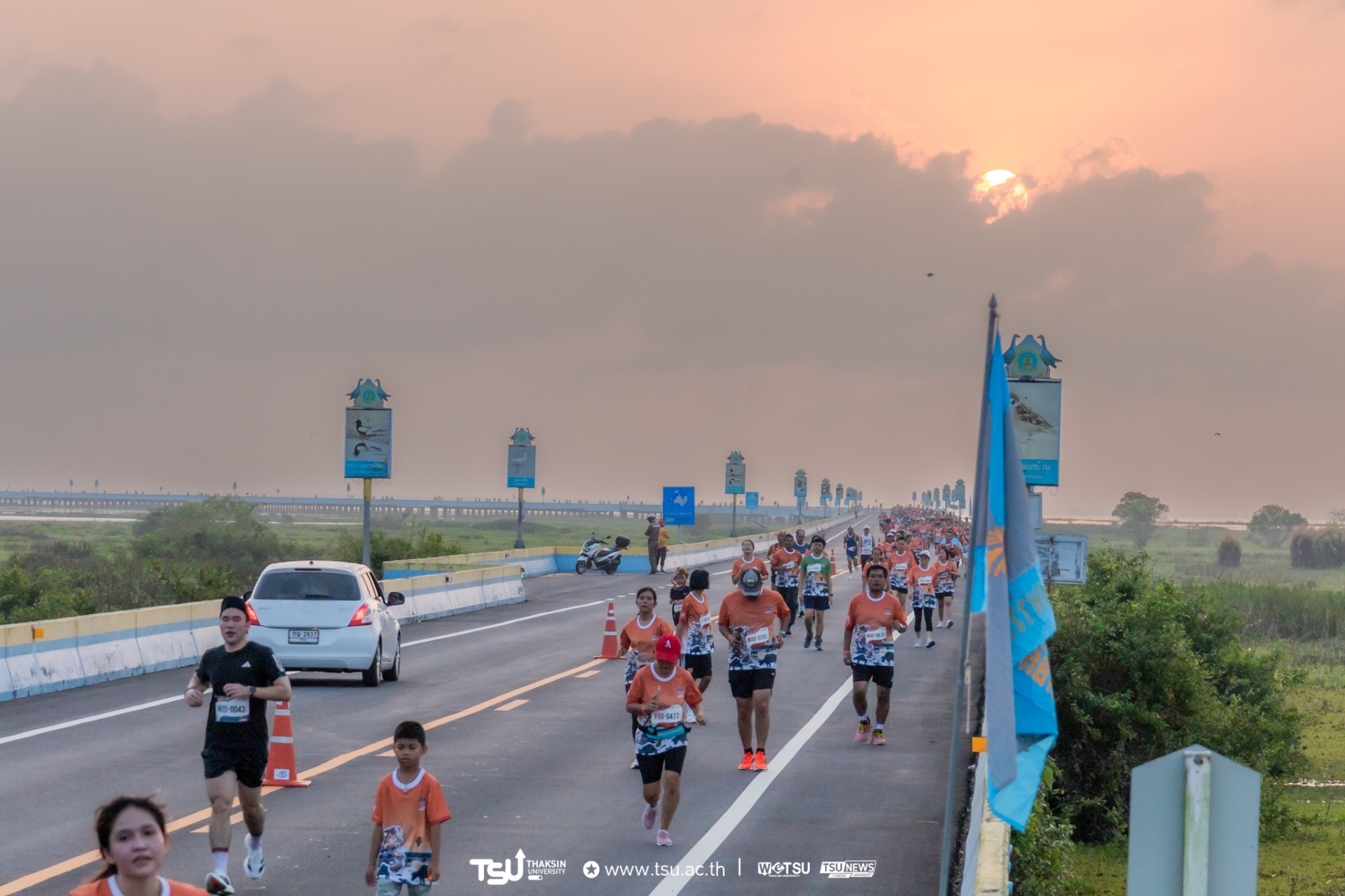 รองศาสตราจารย์ ดร.ณฐพงศ์ จิตรนิรัตน์ อธิการบดีมหาวิทยาลัยทักษิณ กล่าวว่า งานวิ่งครั้งนี้ เป็นการจัดงานบนสะพานเฉลิมพระเกียรติ 80 พรรษา ที่เชื่อมต่อจังหวัดพัทลุงและจังหวัดสงขลา ที่นอกจากจะเป็นสะพานที่ยาวที่สุดในประเทศไทยแล้ว บริเวณโดยรอบสะพานยังมีทัศนียภาพที่สวยงาม และมีความสำคัญในระดับโลก เนื่องจากพื้นที่บริเวณนี้จะมี “ควายน้ำ” หรือ “ควายปลัก” ที่ได้รับการประกาศให้เป็นพื้นที่มรดกโลกทางการเกษตร (GIAHS) แห่งแรกของประเทศไทย วันนี้จึงถือเป็นโอกาสดีของนักวิ่งทุกท่านที่ได้มาวิ่ง ณ จุด Landmark ที่สำคัญของจังหวัดพัทลุง บนสะพานเฉลิมพระเกียรติที่ทอดยาวข้ามทะเลน้อย พร้อมชมวิถีชีวิตของควายน้ำท่ามกลางแสงแรกของทะเลสาบสงขลา ท่ามกลางวิวแบบ 360 องศา สาเหตุที่มหาวิทยาลัยมาจัดงาน ณ สะพานเฉลิมพระเกียรติ 80 พรรษา เนื่องจากต้องการนำรายได้ส่วนหนึ่งมาสนับสนุนการดูแลควายน้ำ เพราะในช่วงหน้าฝนปริมาณน้ำทะเลน้อยจะสูงทำให้ควายไม่สามารถหาหญ้าบริโภคได้อย่างเพียงพอ มหาวิทยาลัยทักษิณในฐานะหน่วยงานในพื้นที่จึงอยากสนับสนุนงบประมาณในการจัดซื้อฟางเพื่อดูแลเรื่องอาหารในช่วงฤดูฝน จึงได้จัดกิจกรรมงานวิ่ง “ควายน้ำ รัน” ขึ้น ความสำเร็จทั้งหมดเกิดขึ้นได้เพราะความร่วมมือร่วมใจของภาคีเครือข่ายทั้งภายในมหาวิทยาลัย และหน่วยงานในพื้นที่ ที่ให้ความอนุเคราะห์และสนับสนุนทรัพยากรของหน่วยงานอย่างเต็มศักยภาพ จนเกิดเป็นภาพงานวิ่งที่น่าประทับใจในวันนี้