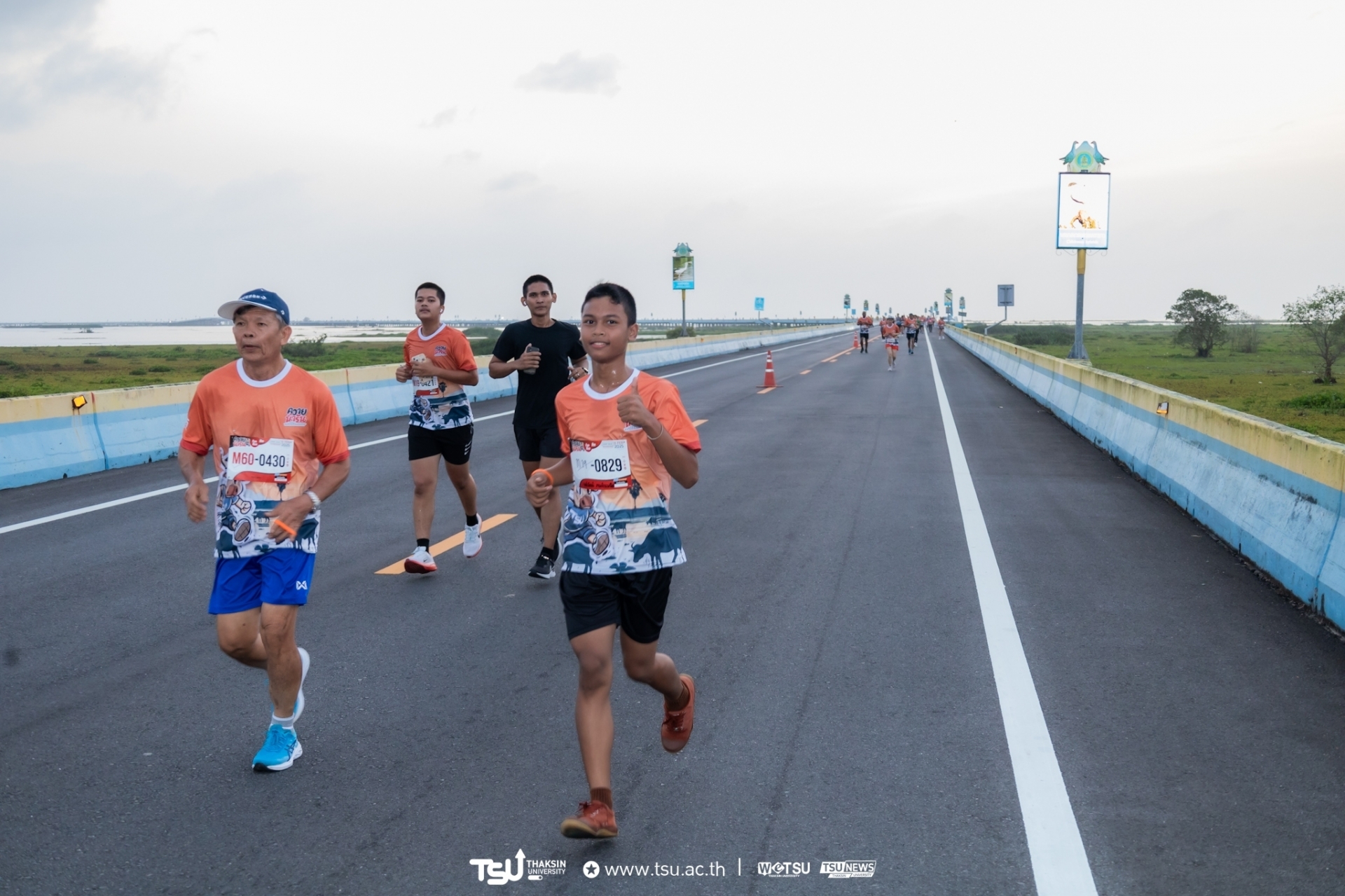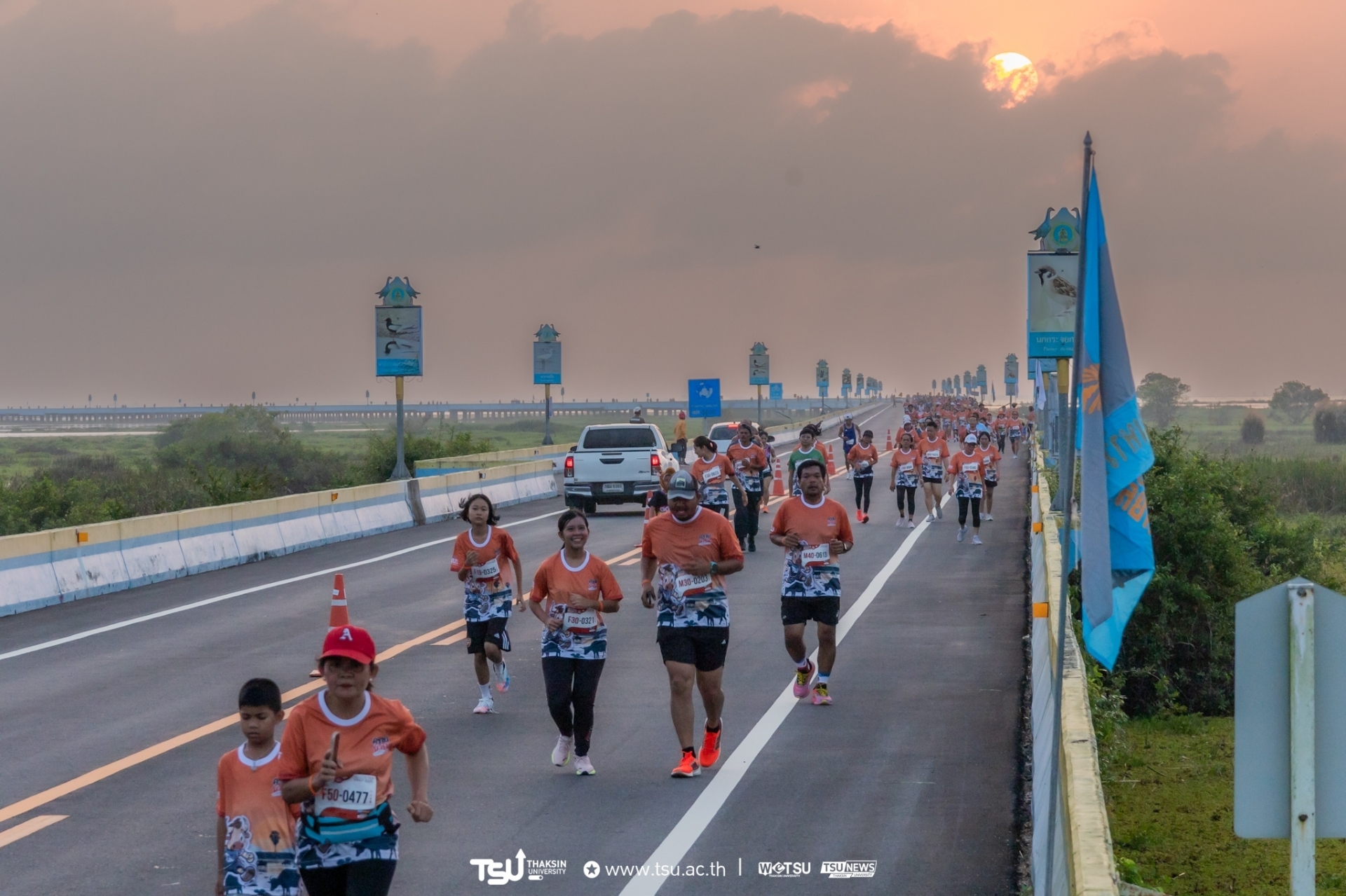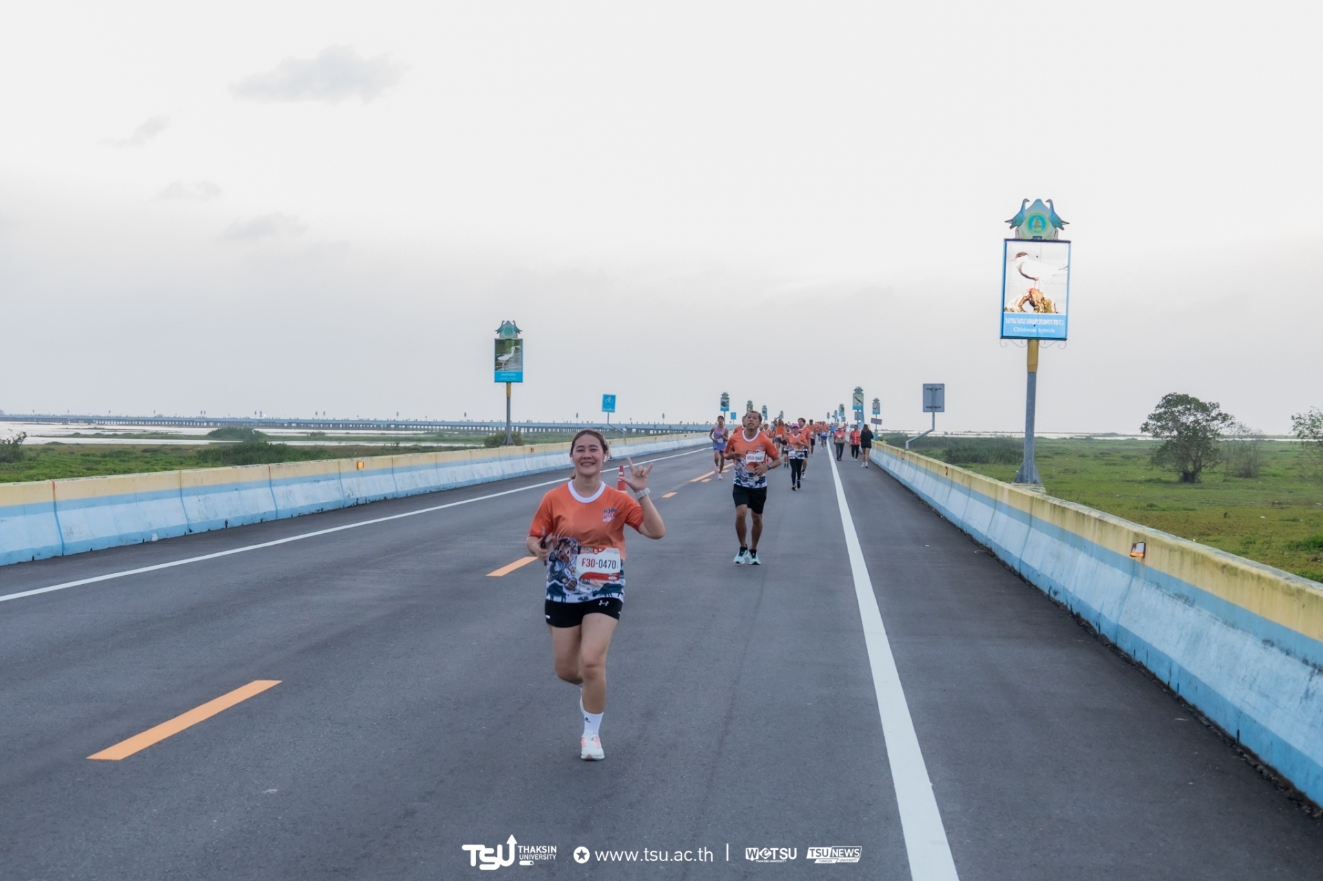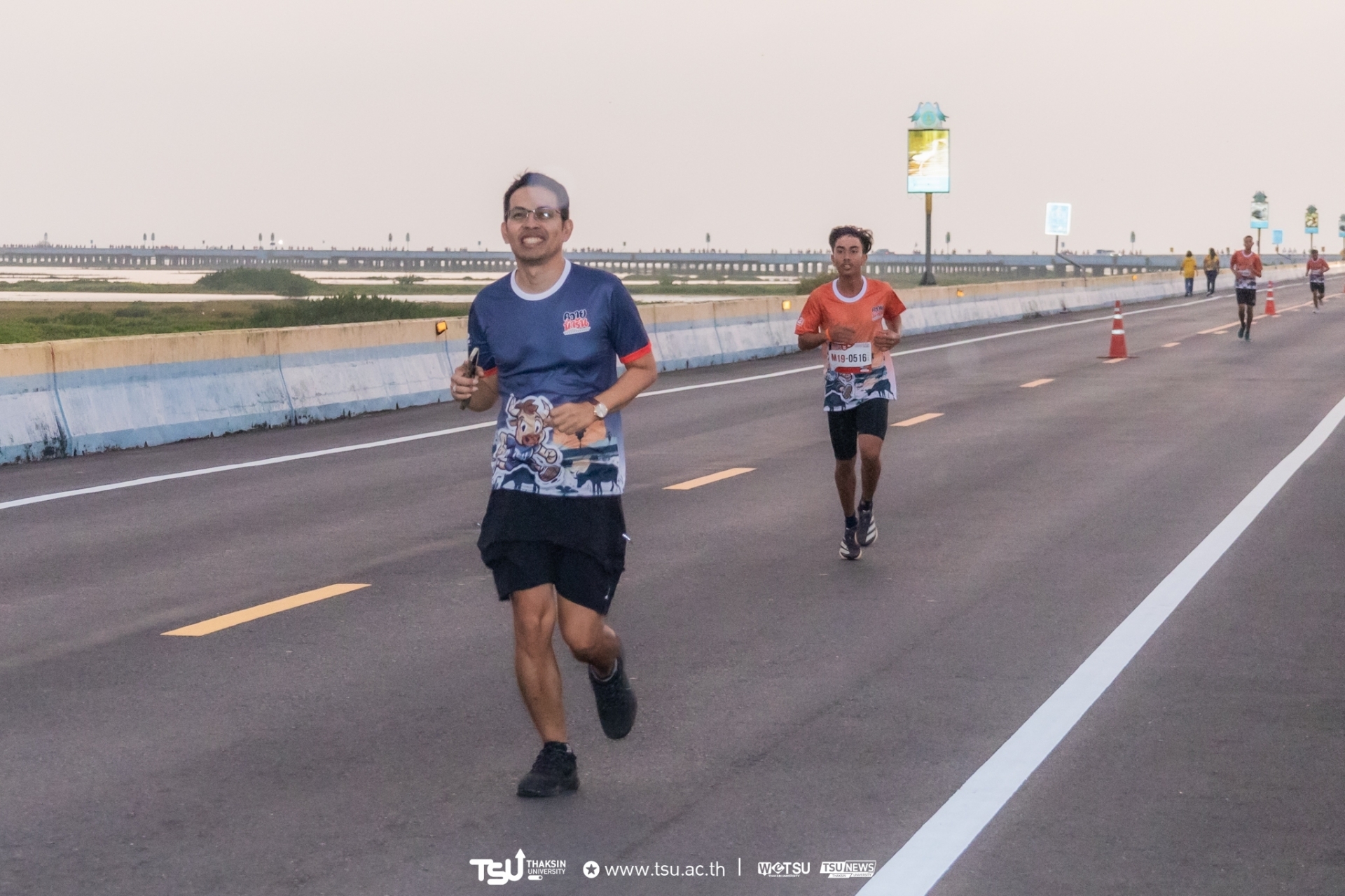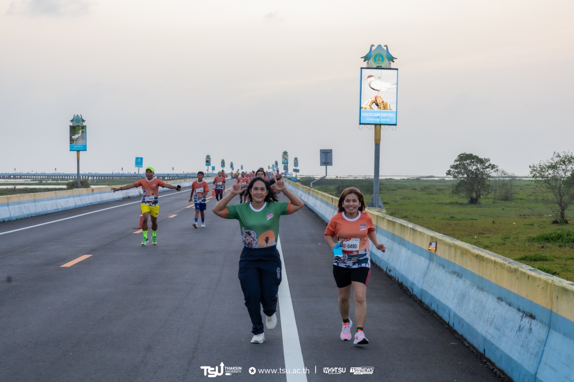 รองศาสตราจารย์ ดร.ณฐพงศ์ จิตรนิรัตน์ อธิการบดีมหาวิทยาลัยทักษิณ กล่าวว่า งานวิ่งครั้งนี้ เป็นการจัดงานบนสะพานเฉลิมพระเกียรติ 80 พรรษา ที่เชื่อมต่อจังหวัดพัทลุงและจังหวัดสงขลา ที่นอกจากจะเป็นสะพานที่ยาวที่สุดในประเทศไทยแล้ว บริเวณโดยรอบสะพานยังมีทัศนียภาพที่สวยงาม และมีความสำคัญในระดับโลก เนื่องจากพื้นที่บริเวณนี้จะมี “ควายน้ำ” หรือ “ควายปลัก” ที่ได้รับการประกาศให้เป็นพื้นที่มรดกโลกทางการเกษตร (GIAHS) แห่งแรกของประเทศไทย วันนี้จึงถือเป็นโอกาสดีของนักวิ่งทุกท่านที่ได้มาวิ่ง ณ จุด Landmark ที่สำคัญของจังหวัดพัทลุง บนสะพานเฉลิมพระเกียรติที่ทอดยาวข้ามทะเลน้อย พร้อมชมวิถีชีวิตของควายน้ำท่ามกลางแสงแรกของทะเลสาบสงขลา ท่ามกลางวิวแบบ 360 องศา สาเหตุที่มหาวิทยาลัยมาจัดงาน ณ สะพานเฉลิมพระเกียรติ 80 พรรษา เนื่องจากต้องการนำรายได้ส่วนหนึ่งมาสนับสนุนการดูแลควายน้ำ เพราะในช่วงหน้าฝนปริมาณน้ำทะเลน้อยจะสูงทำให้ควายไม่สามารถหาหญ้าบริโภคได้อย่างเพียงพอ มหาวิทยาลัยทักษิณในฐานะหน่วยงานในพื้นที่จึงอยากสนับสนุนงบประมาณในการจัดซื้อฟางเพื่อดูแลเรื่องอาหารในช่วงฤดูฝน จึงได้จัดกิจกรรมงานวิ่ง “ควายน้ำ รัน” ขึ้น ความสำเร็จทั้งหมดเกิดขึ้นได้เพราะความร่วมมือร่วมใจของภาคีเครือข่ายทั้งภายในมหาวิทยาลัย และหน่วยงานในพื้นที่ ที่ให้ความอนุเคราะห์และสนับสนุนทรัพยากรของหน่วยงานอย่างเต็มศักยภาพ จนเกิดเป็นภาพงานวิ่งที่น่าประทับใจในวันนี้