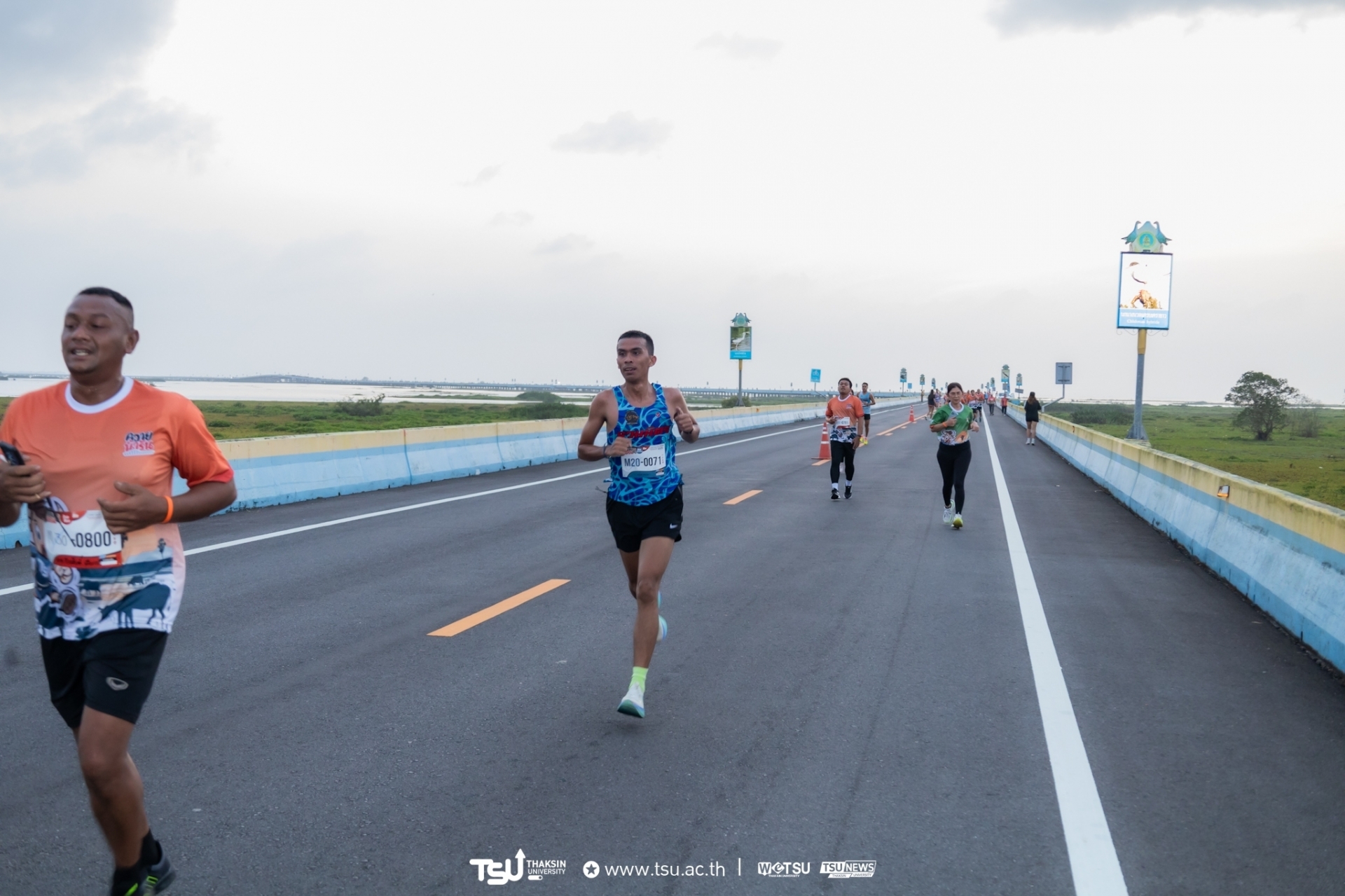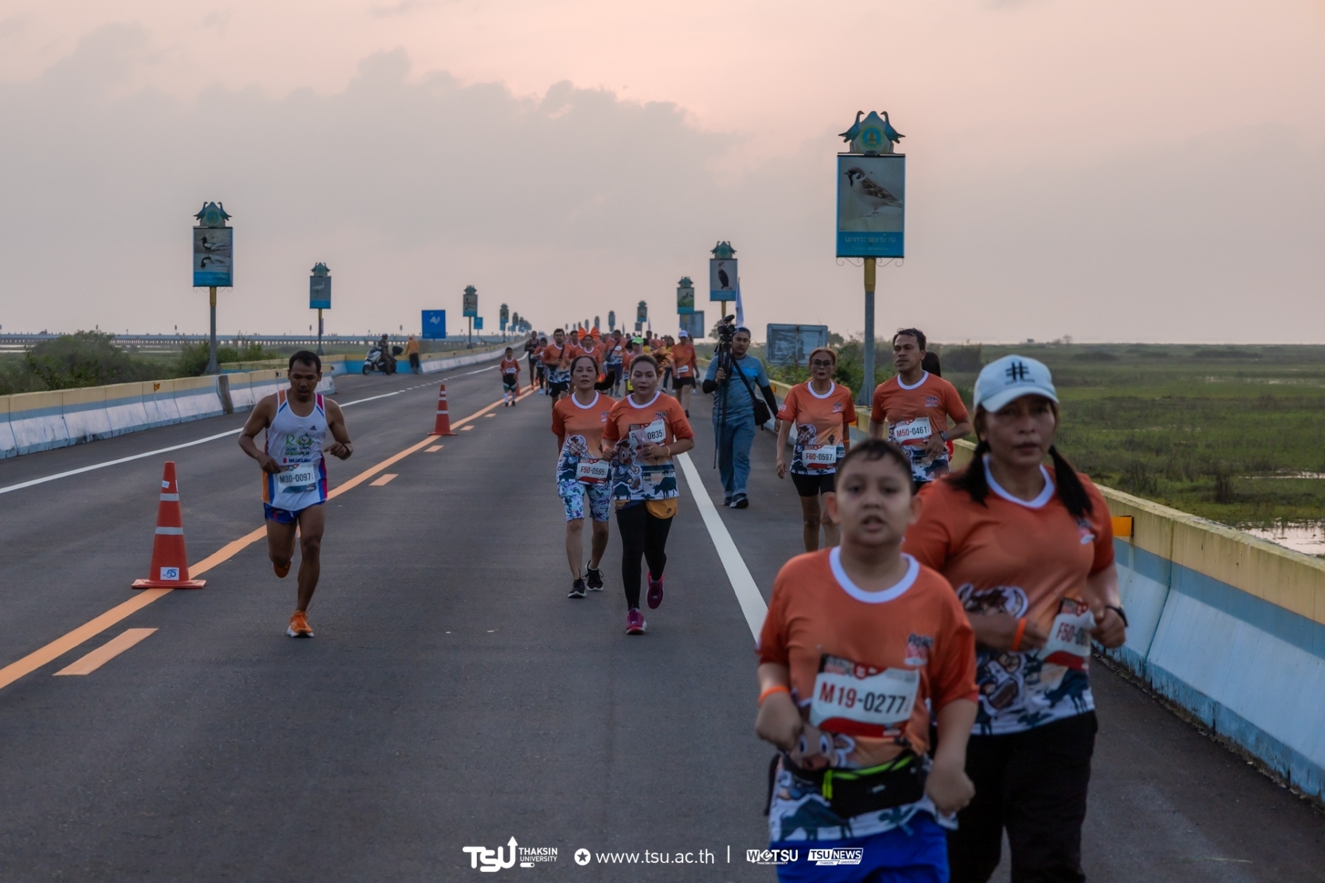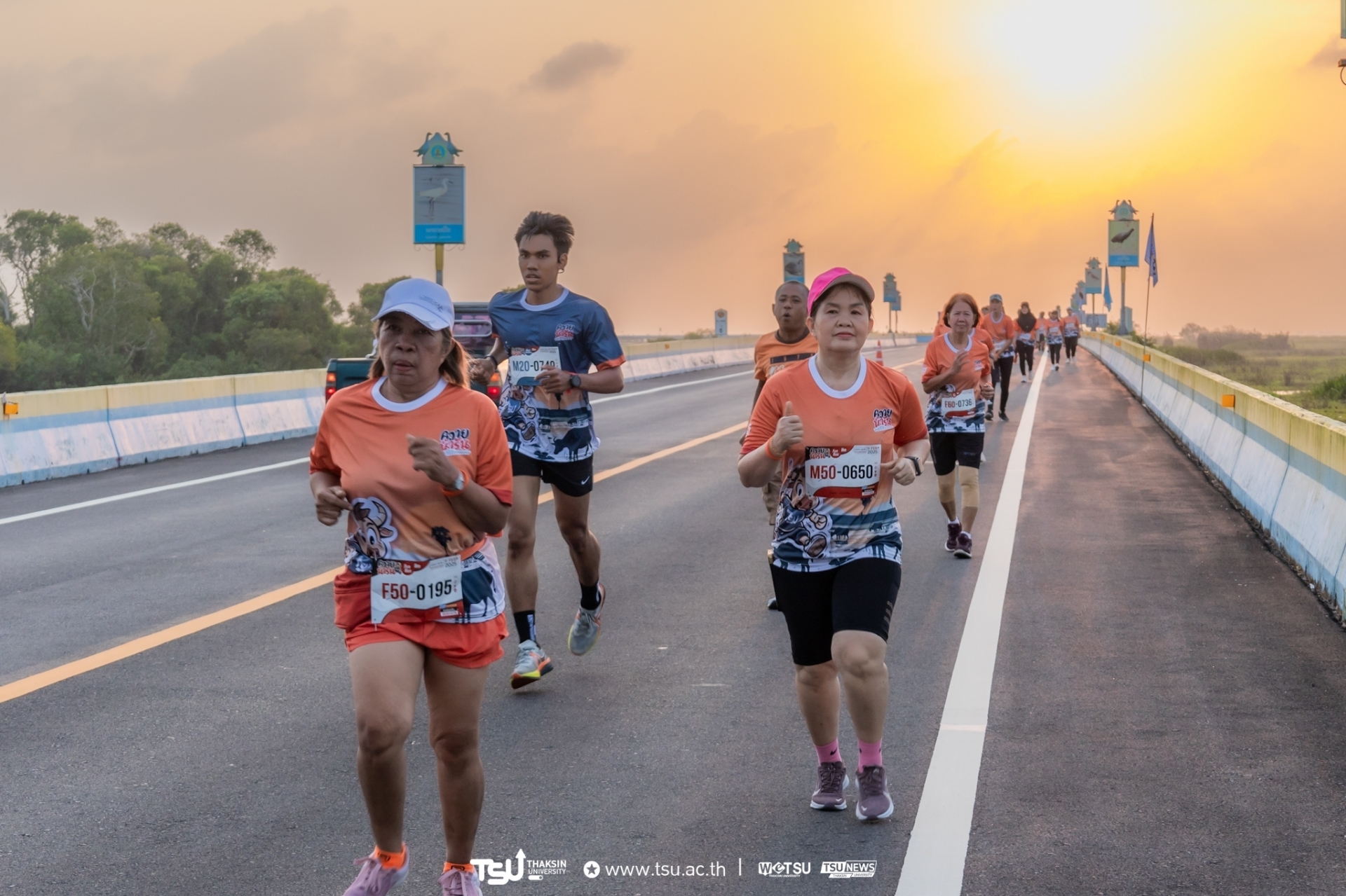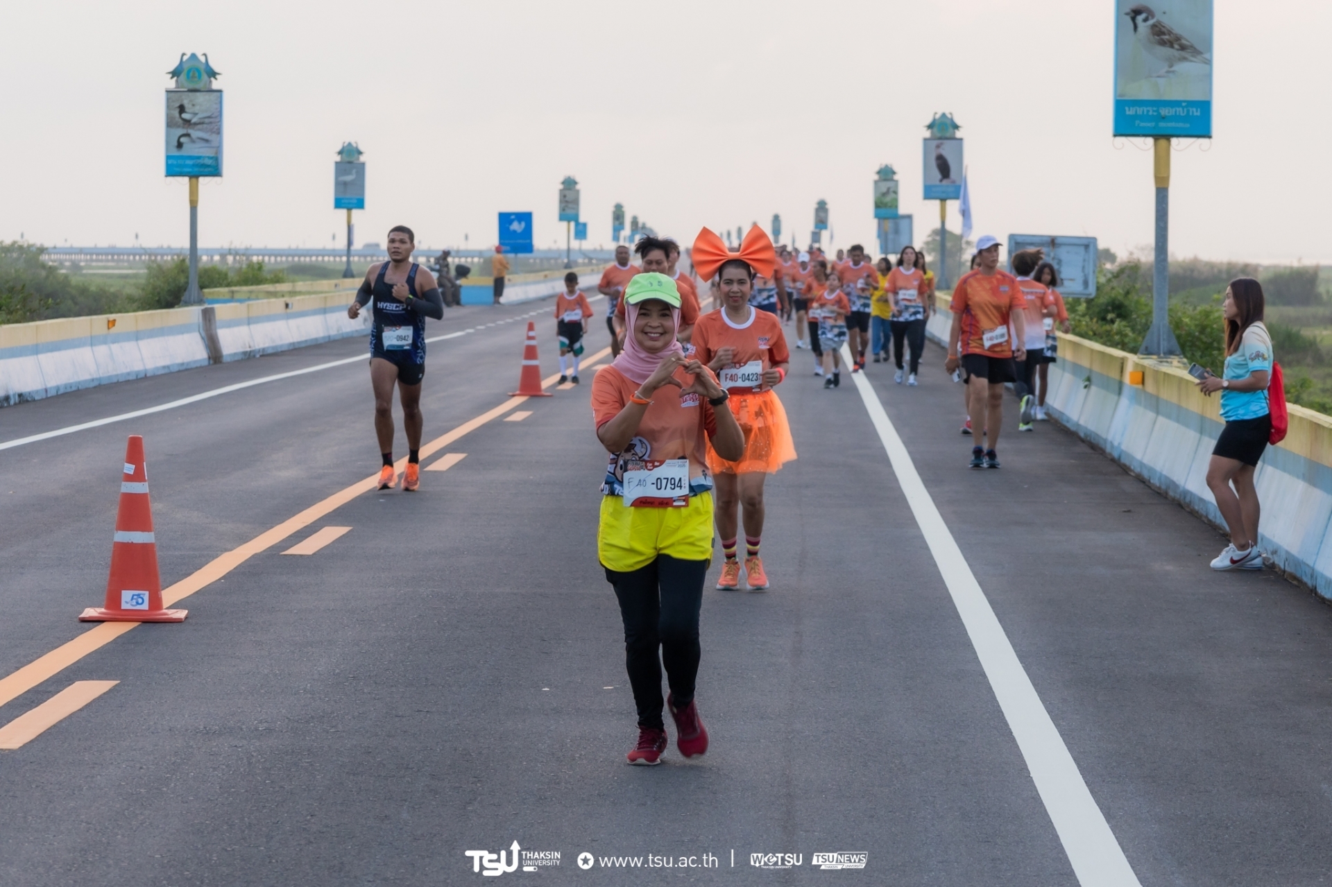 รองศาสตราจารย์ ดร.ณฐพงศ์ จิตรนิรัตน์ อธิการบดีมหาวิทยาลัยทักษิณ กล่าวว่า งานวิ่งครั้งนี้ เป็นการจัดงานบนสะพานเฉลิมพระเกียรติ 80 พรรษา ที่เชื่อมต่อจังหวัดพัทลุงและจังหวัดสงขลา ที่นอกจากจะเป็นสะพานที่ยาวที่สุดในประเทศไทยแล้ว บริเวณโดยรอบสะพานยังมีทัศนียภาพที่สวยงาม และมีความสำคัญในระดับโลก เนื่องจากพื้นที่บริเวณนี้จะมี “ควายน้ำ” หรือ “ควายปลัก” ที่ได้รับการประกาศให้เป็นพื้นที่มรดกโลกทางการเกษตร (GIAHS) แห่งแรกของประเทศไทย วันนี้จึงถือเป็นโอกาสดีของนักวิ่งทุกท่านที่ได้มาวิ่ง ณ จุด Landmark ที่สำคัญของจังหวัดพัทลุง บนสะพานเฉลิมพระเกียรติที่ทอดยาวข้ามทะเลน้อย พร้อมชมวิถีชีวิตของควายน้ำท่ามกลางแสงแรกของทะเลสาบสงขลา ท่ามกลางวิวแบบ 360 องศา สาเหตุที่มหาวิทยาลัยมาจัดงาน ณ สะพานเฉลิมพระเกียรติ 80 พรรษา เนื่องจากต้องการนำรายได้ส่วนหนึ่งมาสนับสนุนการดูแลควายน้ำ เพราะในช่วงหน้าฝนปริมาณน้ำทะเลน้อยจะสูงทำให้ควายไม่สามารถหาหญ้าบริโภคได้อย่างเพียงพอ มหาวิทยาลัยทักษิณในฐานะหน่วยงานในพื้นที่จึงอยากสนับสนุนงบประมาณในการจัดซื้อฟางเพื่อดูแลเรื่องอาหารในช่วงฤดูฝน จึงได้จัดกิจกรรมงานวิ่ง “ควายน้ำ รัน” ขึ้น ความสำเร็จทั้งหมดเกิดขึ้นได้เพราะความร่วมมือร่วมใจของภาคีเครือข่ายทั้งภายในมหาวิทยาลัย และหน่วยงานในพื้นที่ ที่ให้ความอนุเคราะห์และสนับสนุนทรัพยากรของหน่วยงานอย่างเต็มศักยภาพ จนเกิดเป็นภาพงานวิ่งที่น่าประทับใจในวันนี้