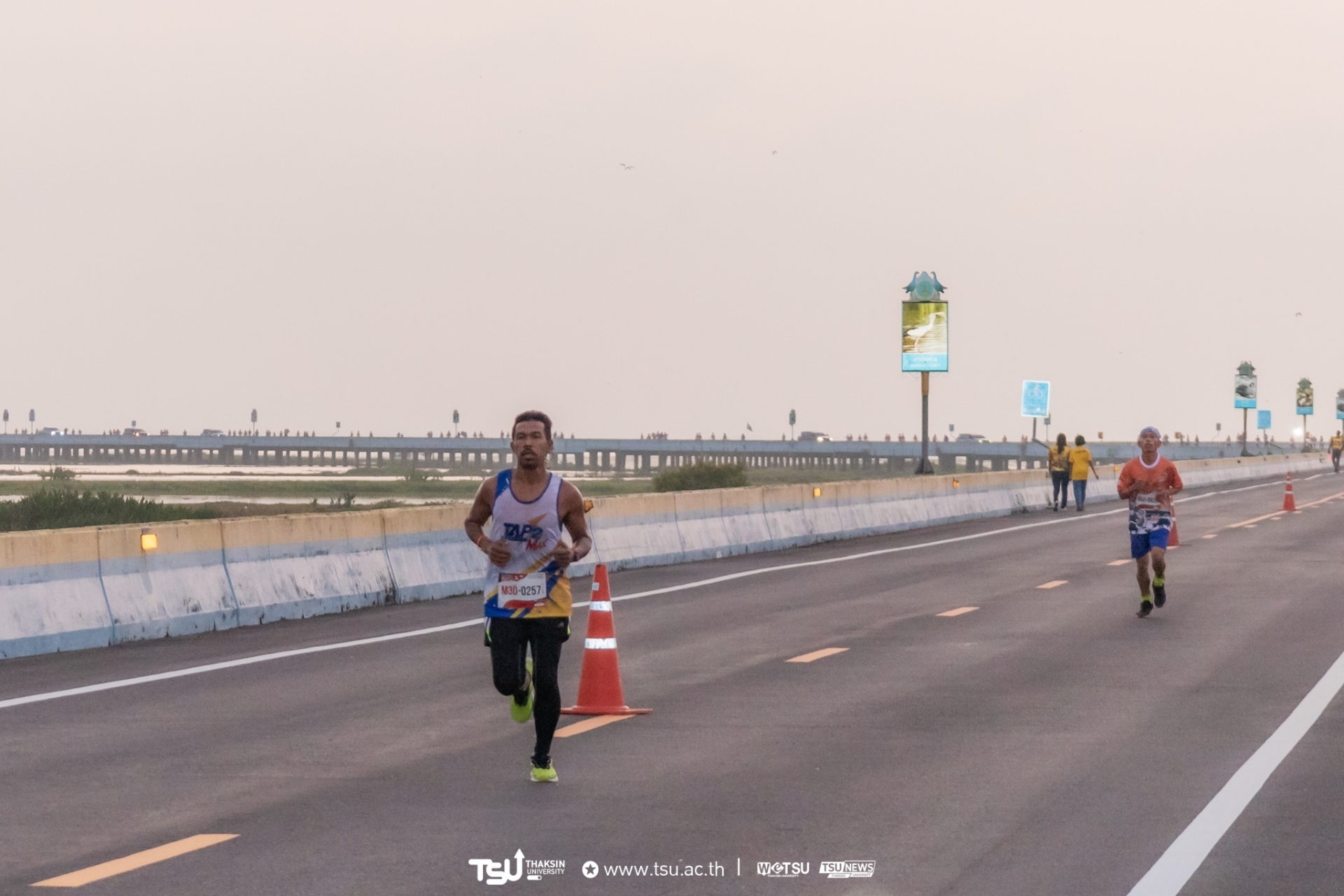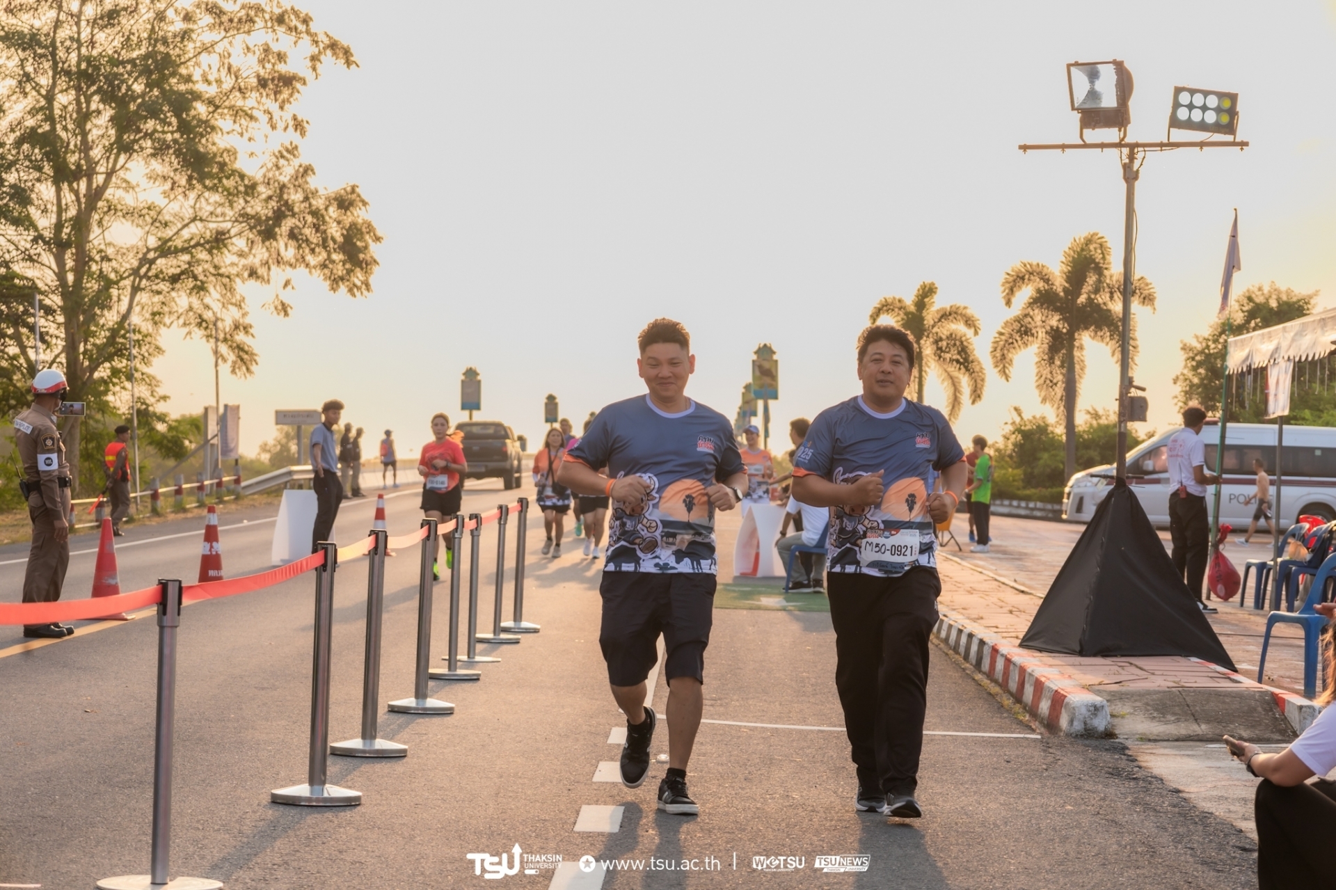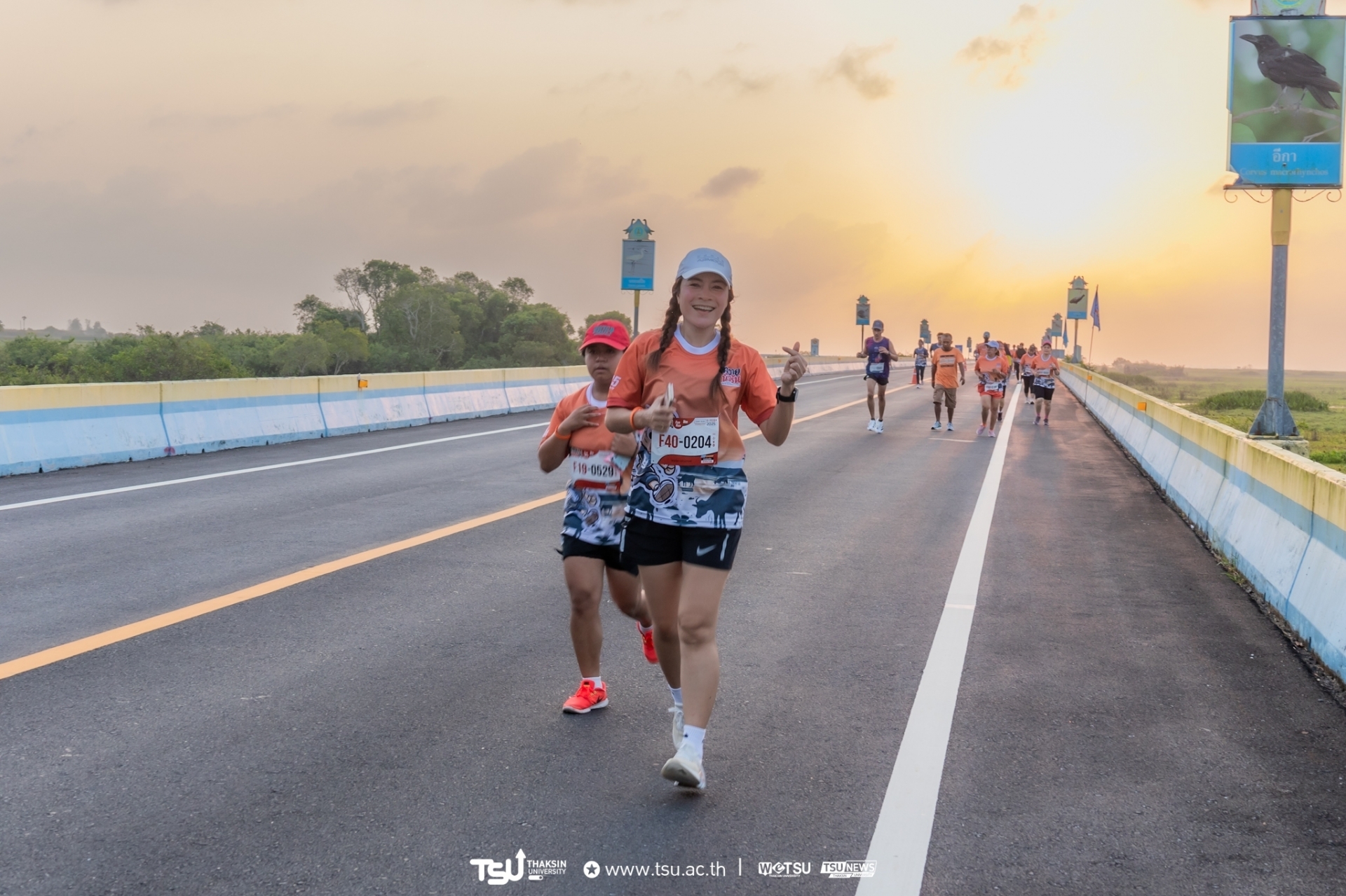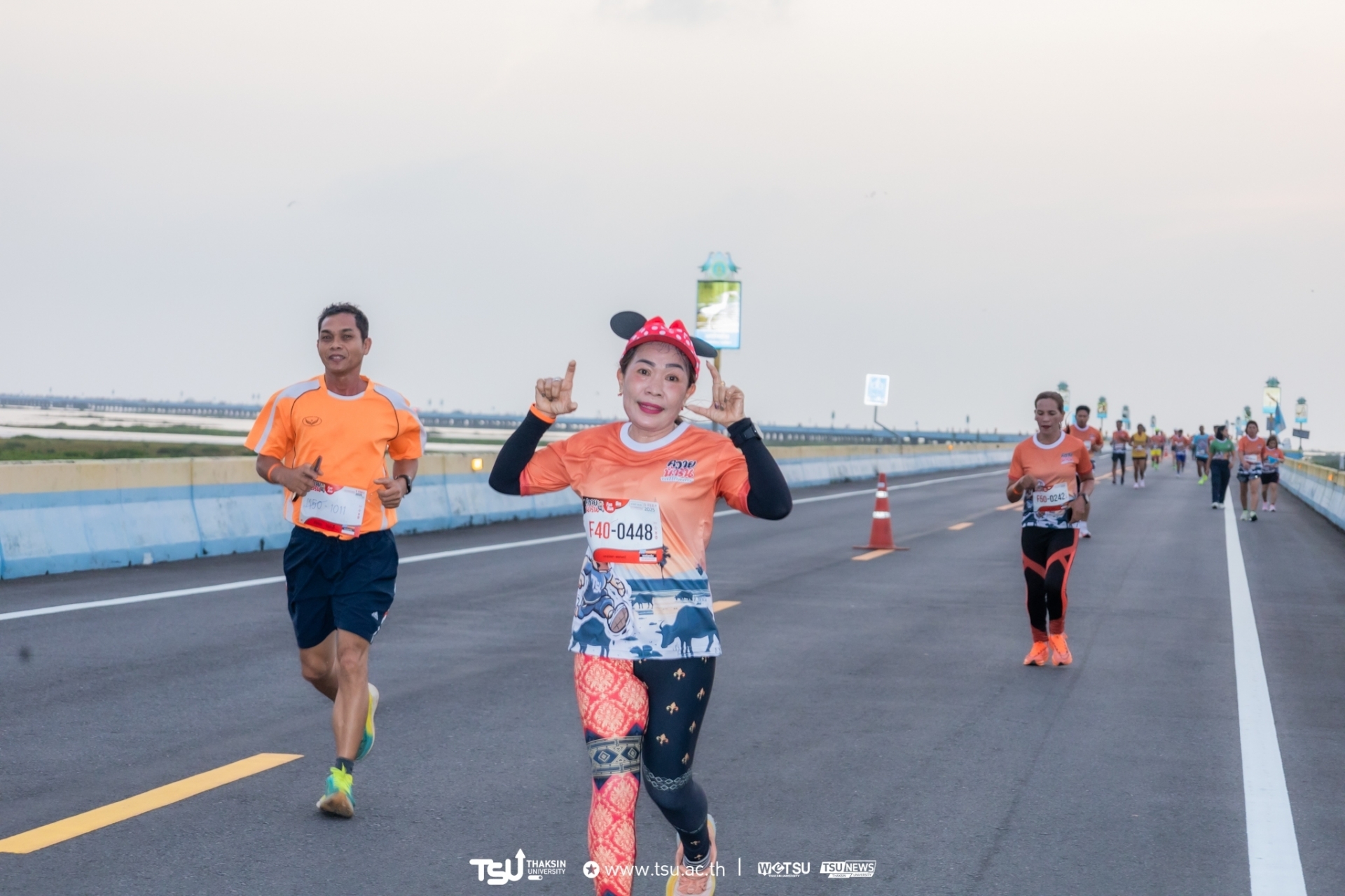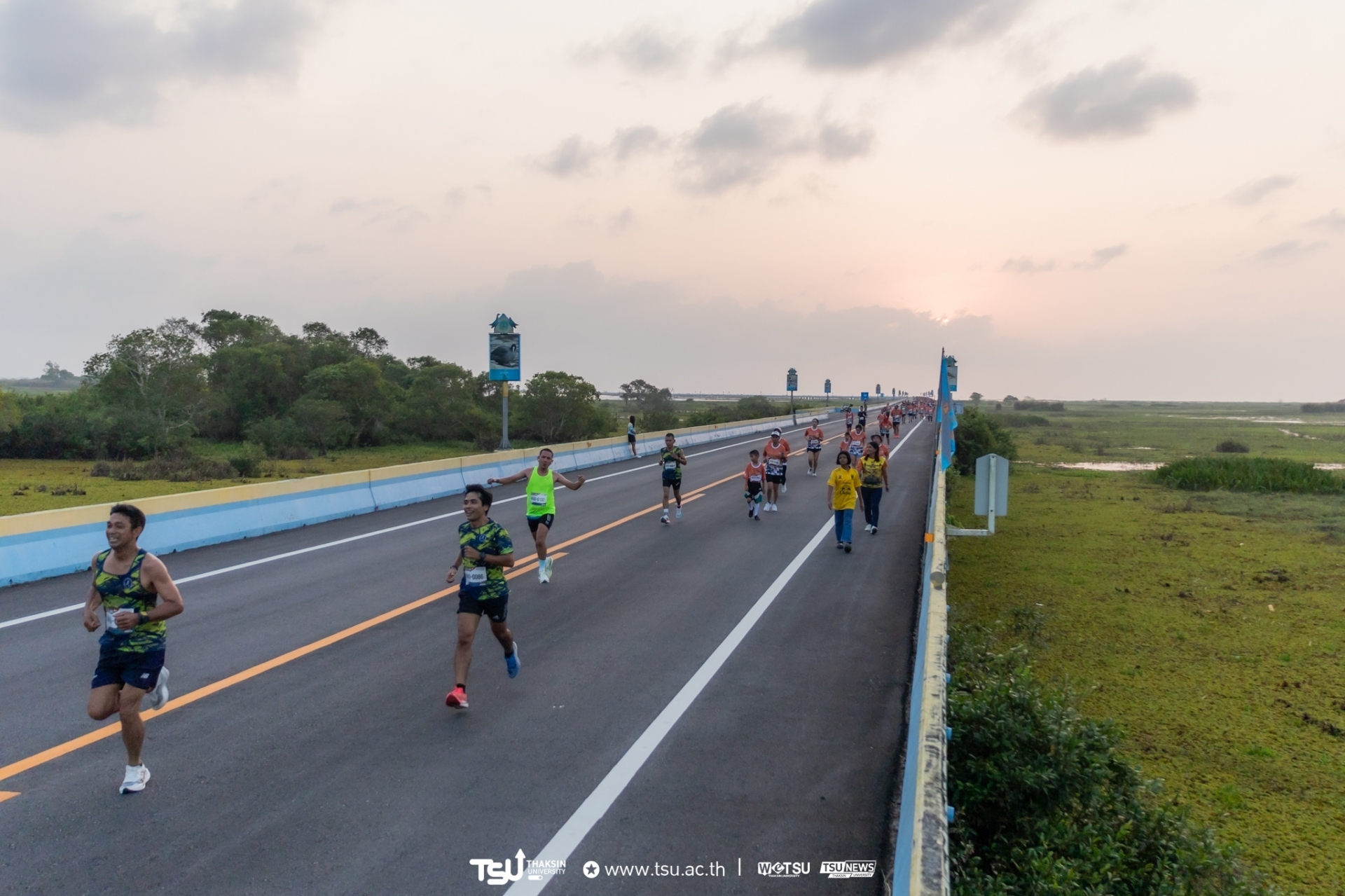 รองศาสตราจารย์ ดร.ณฐพงศ์ จิตรนิรัตน์ อธิการบดีมหาวิทยาลัยทักษิณ กล่าวว่า งานวิ่งครั้งนี้ เป็นการจัดงานบนสะพานเฉลิมพระเกียรติ 80 พรรษา ที่เชื่อมต่อจังหวัดพัทลุงและจังหวัดสงขลา ที่นอกจากจะเป็นสะพานที่ยาวที่สุดในประเทศไทยแล้ว บริเวณโดยรอบสะพานยังมีทัศนียภาพที่สวยงาม และมีความสำคัญในระดับโลก เนื่องจากพื้นที่บริเวณนี้จะมี “ควายน้ำ” หรือ “ควายปลัก” ที่ได้รับการประกาศให้เป็นพื้นที่มรดกโลกทางการเกษตร (GIAHS) แห่งแรกของประเทศไทย วันนี้จึงถือเป็นโอกาสดีของนักวิ่งทุกท่านที่ได้มาวิ่ง ณ จุด Landmark ที่สำคัญของจังหวัดพัทลุง บนสะพานเฉลิมพระเกียรติที่ทอดยาวข้ามทะเลน้อย พร้อมชมวิถีชีวิตของควายน้ำท่ามกลางแสงแรกของทะเลสาบสงขลา ท่ามกลางวิวแบบ 360 องศา สาเหตุที่มหาวิทยาลัยมาจัดงาน ณ สะพานเฉลิมพระเกียรติ 80 พรรษา เนื่องจากต้องการนำรายได้ส่วนหนึ่งมาสนับสนุนการดูแลควายน้ำ เพราะในช่วงหน้าฝนปริมาณน้ำทะเลน้อยจะสูงทำให้ควายไม่สามารถหาหญ้าบริโภคได้อย่างเพียงพอ มหาวิทยาลัยทักษิณในฐานะหน่วยงานในพื้นที่จึงอยากสนับสนุนงบประมาณในการจัดซื้อฟางเพื่อดูแลเรื่องอาหารในช่วงฤดูฝน จึงได้จัดกิจกรรมงานวิ่ง “ควายน้ำ รัน” ขึ้น ความสำเร็จทั้งหมดเกิดขึ้นได้เพราะความร่วมมือร่วมใจของภาคีเครือข่ายทั้งภายในมหาวิทยาลัย และหน่วยงานในพื้นที่ ที่ให้ความอนุเคราะห์และสนับสนุนทรัพยากรของหน่วยงานอย่างเต็มศักยภาพ จนเกิดเป็นภาพงานวิ่งที่น่าประทับใจในวันนี้