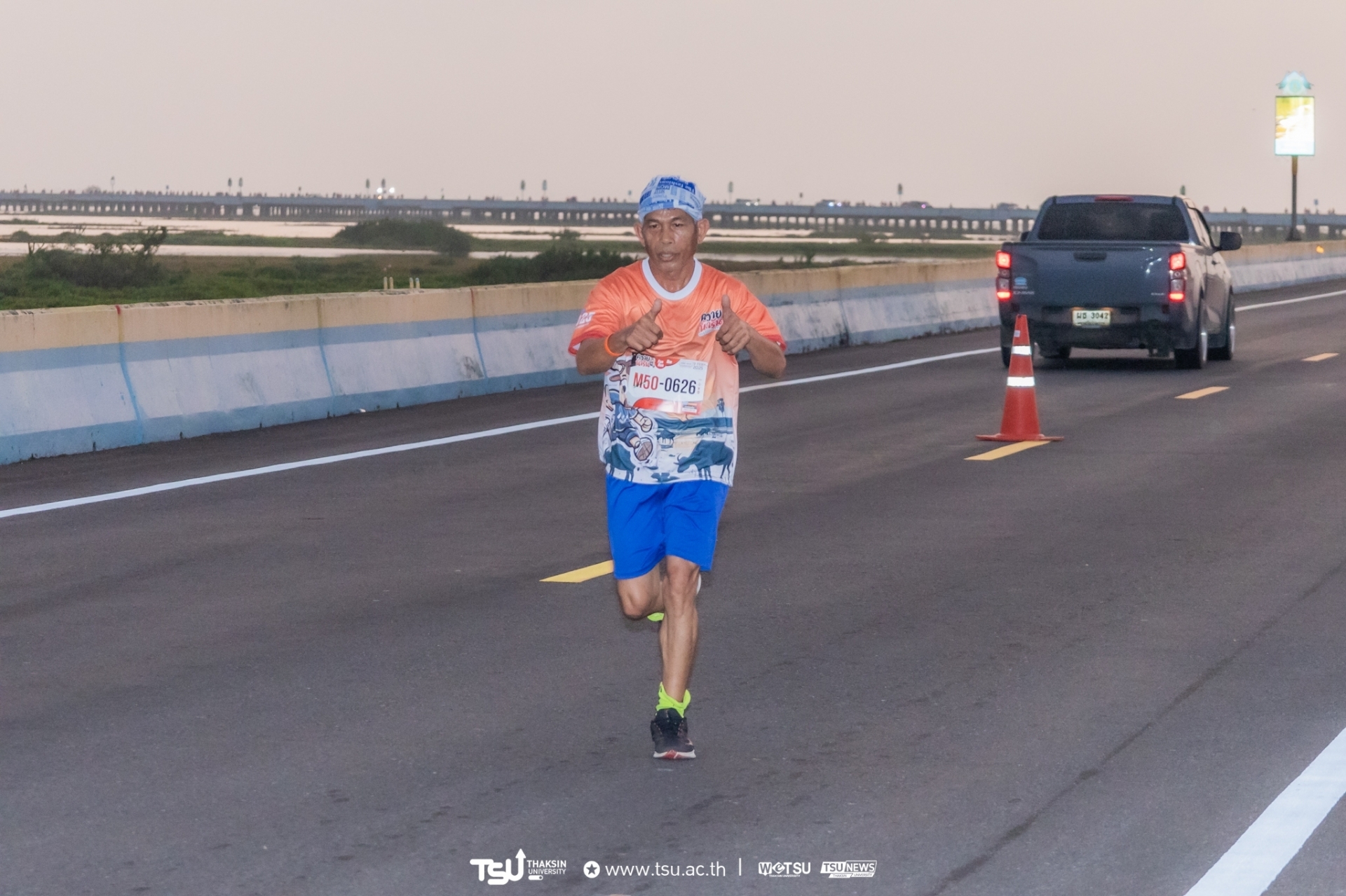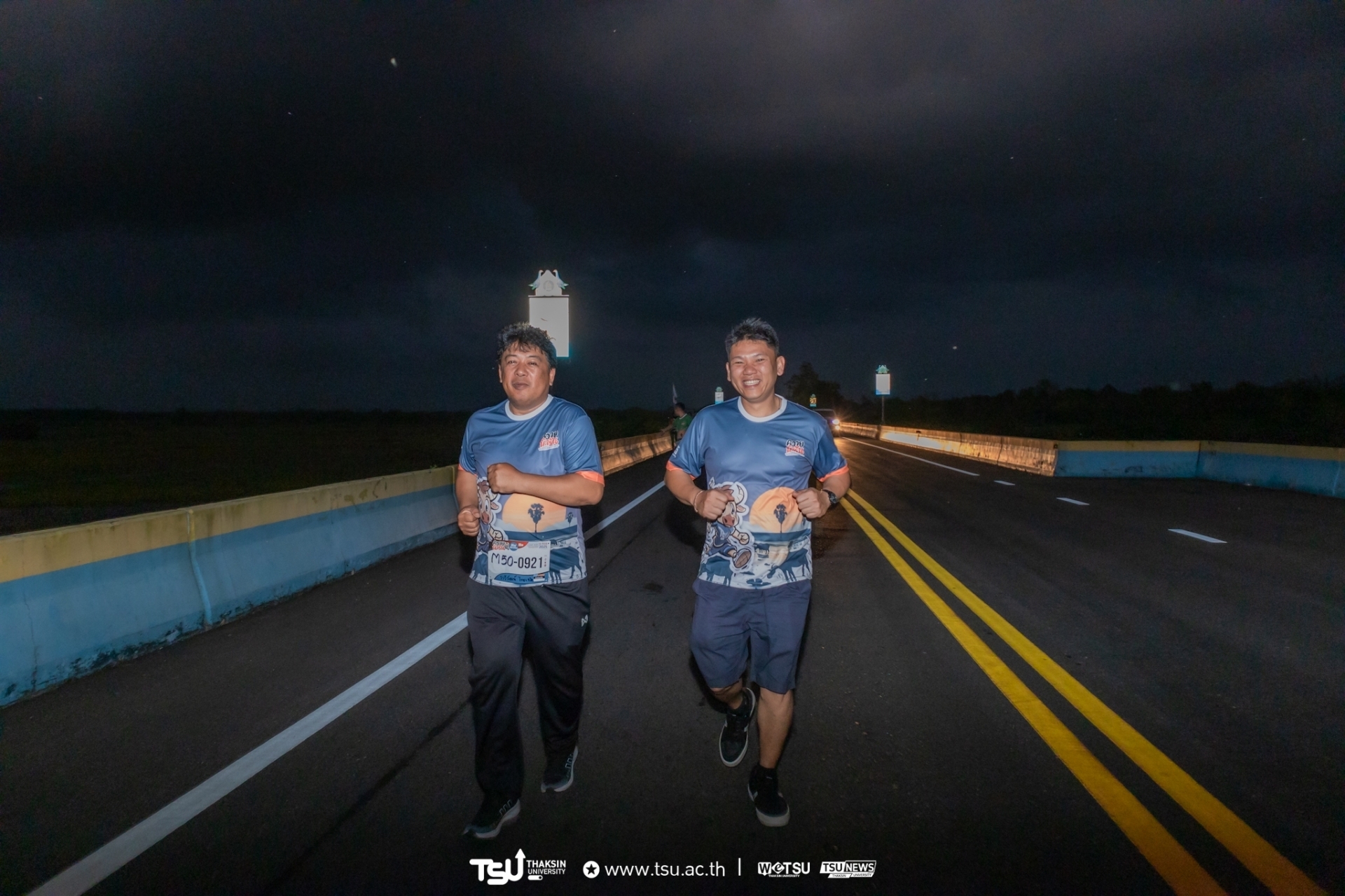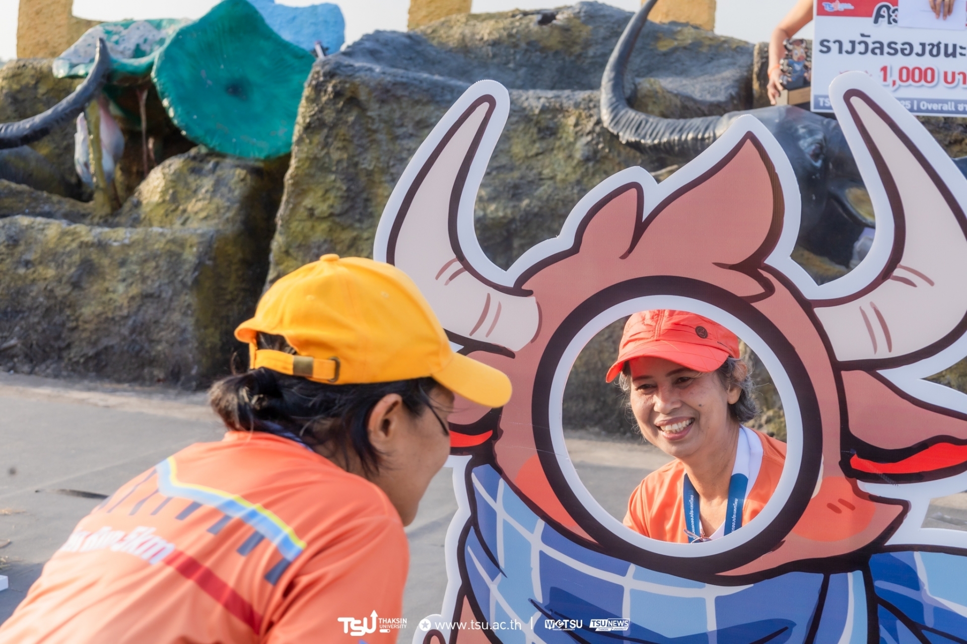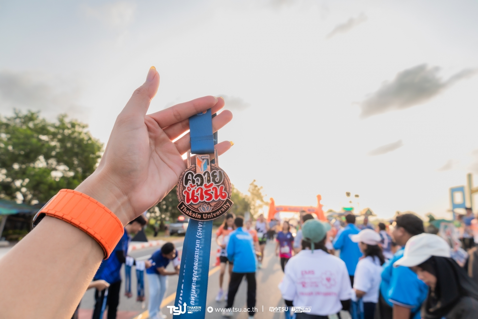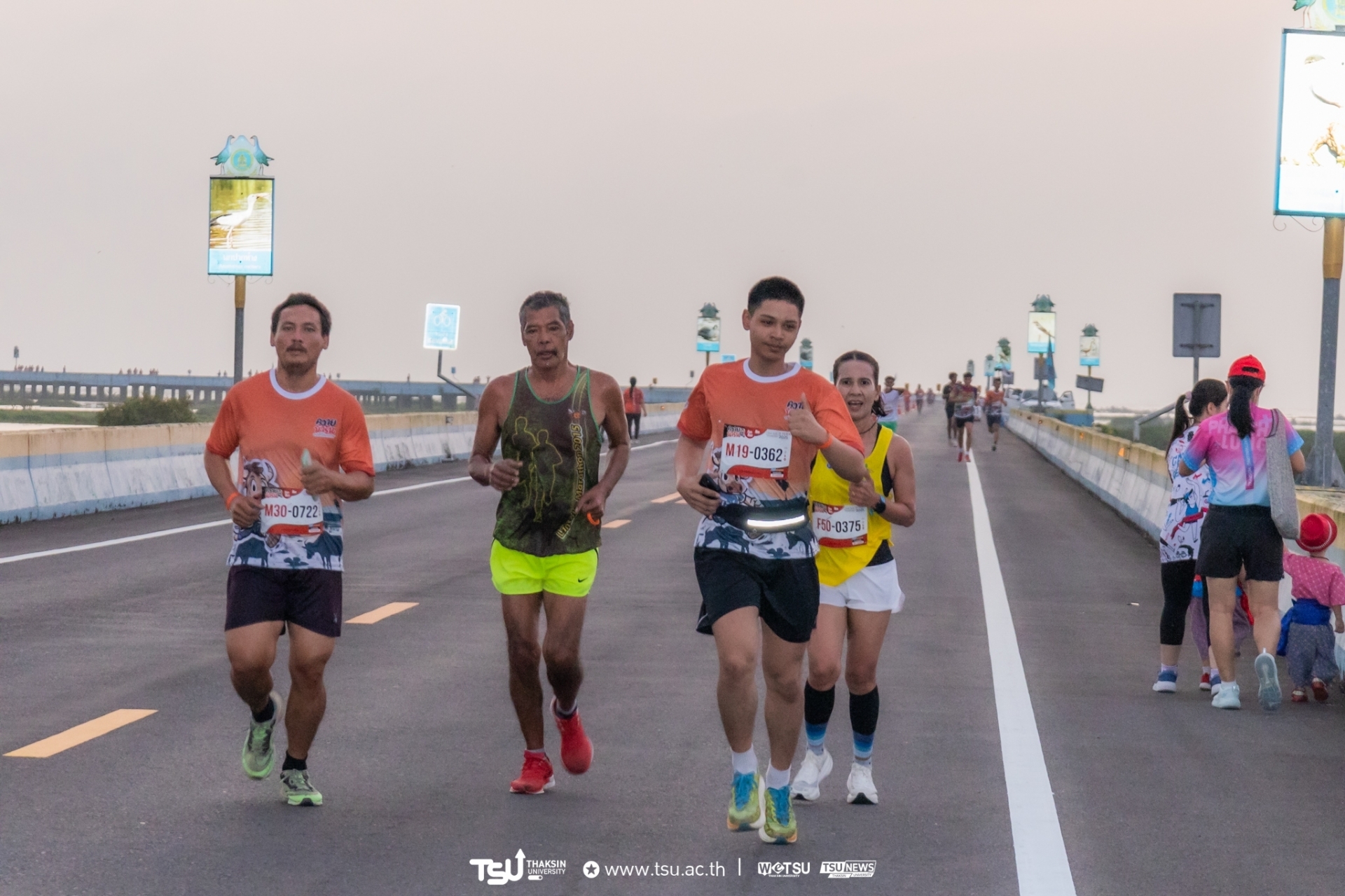 รองศาสตราจารย์ ดร.ณฐพงศ์ จิตรนิรัตน์ อธิการบดีมหาวิทยาลัยทักษิณ กล่าวว่า งานวิ่งครั้งนี้ เป็นการจัดงานบนสะพานเฉลิมพระเกียรติ 80 พรรษา ที่เชื่อมต่อจังหวัดพัทลุงและจังหวัดสงขลา ที่นอกจากจะเป็นสะพานที่ยาวที่สุดในประเทศไทยแล้ว บริเวณโดยรอบสะพานยังมีทัศนียภาพที่สวยงาม และมีความสำคัญในระดับโลก เนื่องจากพื้นที่บริเวณนี้จะมี “ควายน้ำ” หรือ “ควายปลัก” ที่ได้รับการประกาศให้เป็นพื้นที่มรดกโลกทางการเกษตร (GIAHS) แห่งแรกของประเทศไทย วันนี้จึงถือเป็นโอกาสดีของนักวิ่งทุกท่านที่ได้มาวิ่ง ณ จุด Landmark ที่สำคัญของจังหวัดพัทลุง บนสะพานเฉลิมพระเกียรติที่ทอดยาวข้ามทะเลน้อย พร้อมชมวิถีชีวิตของควายน้ำท่ามกลางแสงแรกของทะเลสาบสงขลา ท่ามกลางวิวแบบ 360 องศา สาเหตุที่มหาวิทยาลัยมาจัดงาน ณ สะพานเฉลิมพระเกียรติ 80 พรรษา เนื่องจากต้องการนำรายได้ส่วนหนึ่งมาสนับสนุนการดูแลควายน้ำ เพราะในช่วงหน้าฝนปริมาณน้ำทะเลน้อยจะสูงทำให้ควายไม่สามารถหาหญ้าบริโภคได้อย่างเพียงพอ มหาวิทยาลัยทักษิณในฐานะหน่วยงานในพื้นที่จึงอยากสนับสนุนงบประมาณในการจัดซื้อฟางเพื่อดูแลเรื่องอาหารในช่วงฤดูฝน จึงได้จัดกิจกรรมงานวิ่ง “ควายน้ำ รัน” ขึ้น ความสำเร็จทั้งหมดเกิดขึ้นได้เพราะความร่วมมือร่วมใจของภาคีเครือข่ายทั้งภายในมหาวิทยาลัย และหน่วยงานในพื้นที่ ที่ให้ความอนุเคราะห์และสนับสนุนทรัพยากรของหน่วยงานอย่างเต็มศักยภาพ จนเกิดเป็นภาพงานวิ่งที่น่าประทับใจในวันนี้