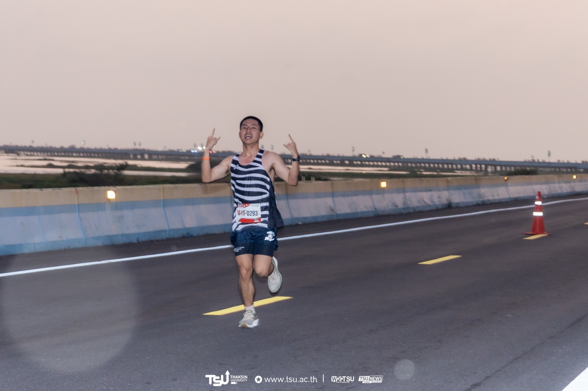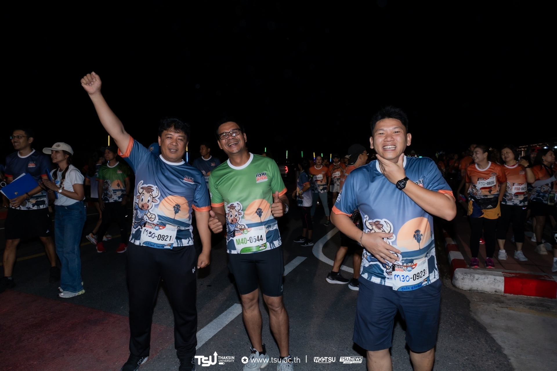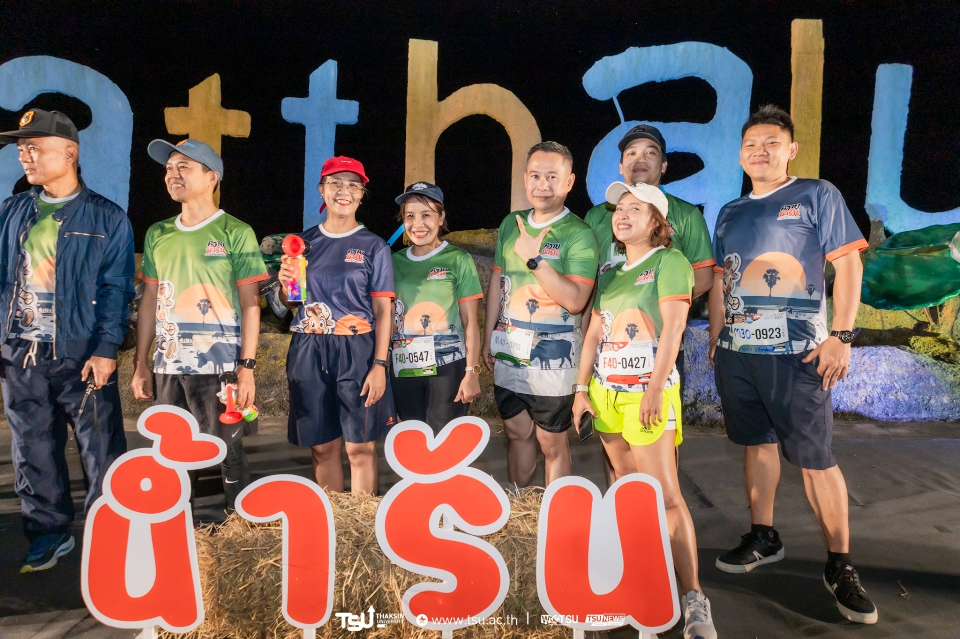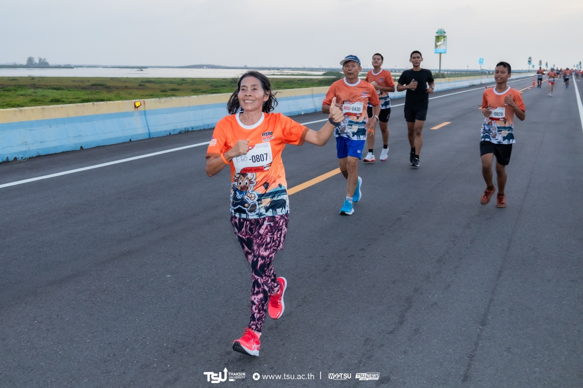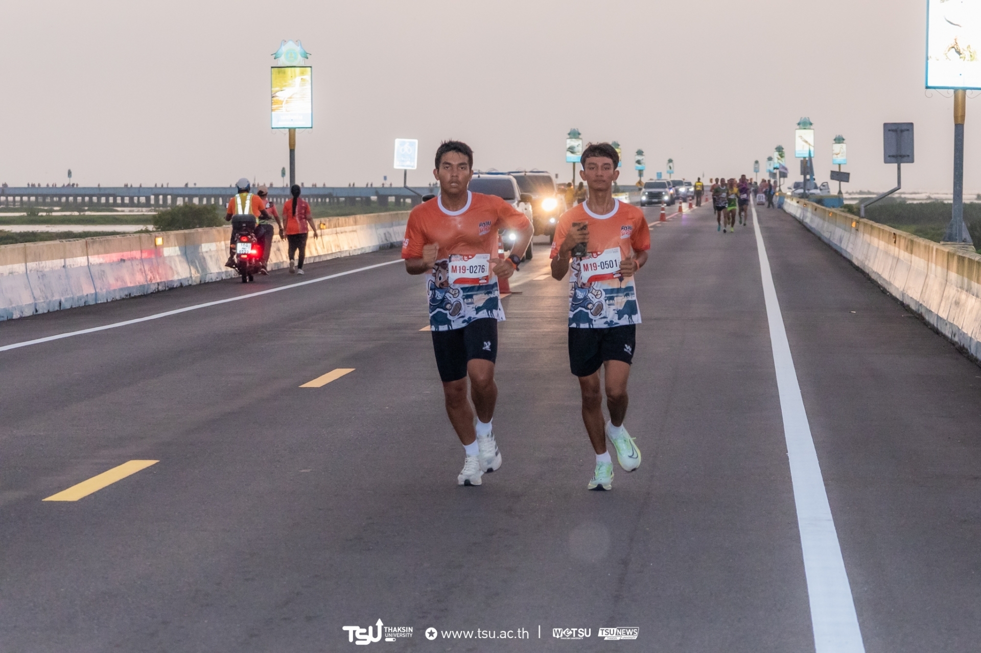รองศาสตราจารย์ ดร.ณฐพงศ์ จิตรนิรัตน์ อธิการบดีมหาวิทยาลัยทักษิณ กล่าวว่า งานวิ่งครั้งนี้ เป็นการจัดงานบนสะพานเฉลิมพระเกียรติ 80 พรรษา ที่เชื่อมต่อจังหวัดพัทลุงและจังหวัดสงขลา ที่นอกจากจะเป็นสะพานที่ยาวที่สุดในประเทศไทยแล้ว บริเวณโดยรอบสะพานยังมีทัศนียภาพที่สวยงาม และมีความสำคัญในระดับโลก เนื่องจากพื้นที่บริเวณนี้จะมี “ควายน้ำ” หรือ “ควายปลัก” ที่ได้รับการประกาศให้เป็นพื้นที่มรดกโลกทางการเกษตร (GIAHS) แห่งแรกของประเทศไทย วันนี้จึงถือเป็นโอกาสดีของนักวิ่งทุกท่านที่ได้มาวิ่ง ณ จุด Landmark ที่สำคัญของจังหวัดพัทลุง บนสะพานเฉลิมพระเกียรติที่ทอดยาวข้ามทะเลน้อย พร้อมชมวิถีชีวิตของควายน้ำท่ามกลางแสงแรกของทะเลสาบสงขลา ท่ามกลางวิวแบบ 360 องศา สาเหตุที่มหาวิทยาลัยมาจัดงาน ณ สะพานเฉลิมพระเกียรติ 80 พรรษา เนื่องจากต้องการนำรายได้ส่วนหนึ่งมาสนับสนุนการดูแลควายน้ำ เพราะในช่วงหน้าฝนปริมาณน้ำทะเลน้อยจะสูงทำให้ควายไม่สามารถหาหญ้าบริโภคได้อย่างเพียงพอ มหาวิทยาลัยทักษิณในฐานะหน่วยงานในพื้นที่จึงอยากสนับสนุนงบประมาณในการจัดซื้อฟางเพื่อดูแลเรื่องอาหารในช่วงฤดูฝน จึงได้จัดกิจกรรมงานวิ่ง “ควายน้ำ รัน” ขึ้น ความสำเร็จทั้งหมดเกิดขึ้นได้เพราะความร่วมมือร่วมใจของภาคีเครือข่ายทั้งภายในมหาวิทยาลัย และหน่วยงานในพื้นที่ ที่ให้ความอนุเคราะห์และสนับสนุนทรัพยากรของหน่วยงานอย่างเต็มศักยภาพ จนเกิดเป็นภาพงานวิ่งที่น่าประทับใจในวันนี้