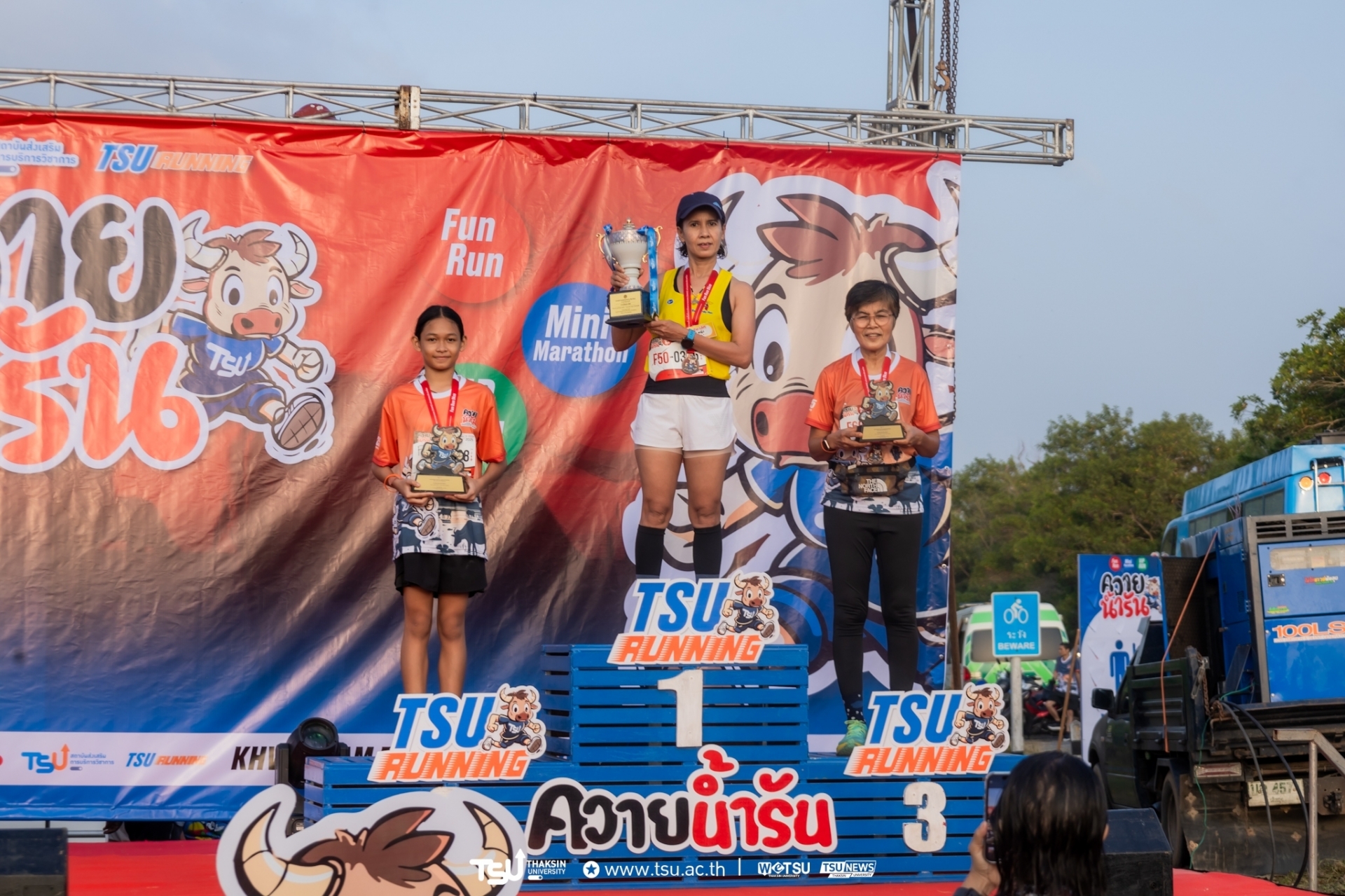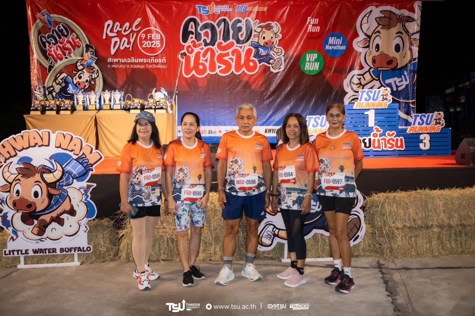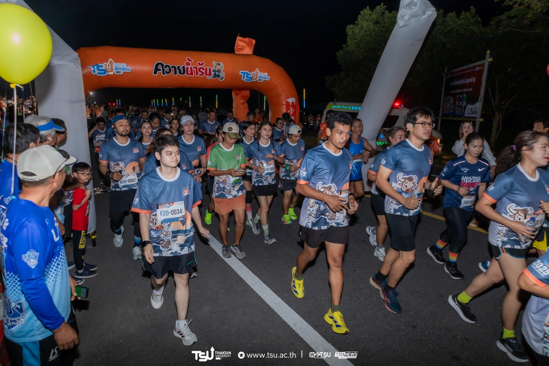 อาจารย์ ดร.พลกฤษณ์ คล้ายวิตภัทร ผู้ช่วยอธิการบดีฝ่ายบริการวิชาการและกิจการพิเศษ มหาวิทยาลัยทักษิณ ในนามของประธานการจัดการแข่งขันงานวิ่ง "ควายน้ำ รัน" ครั้งที่ 1 กล่าวว่า วัตถุประสงค์เพื่อนำรายได้จากการจัดงานมาใช้เพื่อการจัดกิจกรรมการอนุรักษ์ควายน้ำหรือควายปลักในพื้นที่ทะเลน้อยร่วมกับกับจังหวัดพัทลุง และอีกส่วนหนึ่งจะนำมาจัดสรรเป็นทุนทุนการศึกษาให้กับนิสิตมหาวิทยาลัยทักษิณสำหรับ กิจกรรมในวันนี้จะแบ่งการแข่งขันเป็น 2 ประเภท ได้แก่ ประเภท Mini Marathon ระยะทางวิ่ง 10.5 กิโลเมตร และ Fun Run ระยะทาง 5.0 กิโลเมตร และได้แบ่งอายุของผู้เข้าร่วมการแข่งขันในแต่ละประเภท เป็น 6 รุ่น ได้แก่ 1) รุ่นอายุน้อยกว่า 19 ปี 2)รุ่นอายุ 20-29 ปี 3) รุ่นอายุ 30-39 ปี 4) รุ่นอายุ 40-49 ปี 5) รุ่นอายุ 50-59 ปี 6) รุ่นอายุ 60 ปี ขึ้นไป ซึ่งผู้ที่ชนะรวมทุกรุ่นอายุ หรือ Overall จะได้รับถ้วยรางวัล จากท่านนายกรัฐมนตรี นางสาวแพทองธาร ชินวัตร พร้อมเงินรางวัล และผู้ที่ชนะการแข่งขันในแต่ละรุ่นอายุจะได้รับถ้วยรางวัลจากอธิการบดีมหาวิทยาลัยทักษิณ สำหรับการแข่งขันในครั้งนี้ สำหรับการแข่งขันในครั้งนี้มีผู้ให้ความสนใจเข้าร่วมการแข่งขันกว่า 1,011 คน ซึ่งทีมผู้บริหารมหาวิทยาลัยทักษิณ ร่วมมอบเกียรติบัตร และถ้วยรางวัลแก่ผู้ชนะการแข่งขันแต่ละประเภท
