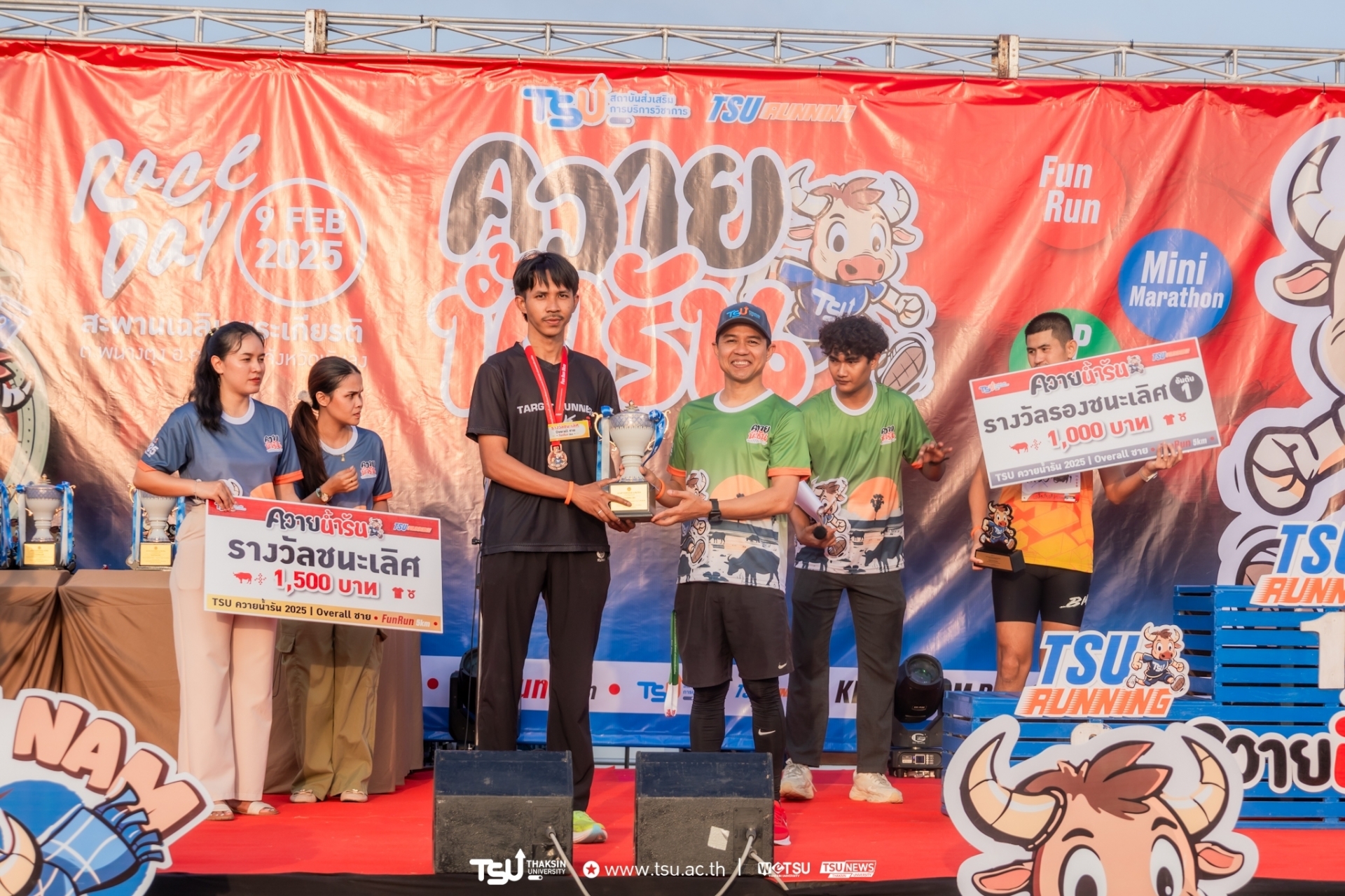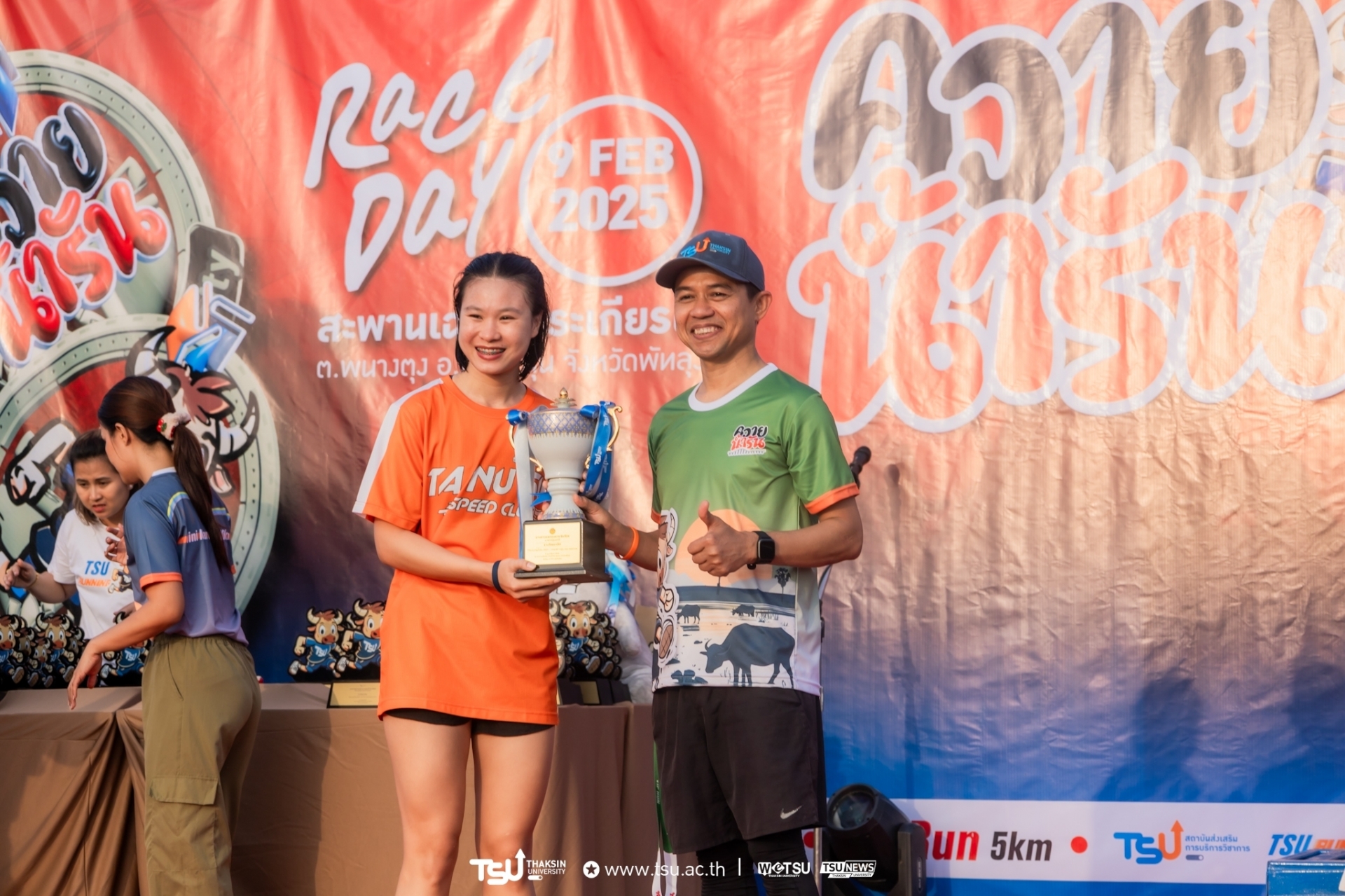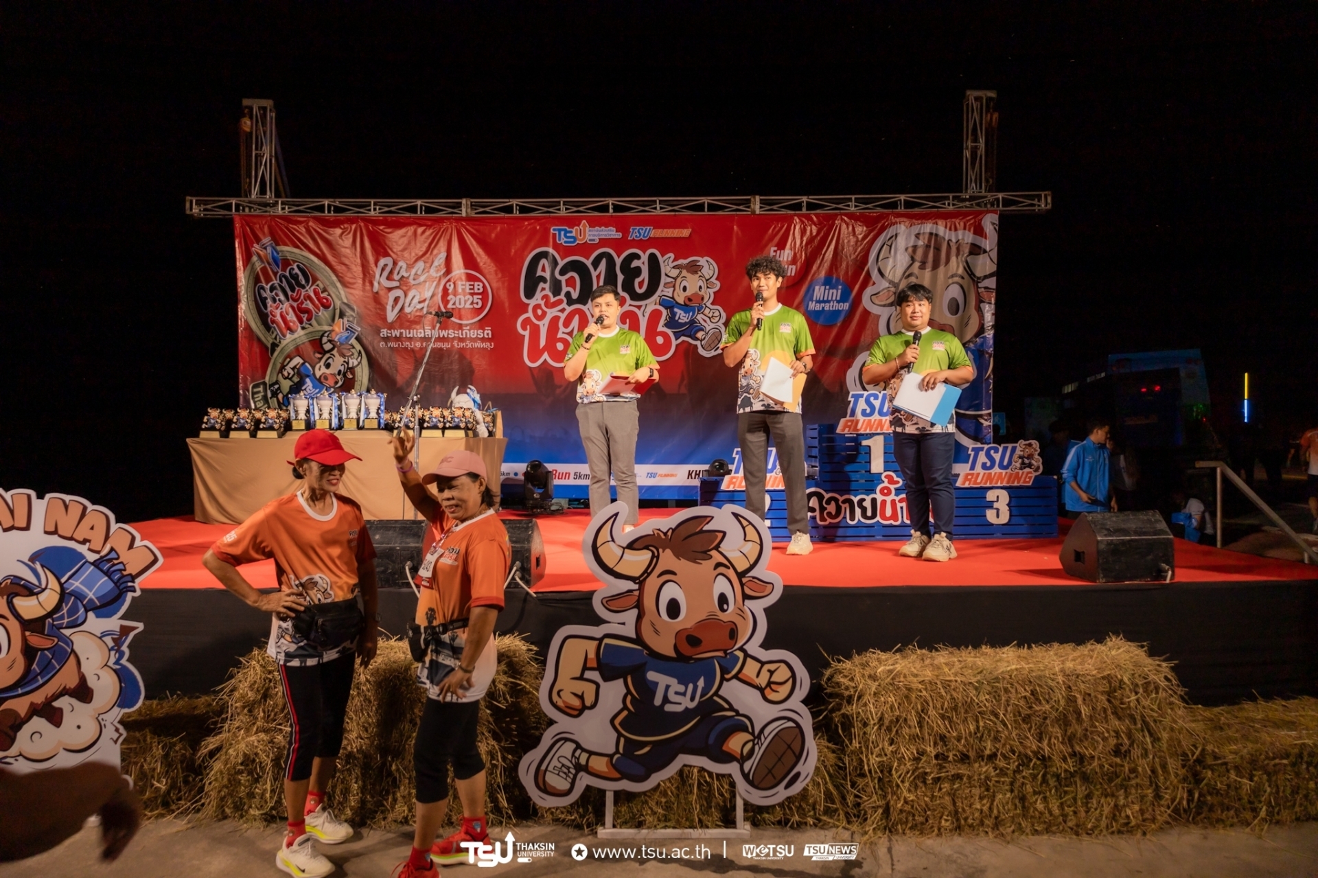 อาจารย์ ดร.พลกฤษณ์ คล้ายวิตภัทร ผู้ช่วยอธิการบดีฝ่ายบริการวิชาการและกิจการพิเศษ มหาวิทยาลัยทักษิณ ในนามของประธานการจัดการแข่งขันงานวิ่ง "ควายน้ำ รัน" ครั้งที่ 1 กล่าวว่า วัตถุประสงค์เพื่อนำรายได้จากการจัดงานมาใช้เพื่อการจัดกิจกรรมการอนุรักษ์ควายน้ำหรือควายปลักในพื้นที่ทะเลน้อยร่วมกับกับจังหวัดพัทลุง และอีกส่วนหนึ่งจะนำมาจัดสรรเป็นทุนทุนการศึกษาให้กับนิสิตมหาวิทยาลัยทักษิณสำหรับ กิจกรรมในวันนี้จะแบ่งการแข่งขันเป็น 2 ประเภท ได้แก่ ประเภท Mini Marathon ระยะทางวิ่ง 10.5 กิโลเมตร และ Fun Run ระยะทาง 5.0 กิโลเมตร และได้แบ่งอายุของผู้เข้าร่วมการแข่งขันในแต่ละประเภท เป็น 6 รุ่น ได้แก่ 1) รุ่นอายุน้อยกว่า 19 ปี 2)รุ่นอายุ 20-29 ปี 3) รุ่นอายุ 30-39 ปี 4) รุ่นอายุ 40-49 ปี 5) รุ่นอายุ 50-59 ปี 6) รุ่นอายุ 60 ปี ขึ้นไป ซึ่งผู้ที่ชนะรวมทุกรุ่นอายุ หรือ Overall จะได้รับถ้วยรางวัล จากท่านนายกรัฐมนตรี นางสาวแพทองธาร ชินวัตร พร้อมเงินรางวัล และผู้ที่ชนะการแข่งขันในแต่ละรุ่นอายุจะได้รับถ้วยรางวัลจากอธิการบดีมหาวิทยาลัยทักษิณ สำหรับการแข่งขันในครั้งนี้ สำหรับการแข่งขันในครั้งนี้มีผู้ให้ความสนใจเข้าร่วมการแข่งขันกว่า 1,011 คน ซึ่งทีมผู้บริหารมหาวิทยาลัยทักษิณ ร่วมมอบเกียรติบัตร และถ้วยรางวัลแก่ผู้ชนะการแข่งขันแต่ละประเภท
