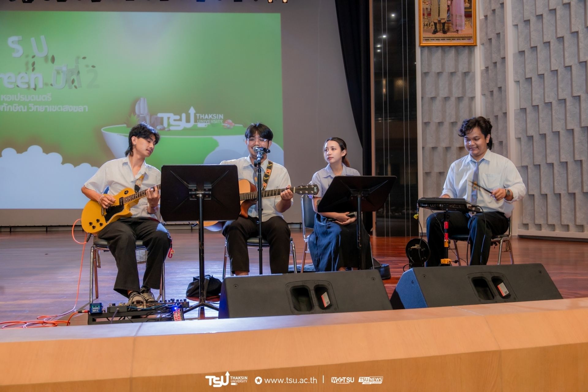 สำนักงานวิทยาเขตสงขลา ร่วมกับหน่วยงานในมหาวิทยาลัยทักษิณ วิทยาเขตสงขลา จัดโครงการ TSU GO GREEN ครั้งที่ 2 เมื่อวันอังคารที่ 11 กุมภาพันธ์ 2568 ณ หอเปรมดนตรี มหาวิทยาลัยทักษิณ วิทยาเขตสงขลา โดยมีวัตถุประสงค์เพื่อส่งเสริมการอนุรักษ์สิ่งแวดล้อมและทรัพยากรธรรมชาติ พร้อมทั้งขับเคลื่อนมหาวิทยาลัยสู่การเป็นมหาวิทยาลัยสีเขียวระดับนานาชาติ ซึ่งเป็นหนึ่งในนโยบายก้าวที่กล้า 10 คานงัดใหม่ มหาวิทยาลัยทักษิณ และหมุดหมายนโยบายมหาวิทยาลัยสีเขียวตามแผนกลยุทธ์มหาวิทยาลัยทักษิณ ระยะ 5 ปี (พ.ศ. 2566-2570) โดยมีผู้ช่วยศาสตราจารย์ ดร.ธัญญา พันธ์ฤทธิ์ดำ รองอธิการบดีวิทยาเขตพัทลุง เป็นประธานเปิดงาน