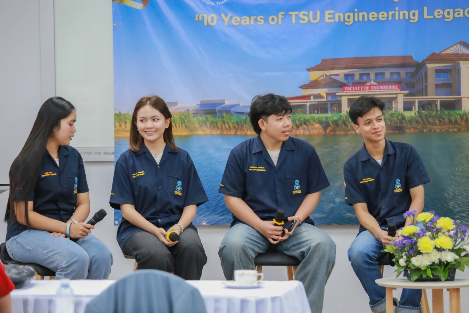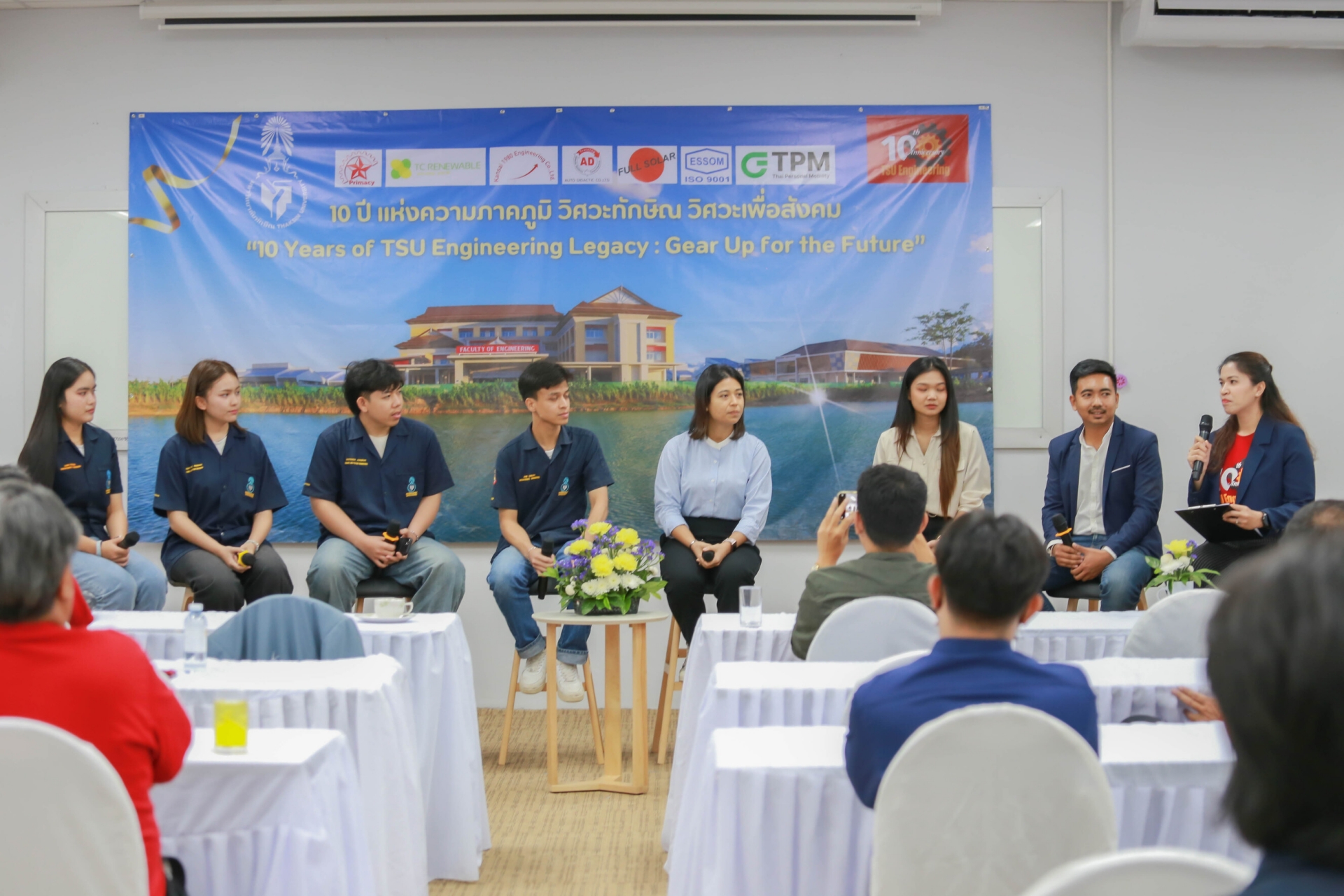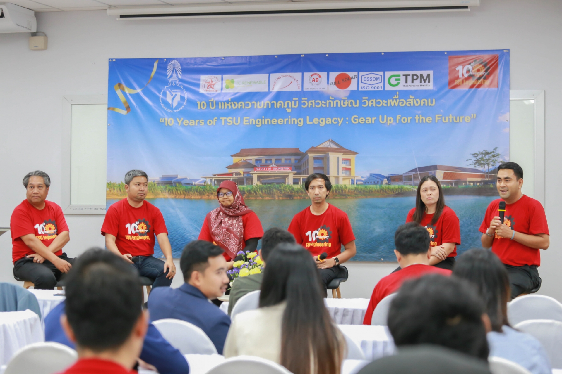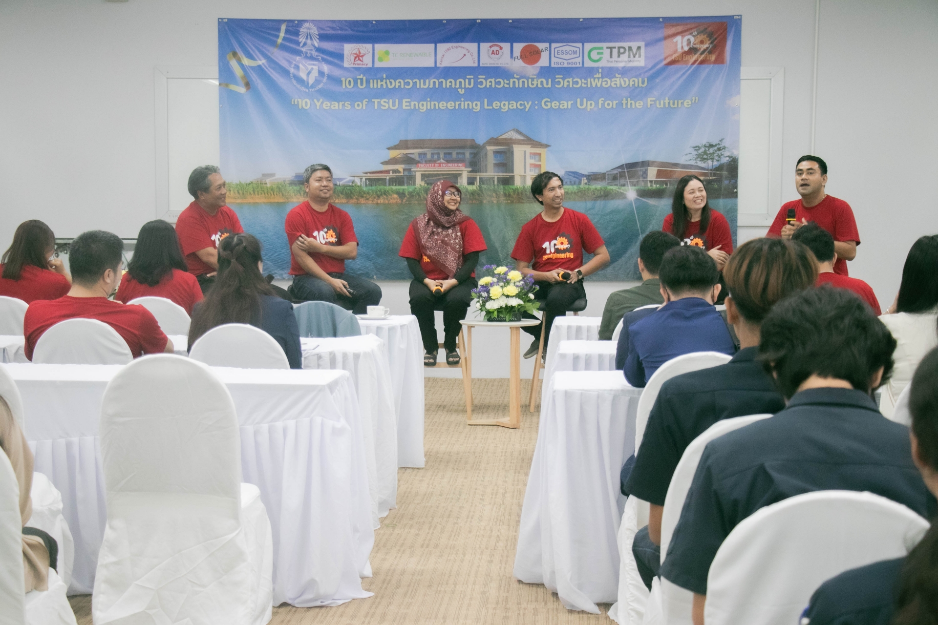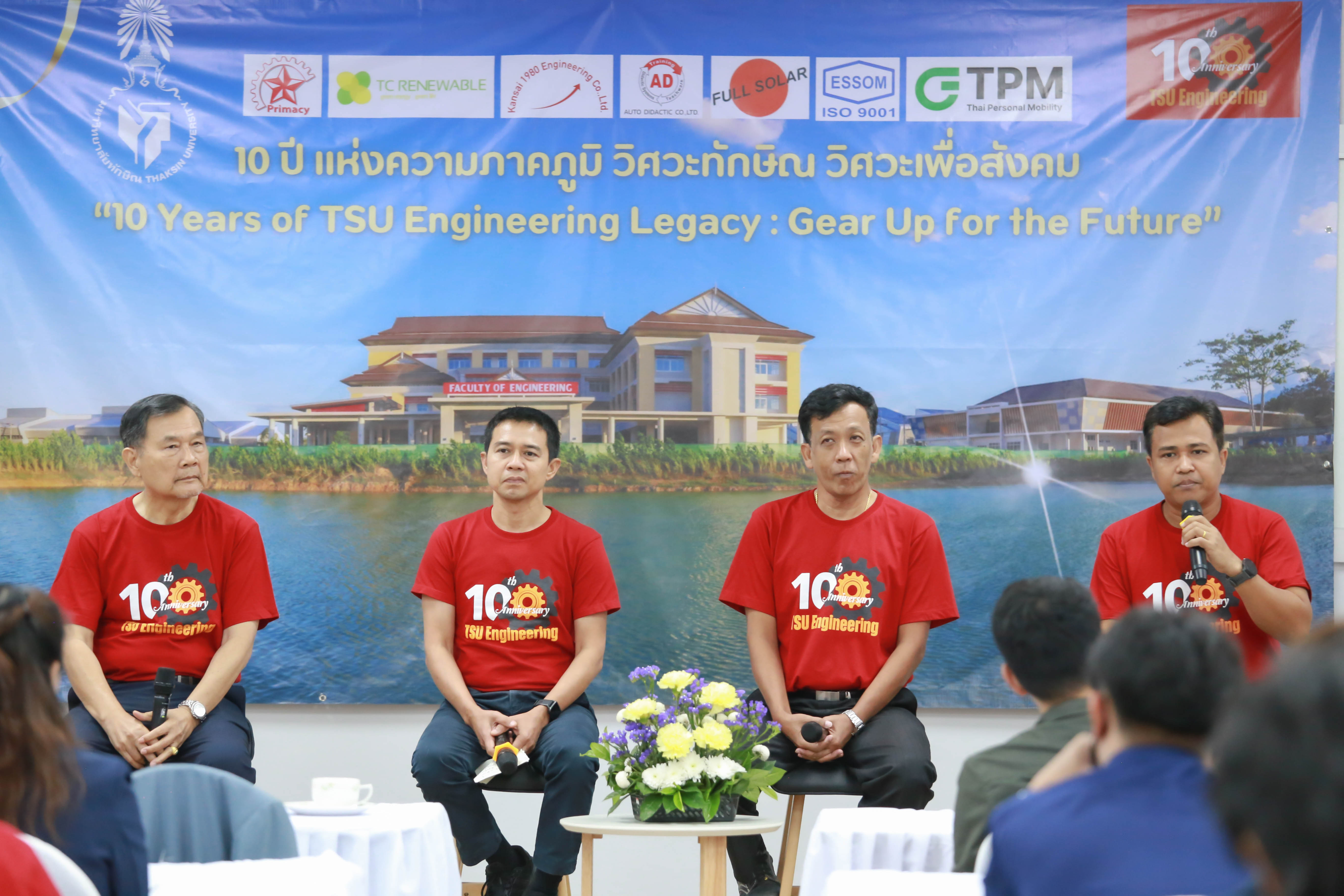 นอกจากนี้ยังมีเวทีเสวนาพิเศษในโอกาสครบรอบ 10 ปี ของคณะ ในหัวข้อ "มุมมองและความคาดหวังต่อคณะวิศวกรรมศาสตร์" และร่วมรับฟังวิสัยทัศน์ แนวคิดจากผู้บริหารระดับสูง โดย รศ.ดร.วิชัย ชำนิ อดีตอธิการบดีมหาวิทยาลัยทักษิณ ในฐานะผู้ก่อตั้งคณะ รศ.ดร.ณฐพงศ์ จิตรนิรัตน์ อธิการบดีมหาวิทยาลัยทักษิณ และ ดร.นันทพันธ์ นภัทรานันทน์ อดีตคณบดีคนแรกคณะวิศวกรรมศาสตร์ ในฐานะผู้พัฒนาคณะในสมัยแรกเริ่ม ต่อด้วยเวทีการร่วมค้นหาอนาคตการศึกษาวิศวกรรมศาสตร์ไปด้วยกัน กับเสวนาในหัวข้อ "ก้าวที่กล้าและท้าทายของหลักสูตร คณะวิศวกรรมศาสตร์" จากประธานหลักสูตรทุกสาขา ที่จะมาเผยวิสัยทัศน์และเป้าหมายการผลิตวิศวกรคุณภาพ พร้อมเล่าถึงความท้าทายและโอกาสในการพัฒนาหลักสูตรเพื่อตอบโจทย์อุตสาหกรรม 4.0 โดย วิศวกรรมพลังงาน - รศ.ดร.จอมภพ แววศักดิ์, วิศวกรรมเครื่องกล - ผศ.ดร.นเรศ ฉิมเรศ, วิศวกรรมยาง พอลิเมอร์ และปิโตรเคมี - ผศ.ดร.พนิดา สุมานะตระกูล, วิศวกรรมไฟฟ้า - อ.จีรวัฒน์ โสภาจารย์, วิศวกรรมโลจิสติกส์ - ผศ.จารุวรรณ พรหมเงิน และอีกเวทีสำคัญที่ได้สร้างแรงบันใจเสวนา เชื่อมสายสัมพันธ์ระหว่างศิษย์เก่าและศิษย์ปัจจุบัน Thaksin Engineering Bond เรียน ร่าง สร้าง แชร์ สายสัมพันธ์วิศวะทักษิณ