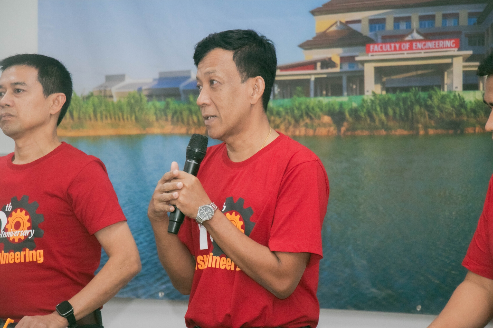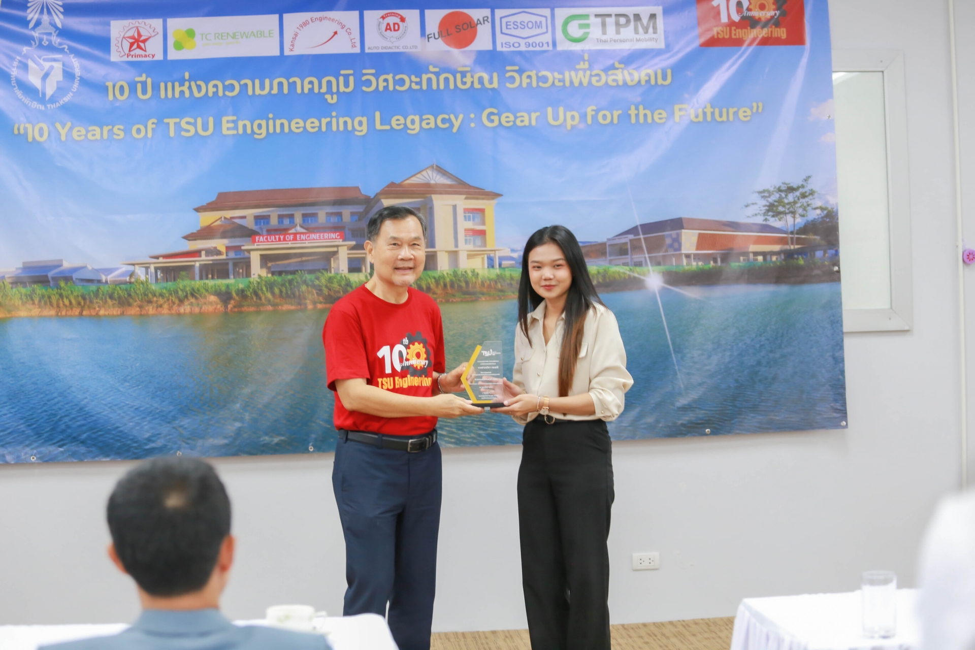 ในช่วงเช้าทางคณะได้จัดพิธีสงฆ์และพิธีในศาสนาอิสลาม เพื่อความเป็นสิริมงคล และสะท้อนถึงความเป็นพหุวัฒนธรรม แสดงถึงการให้ความสำคัญกับความหลากหลายทางศาสนาและวัฒนธรรม ในวาระครบรอบ 10 ปี การก่อตั้งคณะวิศวะ โดยมีคณาจารย์ บุคลากร และนิสิตเข้าร่วมกิจกรรม รวมถึงในช่วงบ่ายใน รศ.ดร.จตุพร แก้วอ่อน คณบดีคณะวิศวกรรมศาสตร์ ได้บอกเล่าเกี่ยวกับการพัฒนาของคณะตั้งแต่จุดเริ่มต้นจนถึงปัจจุบัน การพัฒนาอย่างก้าวกระโดดในระยะ 10 ปีที่ผ่านมา ไม่ว่าจะเป็นในด้านของการพัฒนาหลักสูตร งานวิจัย งานบริการวิชาการ และการบริหารจัดการคณะ “คณะวิศวกรรมศาสตร์มีการปรับปรุงหลักสูตรอย่างต่อเนื่อง ในวันนี้เราได้พลิกโฉมหลักสูตรยกคณะ เพื่อให้ตอบโจทย์ความต้องการของกลุ่มเป้าหมายร่วมถึงตลาดแรงงาน อีกทั้งยังสอดคล้องไปในทิศทางเดียวกับนโยบายของมหาลัย พร้อมทั้งปรับปรุงในด้านการใช้ชีวิตในคณะ เพื่อเป็นส่วนหนึ่งในการช่วยผลักดันในการพัฒนาของนิสิต อย่างเช่นการเพิ่มพื้นที่ Co-Working Learning Space การเพิ่มห้องการพัฒนาภาษา Thaksineer Glocalization ห้องพัฒนานิสิตสู่ผู้ประกอบการและนวัตกรรม Thaksineer Start-up และห้องรวมผลงาน Engineering Showcase ด้วยความมุ่งมั่น ด้วยความทุ่มเท ตลอดระยะเวลา 10 ปีที่ผ่านมา วันนี้คณะวิศวกรรมศาสตร์ ม.ทักษิณ พร้อมที่จะก้าวสู่ทศวรรษใหม่ ด้วยความมั่นคงและพร้อมรับทุกความท้าท้าย”