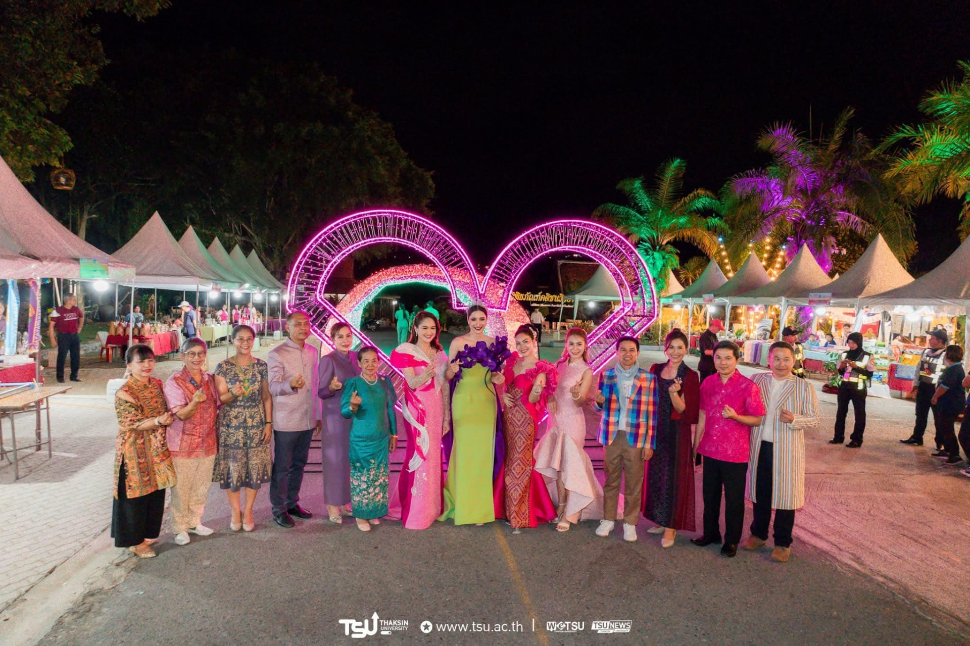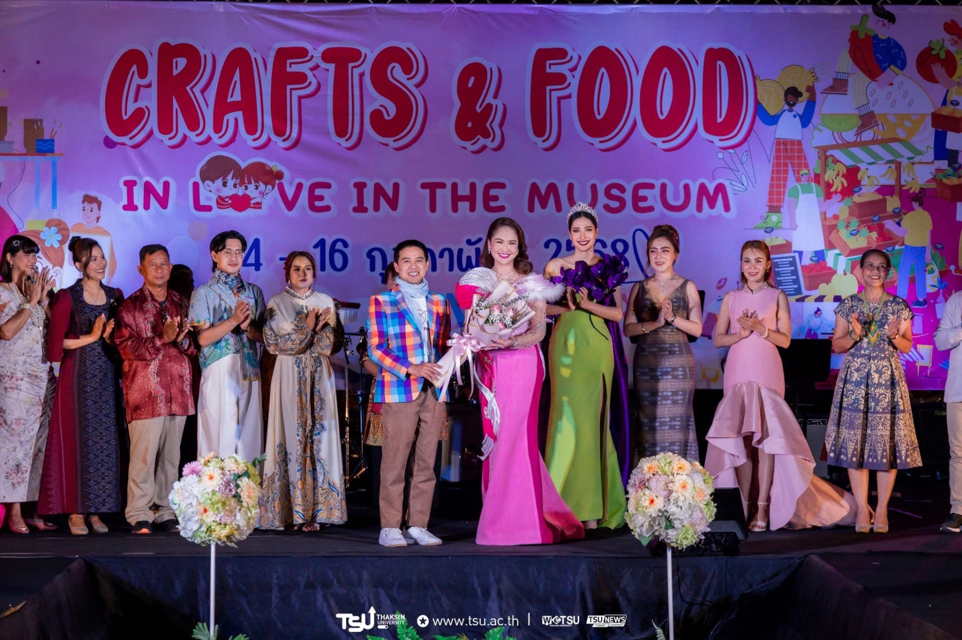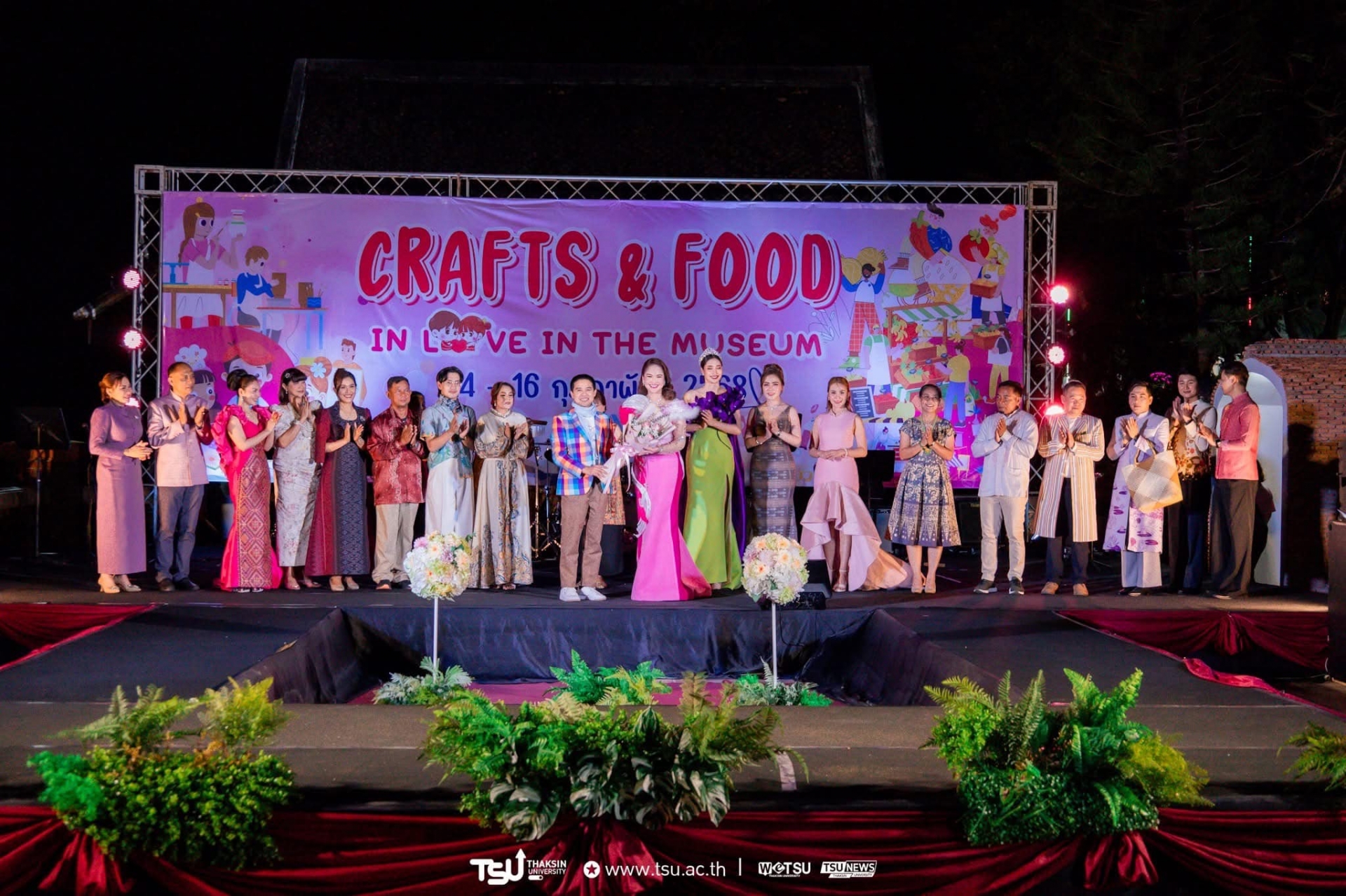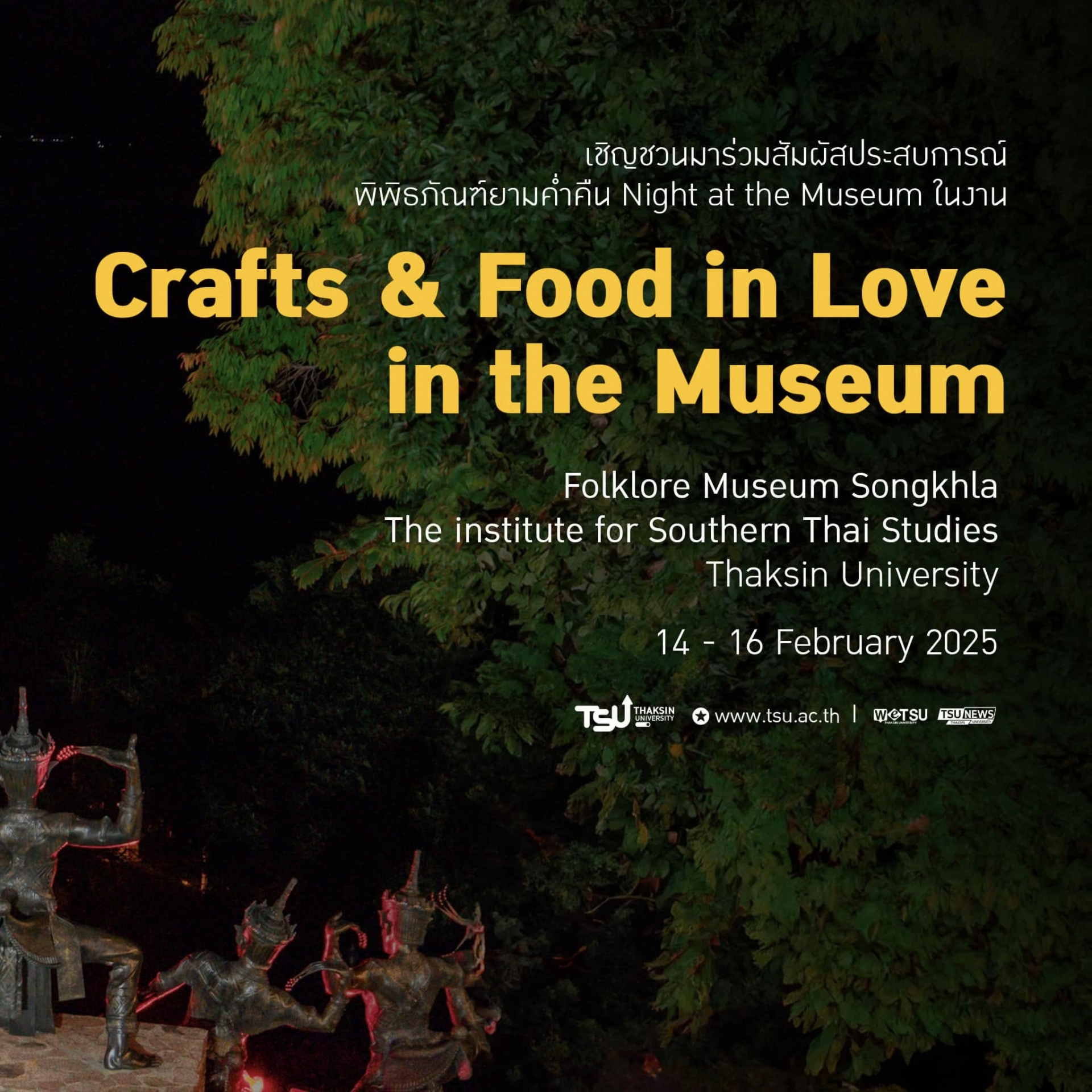 ผู้ช่วยศาสตราจารย์ ดร.ธัญญา พันธ์ฤทธิ์ดำ รองอธิการบดี วิทยาเขตพัทลุง (รักษาการผู้อำนวยการสถาบันทักษิณคดีศึกษา) ให้ข้อมูลว่า การจัดงาน Crafts & Food In Love In The Museum ณ สถาบันทักษิณคดีศึกษา มหาวิทยาลัยทักษิณ จัดขึ้นเป็นปีแรก มีการจัดงาน 3 วัน ระหว่างวันที่ 14 - 16 กุมภาพันธ์ 2568 โดยวันที่ 14 กุมภาพันธ์ 2568 ซึ่งเป็นวันแรกของการจัดงาน ได้มีการเดินแบบผ้าไทยสไตล์อินเลิฟโดยนายแบบและนางแบบกิตติมศักดิ์เป็นประสบการณ์ที่งดงามและน่าตื่นตา ตื่นใจ ซึ่งนำเสนอความงดงามของผ้าไทยผ่านการประยุกต์ใช้ในสไตล์ที่ทันสมัยและโรแมนติก การตัดเย็บด้วยลวดลายและสีสันที่ลงตัวทำให้ผ้าไทยไม่เพียงแค่เป็นสัญลักษณ์ของวัฒนธรรมไทย แต่ยังเป็นผลงานที่สามารถบอกเล่าเรื่องราวแห่งความรักและความผูกพัน นายแบบและนางแบบกิตติมศักดิ์ที่สวมใส่ ถ่ายทอดอารมณ์ได้อย่างสนุกสนาน อบอุ่น ด้วยบรรยากาศเป็นกันเอง ช่วยเพิ่มความน่าสนใจให้กับการแสดง นอกจากนี้ผู้เข้าร่วมงานยังได้ดื่มด่ำกับความงามของผ้าไทยที่มีความสวยงามหลากหลายสไตล์อินเลิฟที่สะท้อนผ่านการเดินแบบภายใต้บรรยากาศสดชื่นของท้องฟ้า และหมู่ดาว ของค่ำคืนแห่งความรัก ณ สถาบันทักษิณคดีศึกษา มหาวิทยาลัยทักษิณ