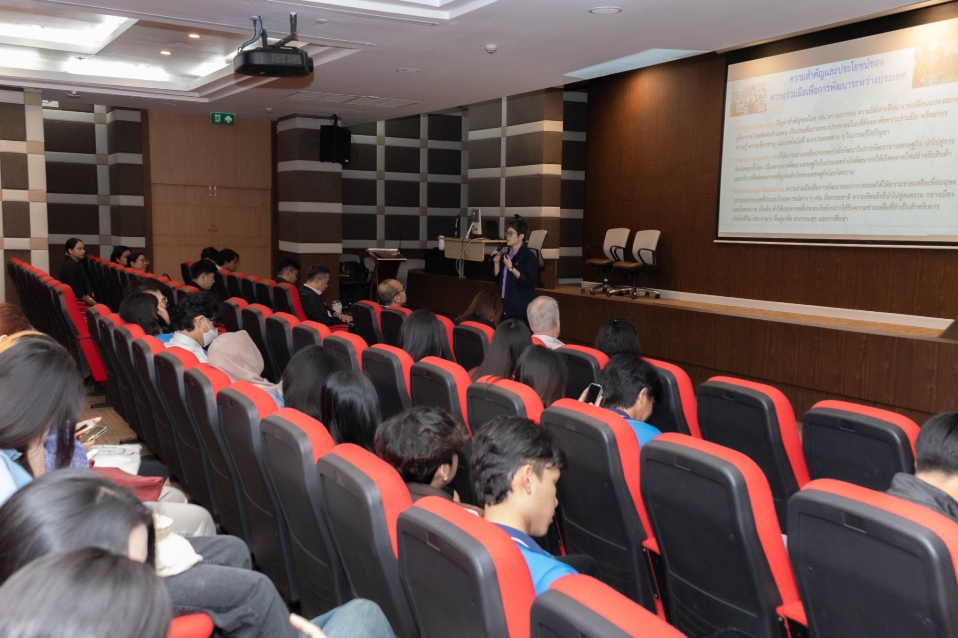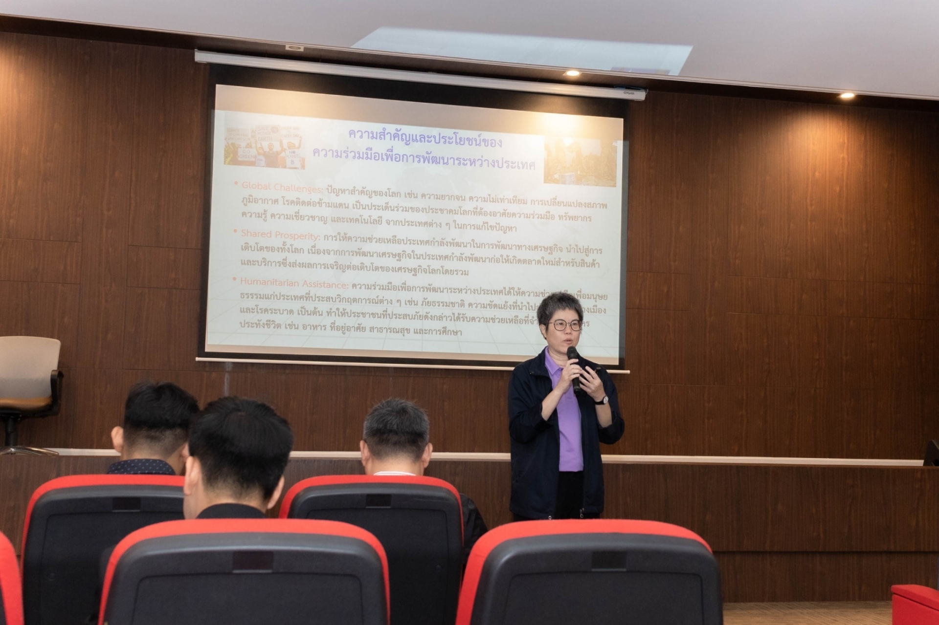 โครงการนี้มุ่งเสริมสร้างความรู้ด้านบทบาทของไทยในการส่งเสริมความร่วมมือระหว่างประเทศผ่านการทูตและการพัฒนา พร้อมเปิดโอกาสทางการทำงานกับองค์กรระหว่างประเทศ โดยเนื้อหาครอบคลุมแนวทางการพัฒนาอย่างยั่งยืน บทบาทของ TICA ในการเผยแพร่ภารกิจความร่วมมือระหว่างประเทศ และแนวทางการเตรียมความพร้อมบุคลากรให้แข่งขันในเวทีโลก โดยมี นางสาวพิณ ศรีดุรงคธรรม เลขานุการกรม ฯ นายกฤษฎา ผกากาญจน์ ผู้อำนวยการกองความร่วมมือด้านทุน และคณะทำงาน กรมความร่วมมือระหว่างประเทศ (TICA) กระทรวงการต่างประเทศ ร่วมบรรยายและให้ข้อมูลเกี่ยวกับการทูตเพื่อการพัฒนาและการดำเนินงานเพื่อส่งเสริมความร่วมมือระหว่างประเทศ