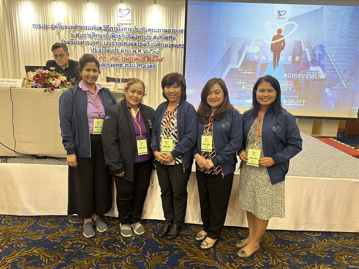 หลักสูตร กศ.บ. สาขาวิชาการศึกษา วิชาเอกการประถมศึกษา คณะศึกษาศาสตร์ มหาวิทยาลัยทักษิณ ร่วมมือ กองทุนเพื่อความเสมอภาคทางการศึกษา (กสศ.) ประชุมร่วมกำหนดหลักเกณฑ์การประกันคุณภาพภายนอกสถานศึกษาขั้นพื้นฐานที่มีวัตถุประสงค์พิเศษ ซึ่งคณะกรรมการบริหารหลักสูตรเชิงบูรณาการ หลักสูตร กศ.บ. สาขาวิชาการศึกษา วิชาเอกการประถมศึกษา แผนสำหรับครู ตชด. (ตามความร่วมมือกับ กสศ.) โดยอาศัย หน่วยวิจัยการเรียนรู้เชิงบูรณาการเพื่อพัฒนาคุณภาพสังคมอย่างยั่งยืน คณะศึกษาศาสตร์ มหาวิทยาลัยทักษิณ เป็นกลไกเชิงบูรณาการเพื่อพัฒนาศักยภาพครูโรงเรียนตำรวจตระเวนชายแดน (ตชด.) เข้าร่วมประชุมชี้แจงหลักเกณฑ์และวิธีการในการประกันคุณภาพภายนอกสถานศึกษาระดับการศึกษาขั้นพื้นฐานที่มีวัตถุประสงค์พิเศษ ประเภทโรงเรียนตำรวจตระเวนชายแดน ประจำปีงบประมาณ พ.ศ. 2568 ระหว่างวันที่ 16 - 18 กุมภาพันธ์ 2568 ณ โรงแรมเดอะทวิน ทาวเวอร์ กรุงเทพ ฯ
