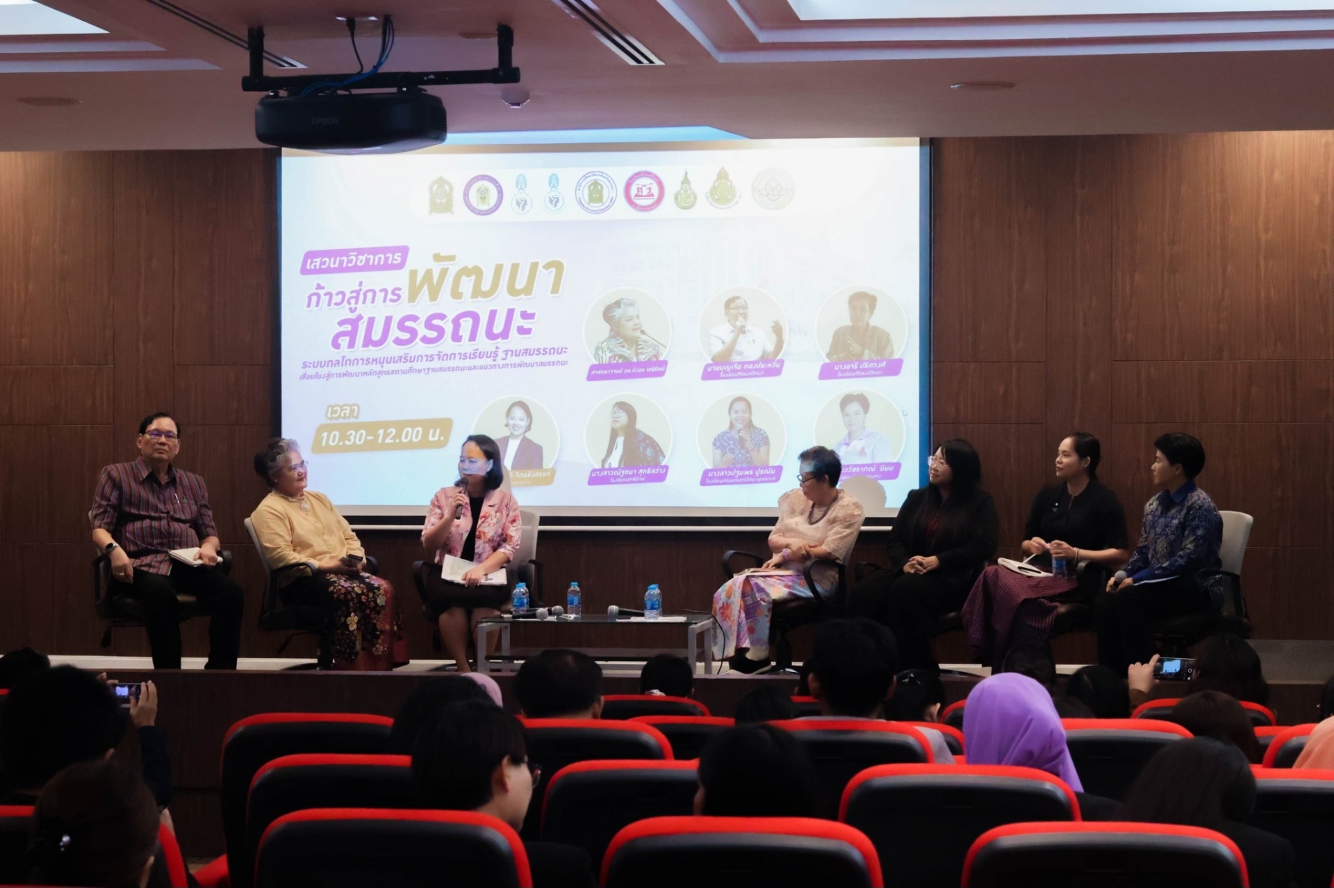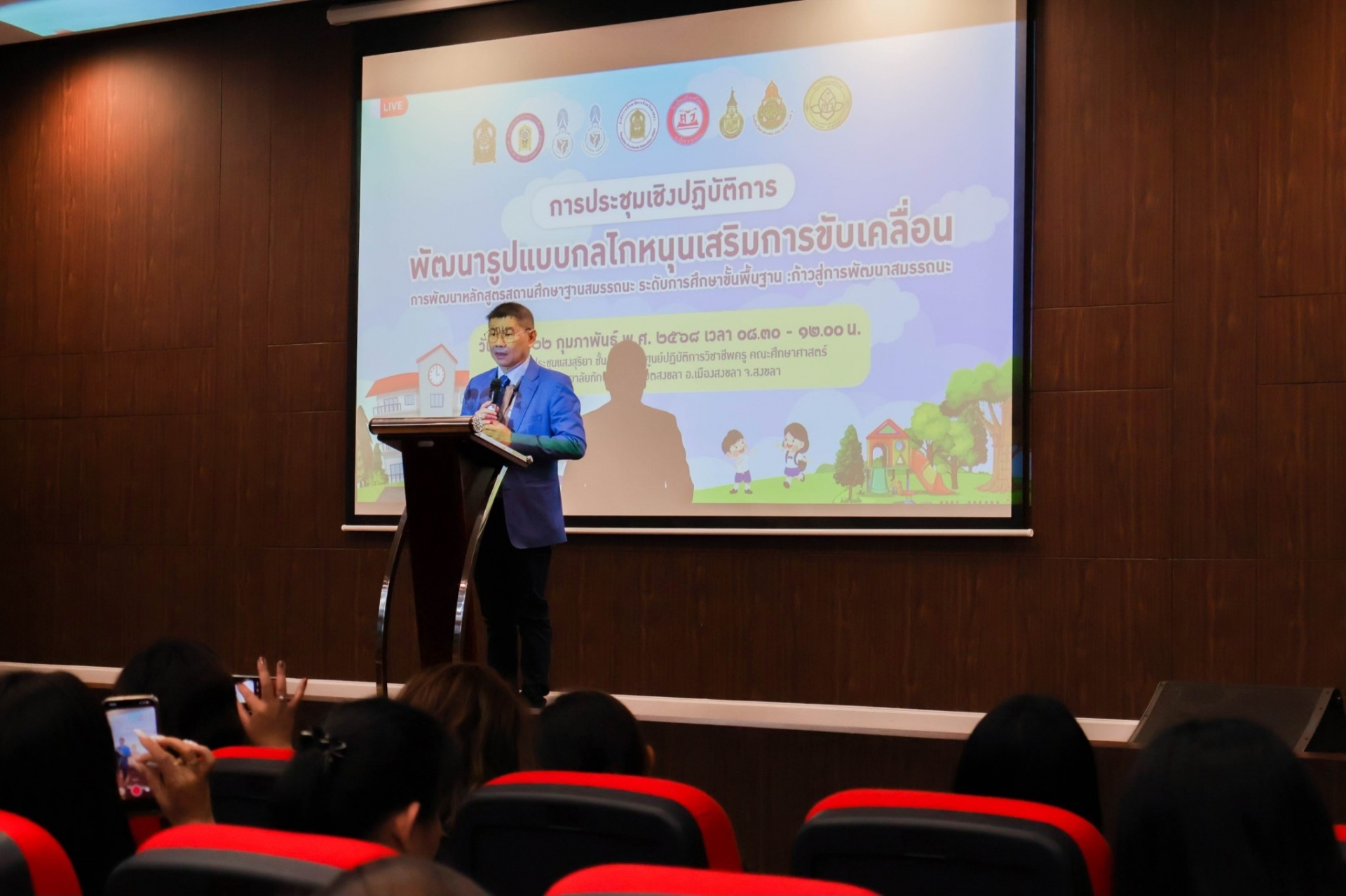 เมื่อวันที่ วันที่ 22 กุมภาพันธ์ 2568 คณะศึกษาศาสตร์ และโรงเรียนสาธิตมหาวิทยาลัยทักษิณ ฝ่ายประถม ร่วมกับ สำนักงานเลขาธิการสภาการศึกษา และโรงเรียนเครือข่ายการเรียนรู้ จัดเวทีแลกเปลี่ยนเรียนรู้ "ก้าวสู่การพัฒนาสมรรถนะผู้เรียน" ซึ่งภายในงานมีผู้เชี่ยวชาญด้านการศึกษา มาแลกเปลี่ยนประสบการณ์และให้ความรู้แก่ผู้เข้าร่วมงาน ประกอบด้วย ปาฐกถาพิเศษเรื่อง หลักการในการพัฒนาสมรรถนะผู้เรียน และเกณฑ์ 16 เกณฑ์ จาก รองศาสตราจารย์ ดร.ทิศนา แขมมณี กิจกรรม Exclusive Talk “ชี้ทิศ คิดร่วมกัน การพัฒนาสมรรถนะเพื่อคุณภาพการศึกษาไทย” จาก รองศาสตราจารย์ ดร.ประวิต เอราวรรณ์ เลขาธิการสภาการศึกษา และการเสวนาเรื่อง ก้าวสู่การพัฒนาสมรรถนะ : ระบบกลไกการหนุนเสริมการจัดการเรียนรู้ฐานสมรรถนะ เชื่อมโยงสู่การพัฒนาหลักสูตรสถานศึกษาฐานสมรรถนะและแนวทางการพัฒนาสมรรถนะ โดย ศาสตราจารย์ ดร.บังอร เสรีรัตน์ และคณะครูโรงเรียนเครือข่ายการเรียนรู้ โดยมีผู้สนใจเข้าร่วมกิจกรรมเป็นจำนวนมาก