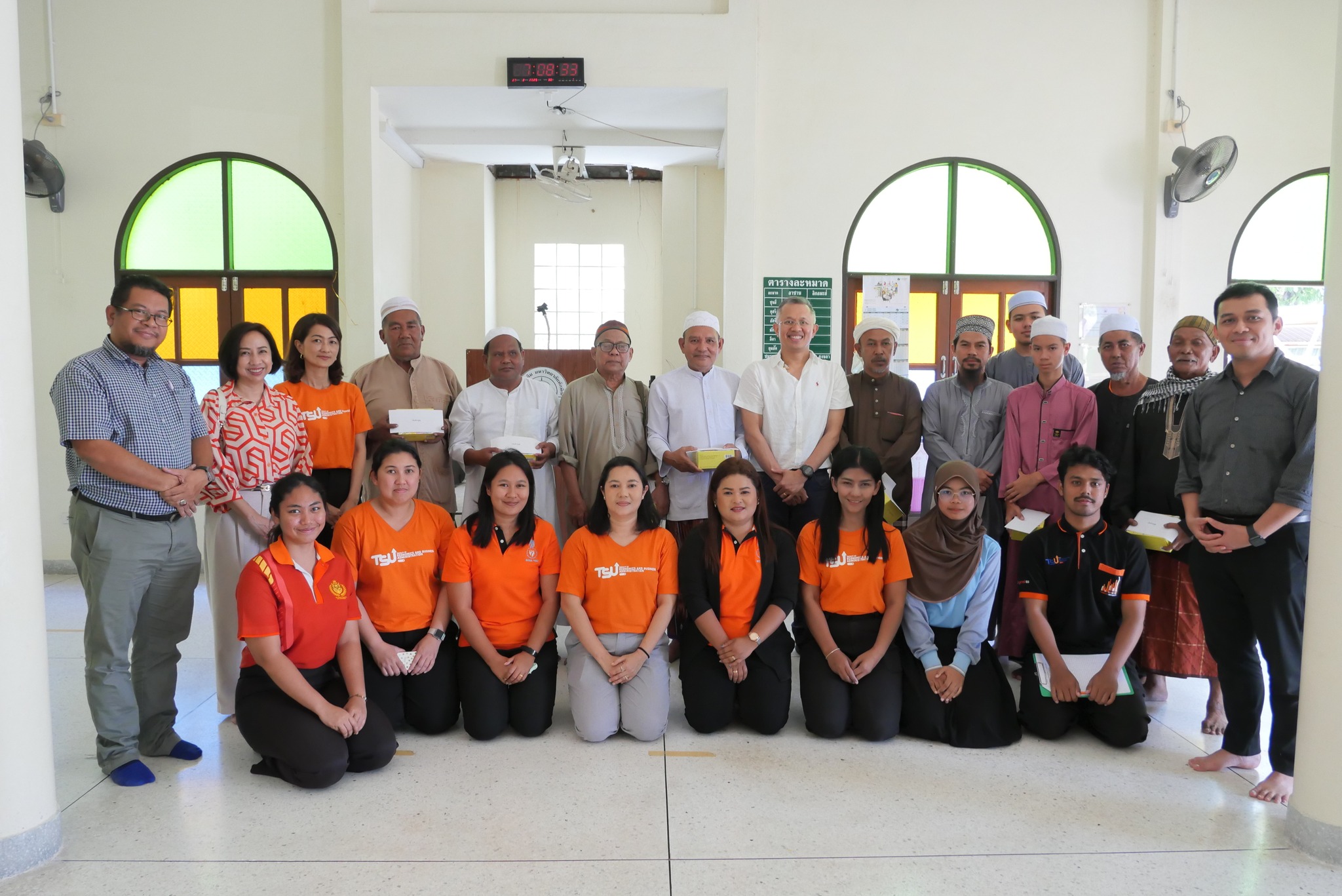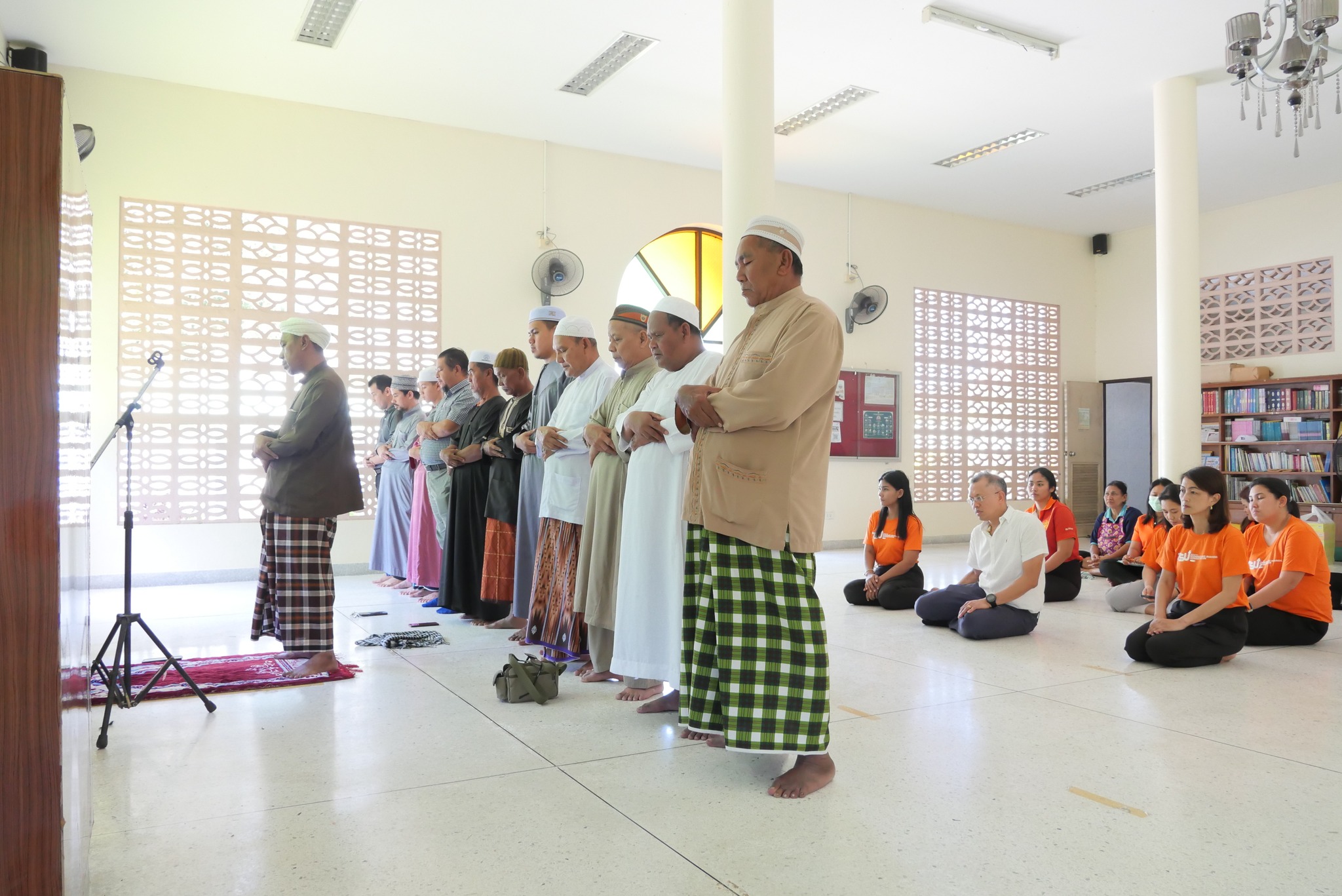 กิจกรรมช่วงเช้า เริ่มต้นด้วยพิธีเจริญพระพุทธมนต์ พร้อมถวายสังฆทานแด่พระสงฆ์ 5 รูป เพื่อความเป็นสิริมงคลแก่ผู้เข้าร่วมงาน บรรยากาศเต็มไปด้วยความศรัทธาและความปรารถนาดีต่อกัน ขณะที่ ช่วงบ่าย ได้จัดพิธีกรรมทางศาสนาอิสลาม ณ อาคารละหมาด โดยมีบุคลากรและนิสิตที่นับถือศาสนาอิสลามเข้าร่วมประกอบศาสนกิจอย่างพร้อมเพรียง แสดงถึงความเคารพและส่งเสริมความเข้าใจในความหลากหลายทางศาสนาและวัฒนธรรม สืบสานประเพณีอันดีงาม สร้างความสามัคคี และความสัมพันธ์ระหว่างบุคลากร นิสิต และคณะผู้บริหาร ด้วยบรรกาศของความสุขและความอิ่มเอมใจ