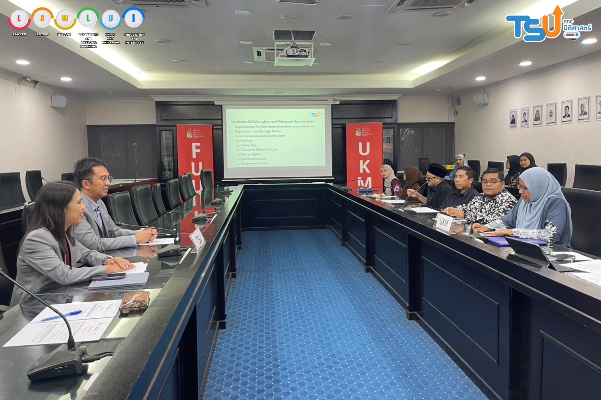 อาจารย์หทัยกาญจน์ กำเหนิดเพชร รองคณบดีฝ่ายวิชาการและการเรียนรู้, อาจารย์ณัชชาร์พัชร์ คิส ผู้ช่วยคณบดีฝ่ายวิเทศสัมพันธ์และพัฒนาสมรรถนะสากล และรองศาสตราจารย์ปพนธีร์ ธีระพันธ์ เดินทางไปยัง Faculty of Law, Universiti Kebangsaan Malaysia (UKM) รัฐสลังงอร์ ประเทศมาเลเซีย เพื่อหารือความร่วมมือทางวิชาการระหว่างสถาบัน ตลอดจนการแลกเปลี่ยนนิสิตในอนาคต ซึ่งจะเป็นโอกาสสำคัญในการเสริมสร้างศักยภาพทางวิชาการ และเพิ่มพูนประสบการณ์การเรียนรู้ในระดับนานาชาติให้กับนิสิตและคณาจารย์ ของทั้งสองสถาบัน เมื่อวันที่ 6 มีนาคม 2568