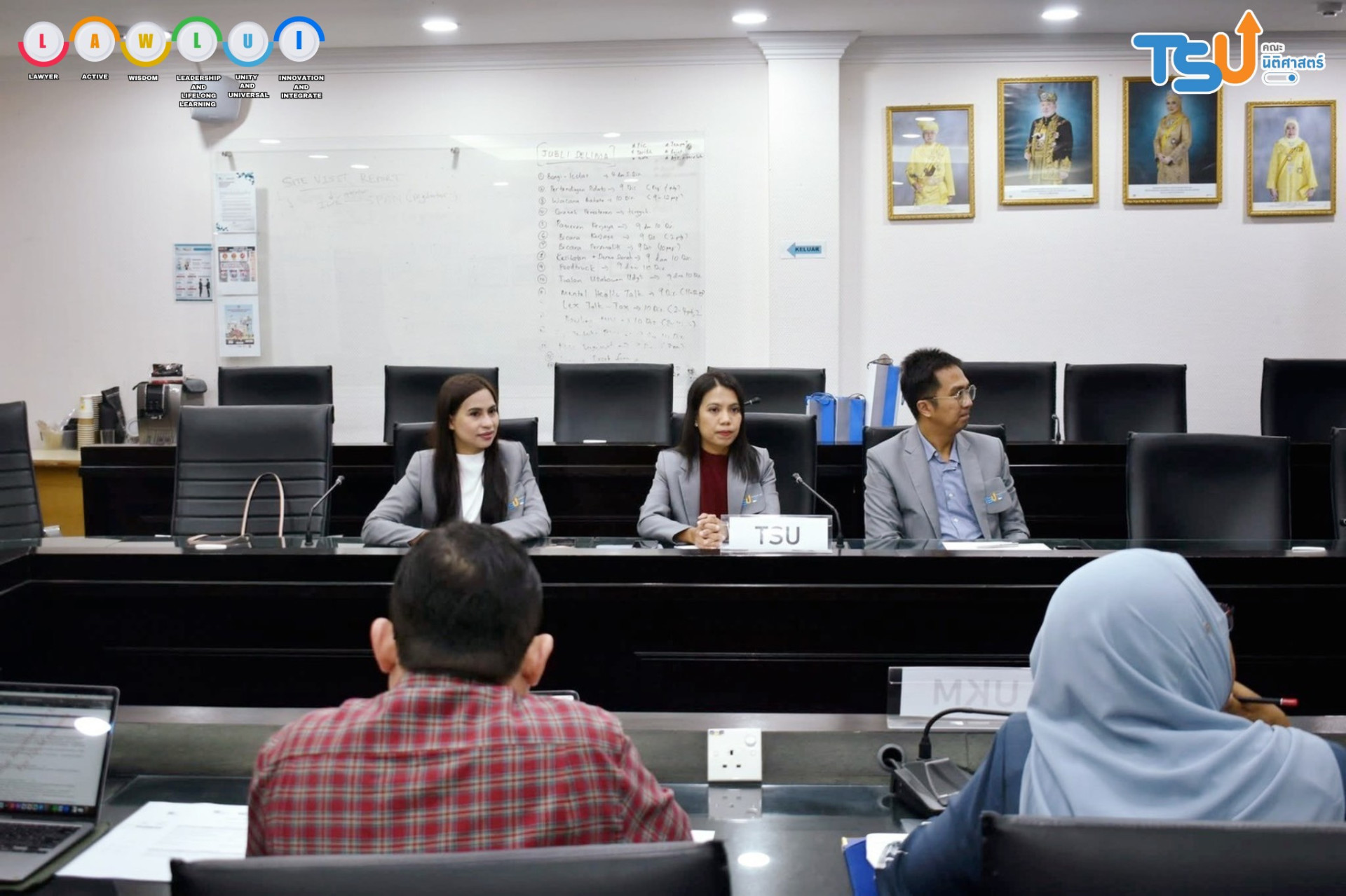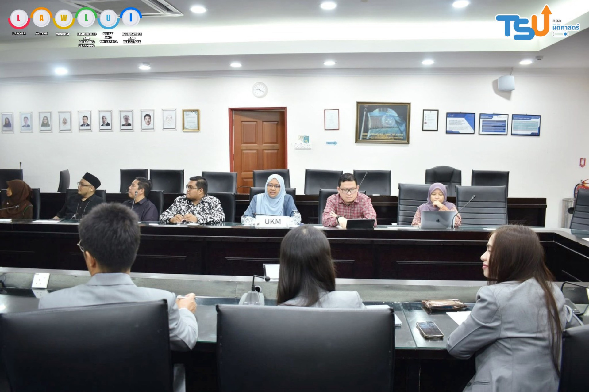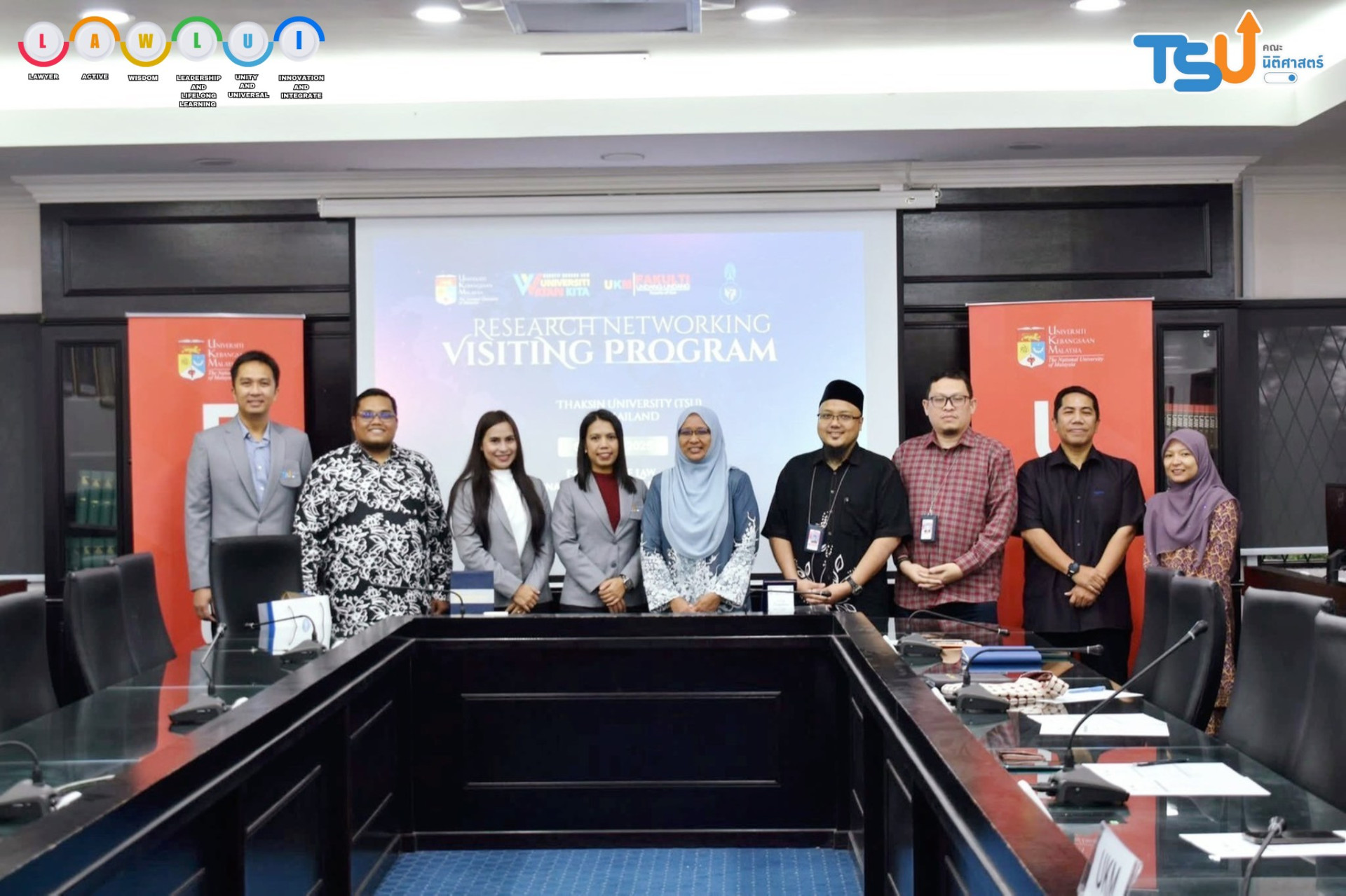 The Faculty of Law, led by Miss Hataikarn Kamnerdpetch, deputy Dean of Law, Miss Natchaphat Kiss, assistant Dean of Law, and Associate Professor Papontee Teeraphan, visited the Faculty of Law, Universiti Kebangsaan Malaysia (UKM), in Selangor, Malaysia.
