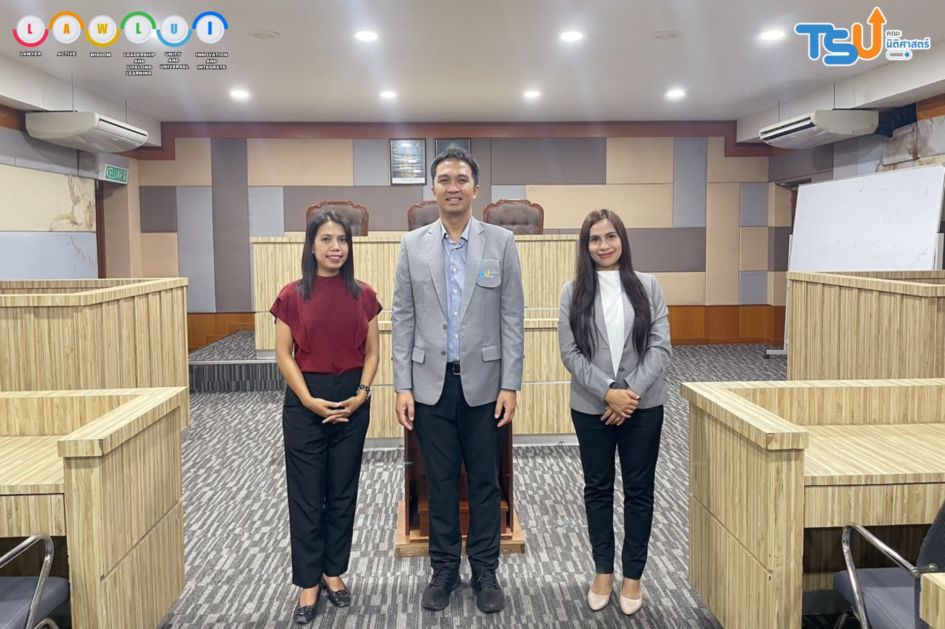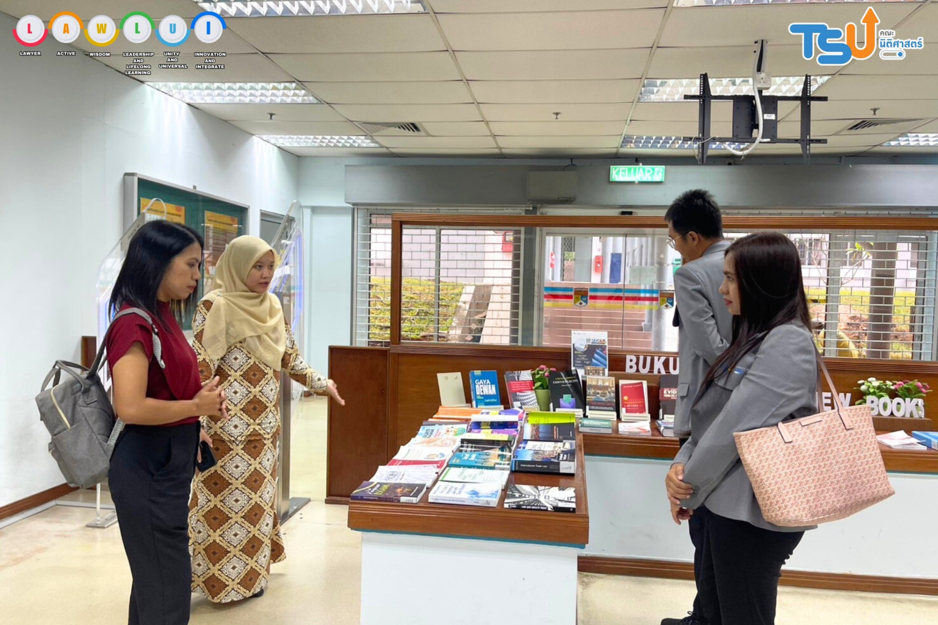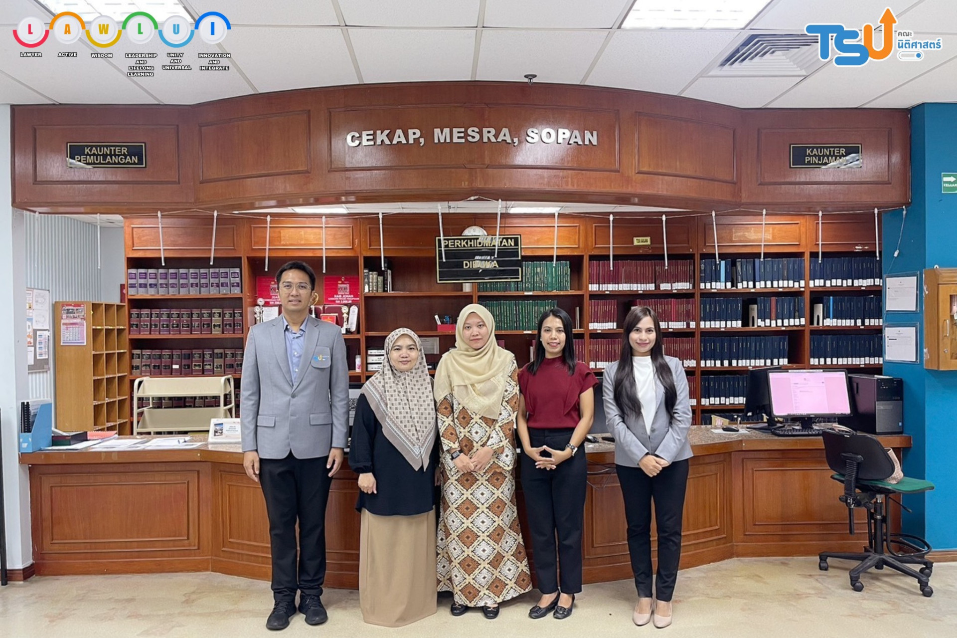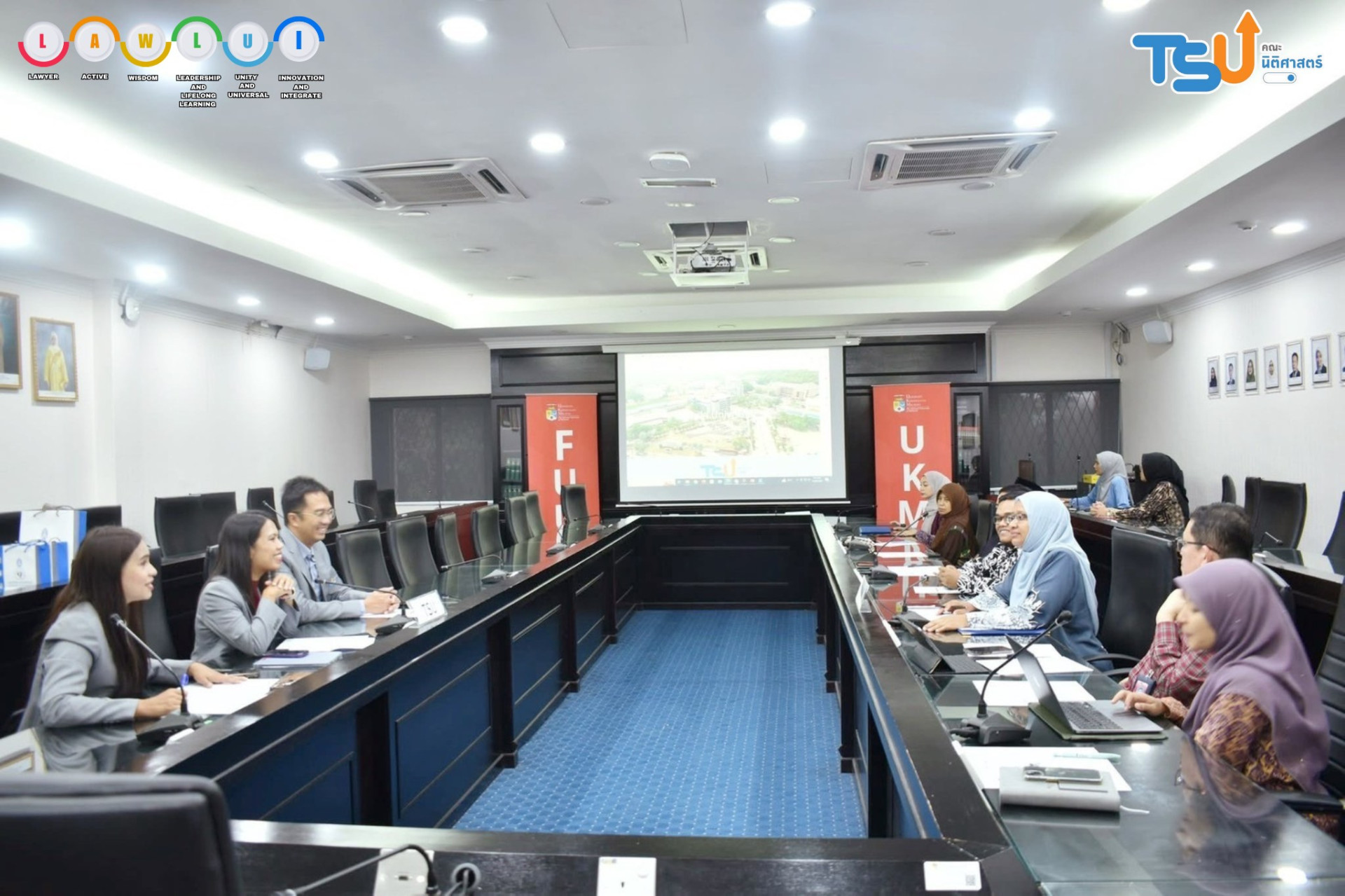 The Faculty of Law, led by Miss Hataikarn Kamnerdpetch, deputy Dean of Law, Miss Natchaphat Kiss, assistant Dean of Law, and Associate Professor Papontee Teeraphan, visited the Faculty of Law, Universiti Kebangsaan Malaysia (UKM), in Selangor, Malaysia.