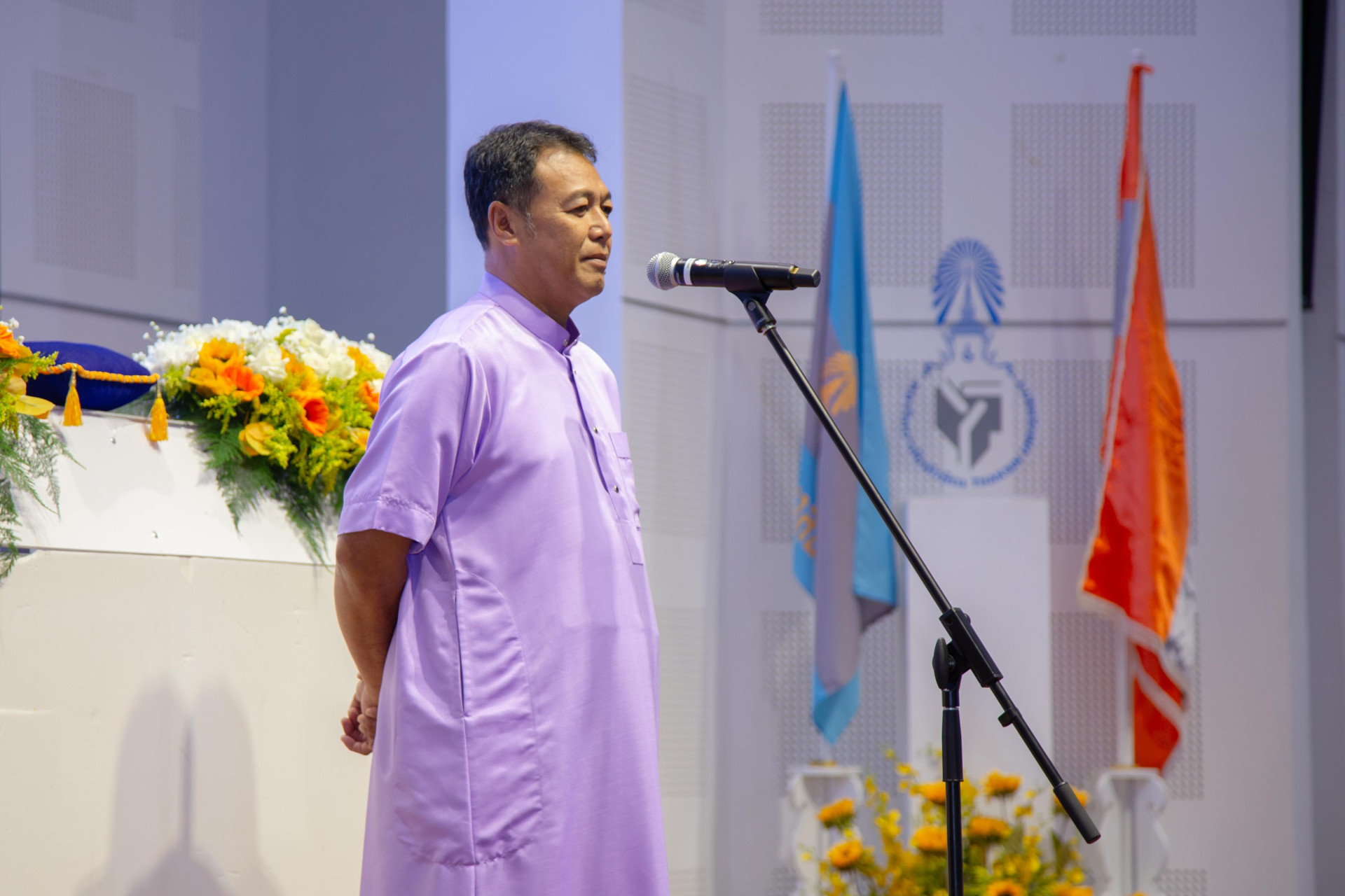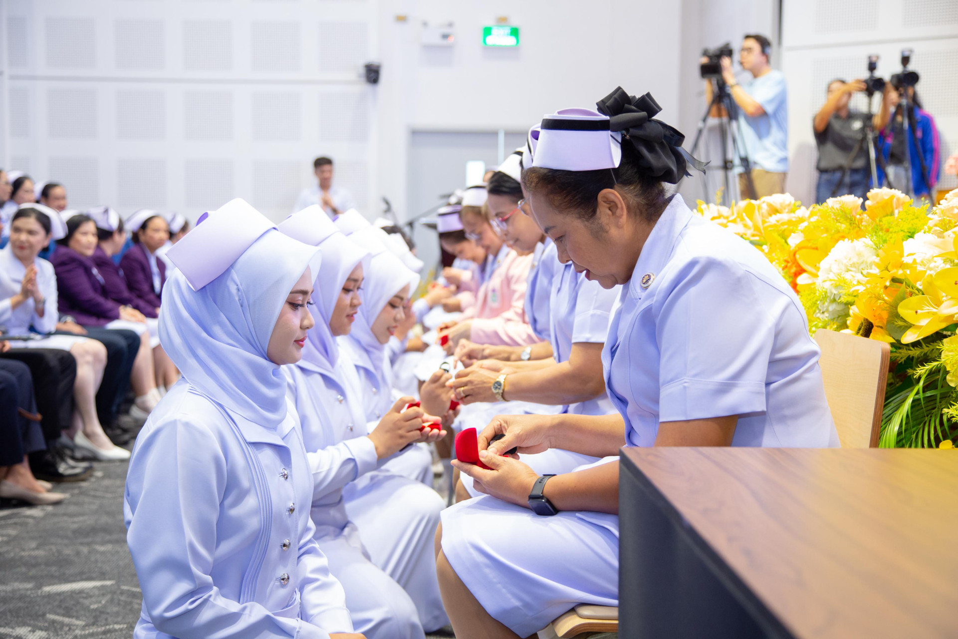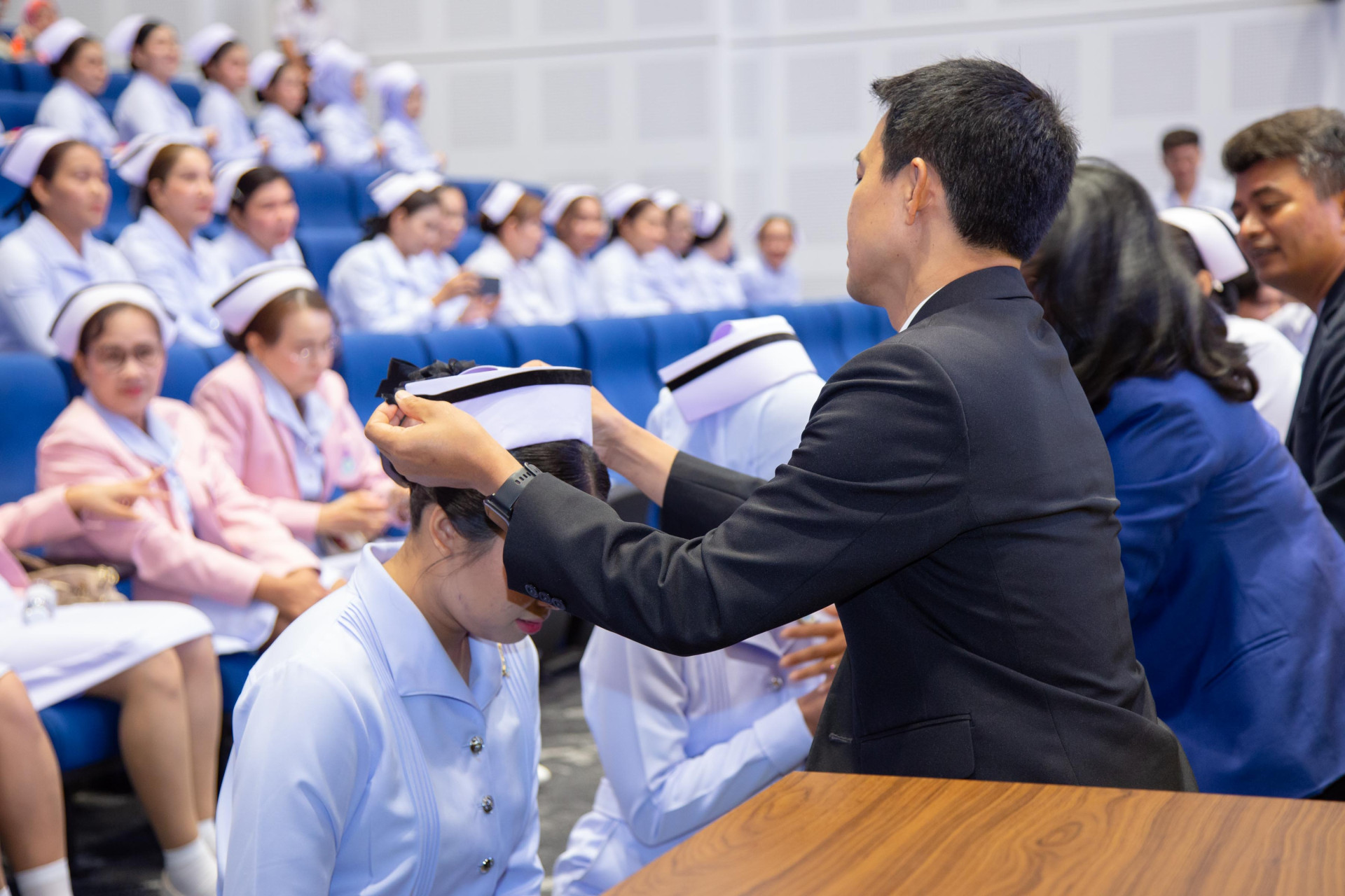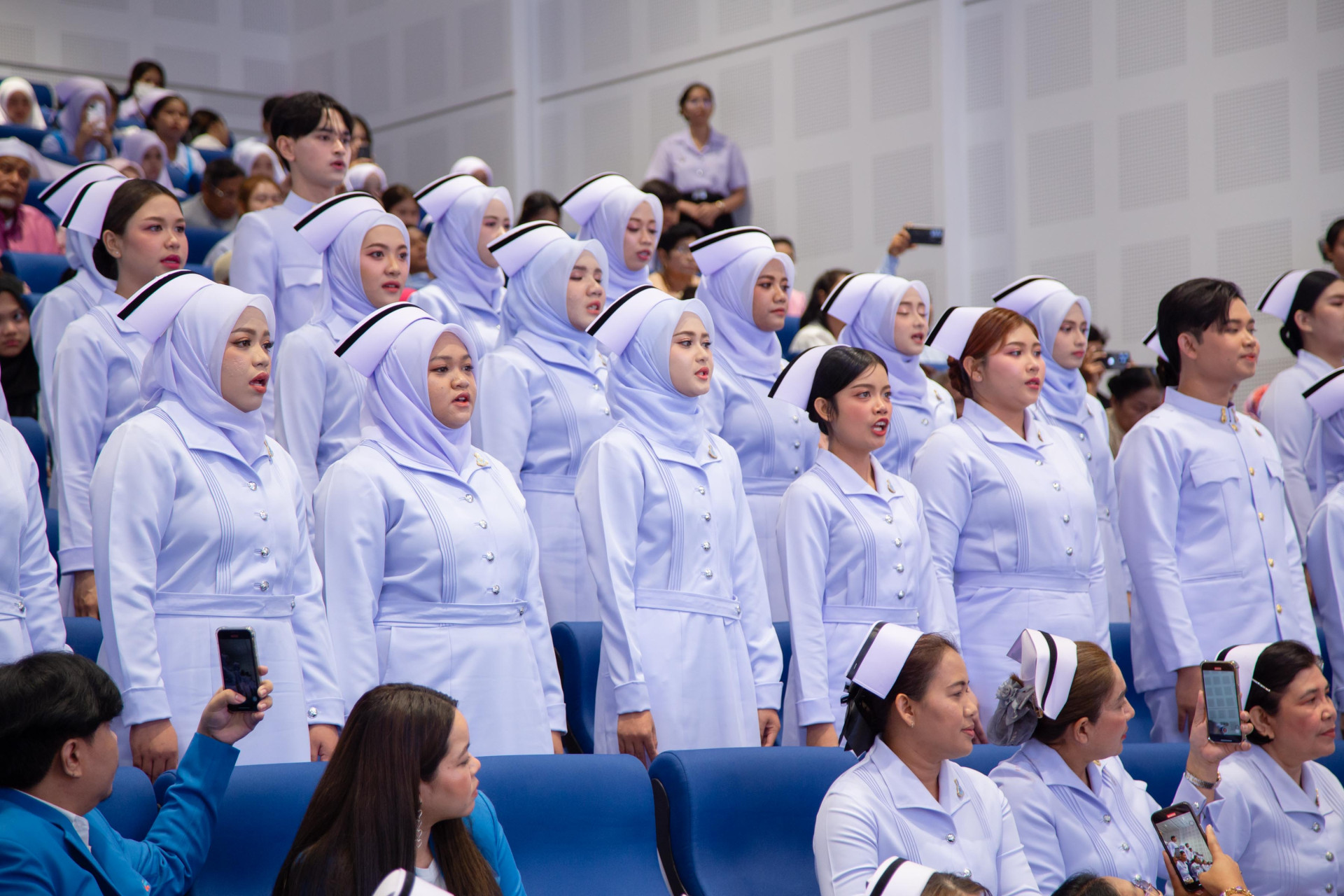 “พยาบาลคือพยาบาล คือสิ่งที่เป็น... รับหมวก ติดแถบได้เวลาออกเดินทาง ไปสู่การเป็นพยาบาล ด้วยหัวใจที่เข้มแข็ง อ่อนโยน และเปี่ยมด้วยรัก” รองศาสตราจารย์ ดร.ณฐพงศ์ จิตรนิรัตน์ อธิการบดีมหาวิทยาลัยทักษิณ กล่าว