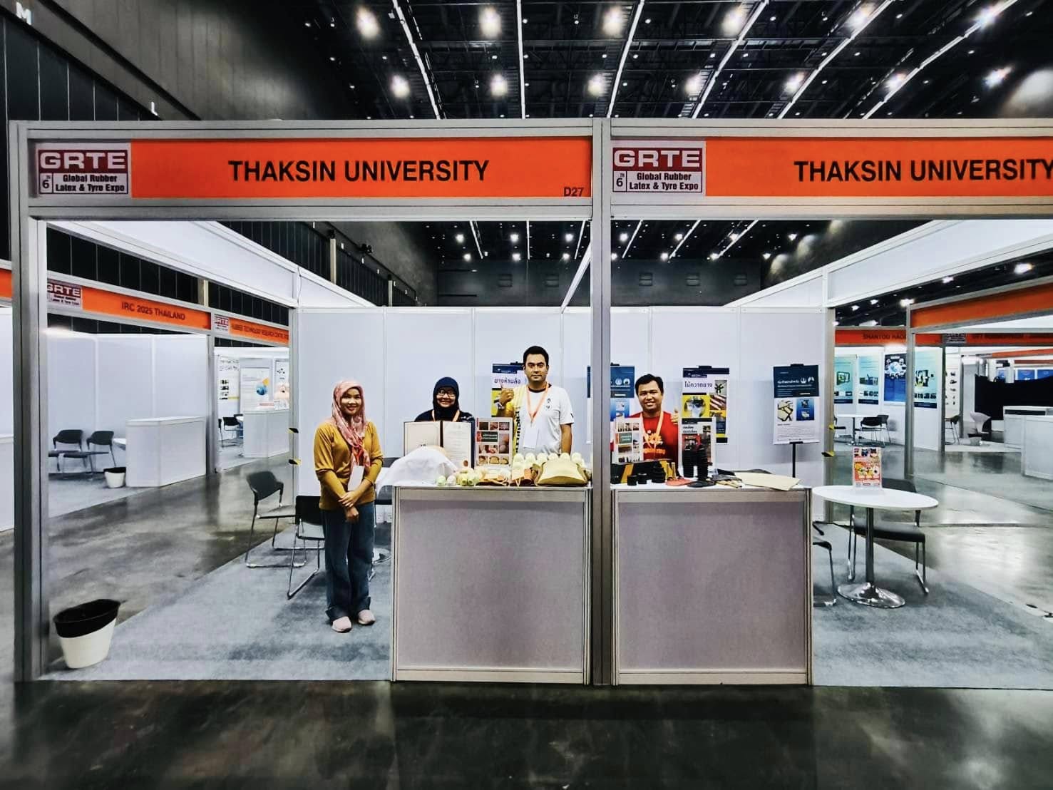 คณะวิศวกรรมศาสตร์ มหาวิทยาลัยทักิณ เข้าร่วมจัดแสดงผลงานนวัตกรรมและนำเสนอความก้าวหน้า นวัตกรรมงานวิจัย ในงาน GRTE 2025 ระหว่างวันที่ 12-13 มีนาคม พ.ศ. 2568 โดยอาจารย์ ดร.ศุภชัย สัตยานุรักษ์ รองคณบดีฝ่ายวิชาการและวิเทศสัมพันธ์ อาจารย์ ดร.วีระวุฒิ แนบเพชร รองคณบดีฝ่ายวิจัยและพัฒนาองค์กร ผู้ช่วยศาสตราจารย์ ดร.พนิตา สุมานะตระกูล ประธานหลักสูตรวิศวกรรมยาง พอลิเมอร์ และปิโตรเคมี และ ดร.พรศิริ โ๊ต๊ะแอ รองผู้จัดการศูนย์ถ่ายทอดเทคโนโลยียางเพื่อชุมชน เข้าร่วมงาน GRTE 2025 เพื่อแสดงผลงานนวัตกรรมยาง ณ ไบเทค บางนา กรุงเทพมหานคร