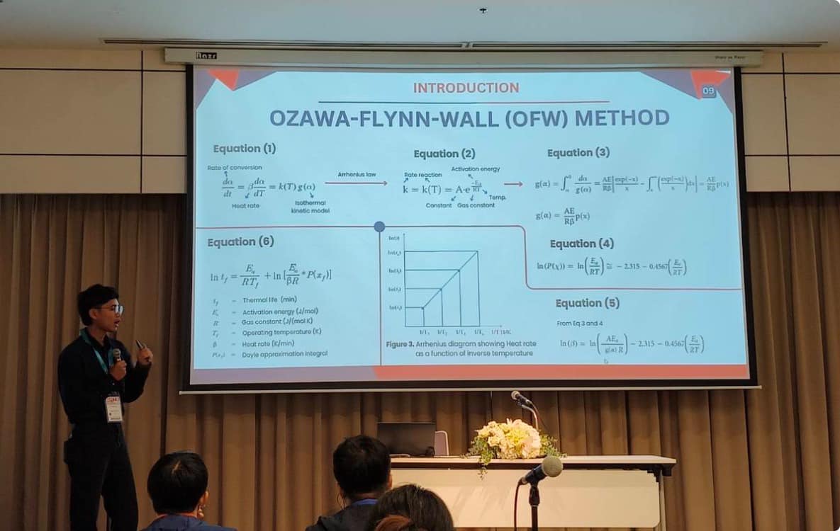 - นายสุทิวัส ทุมรัตน์ นิสิตระดับบัณฑิตศึกษาในที่ปรึกษาของ อาจารย์ ดร. วีระวุฒิ แนบเพชร นำเสนอผลงานทางวิชาการแบบบรรยายเรื่องการทำนายอายุการใช้งานของยางเบลนด์ระหว่างยางธรรมชาติและยางรีเคลมด้วยเทคนิคการวิเคราะห์การเปลี่ยนแปลงน้ำหนักด้วยความร้อน