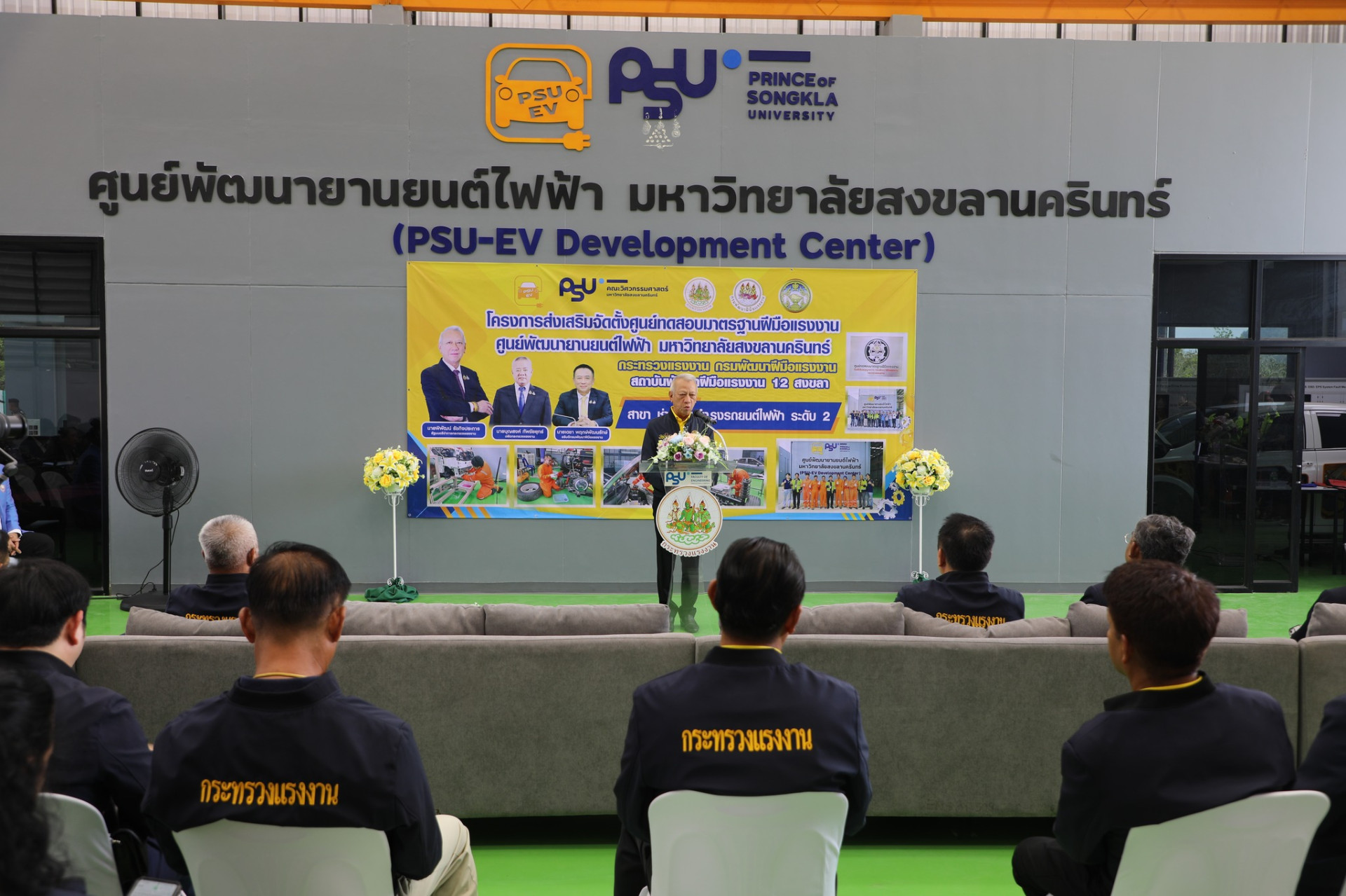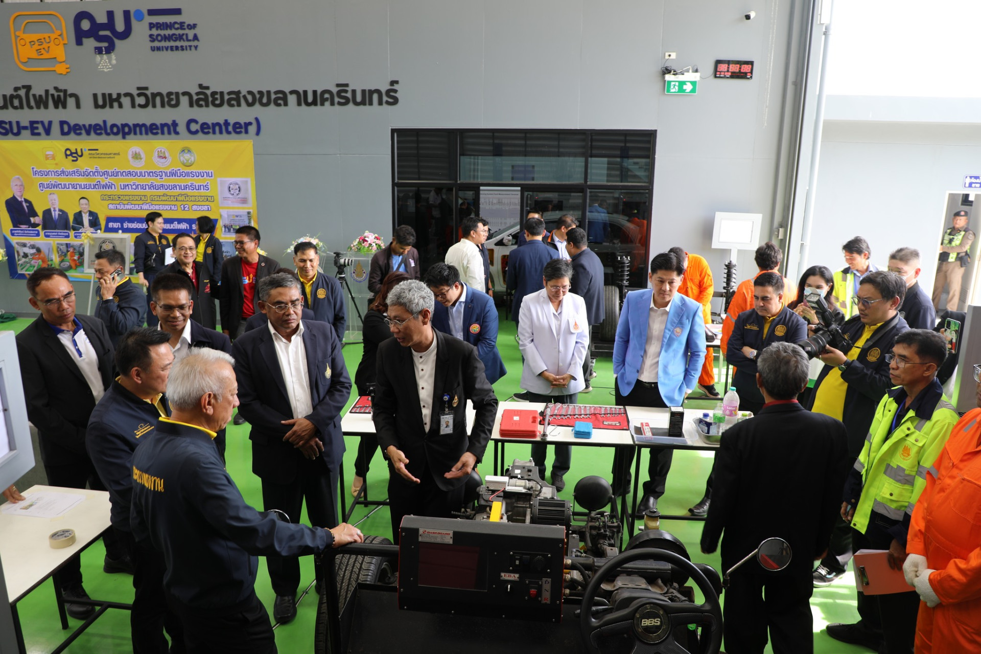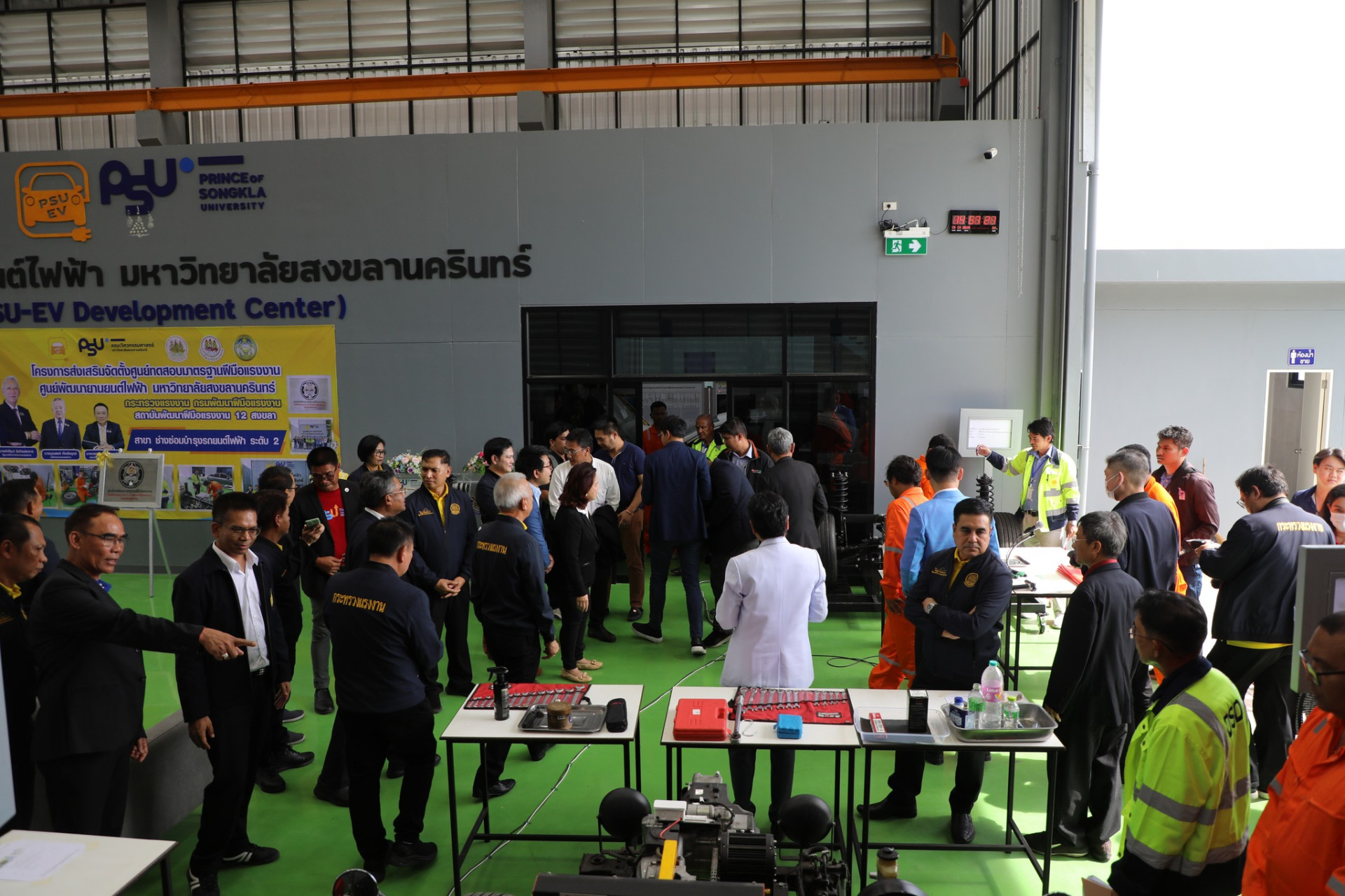 รองศาสตราจารย์ ดร.จตุพร แก้วอ่อน คณบดี คณะวิศวกรรมศาสตร์ มหาวิทยาลัยทักษิณ ร่วมกับเครือข่ายเข้าร่วมพิธีมอบป้ายศูนย์ทดสอบมาตฐานฝีมือแรงงาน สาขาช่างซ่อมบำรุงรถยนต์ไฟฟ้า ระดับ 2 และร่วมเป็นเกียรติในพิธี มอบวุฒิบัตรทดสอบมาตรฐานฝีมือแรงงาน ซึ่งมหาวิทยาลัยสงขลานครินทร์ ได้จัดพิธีรับมอบใบอนุญาตเป็นผู้ดำเนินการทดสอบมาตรฐานฝีมือแรงงาน สาขาช่างรถยนต์ไฟฟ้า ระดับที่ 2 โดยได้รับเกียรติจากนายพิพัฒน์ รัชกิจประการ รัฐมนตรีว่าการกระทรวงแรงงาน เป็นประธานและเป็นผู้มอบใบอนุญาต โดยมีผู้ช่วยศาสตราจารย์ ดร.นิวัติ แก้วประดับ อธิการบดีมหาวิทยาลัยสงขลานครินทร์ กล่าวต้อนรับ ผู้ช่วยศาสตราจารย์ ดร. นิคม สุวรรณวร คณบดีคณะวิศวกรรมศาสตร์กล่าวถึงพันธกิจของศูนย์ PSU – EV ภายใต้การดำเนินของคณะวิศวกรรมศาสตร์ และนายเดชา พฤกษ์พัฒนรักษ์ อธิบดีกรมพัฒนาฝีมือแรงงาน เมื่อวันที่ 14 มีนาคม 2568 ที่ผ่านมา ณ ศูนย์พัฒนายานยนต์ไฟฟ้า มหาวิทยาลัยสงขลานครินทร์ (PSU-EV Development Center)