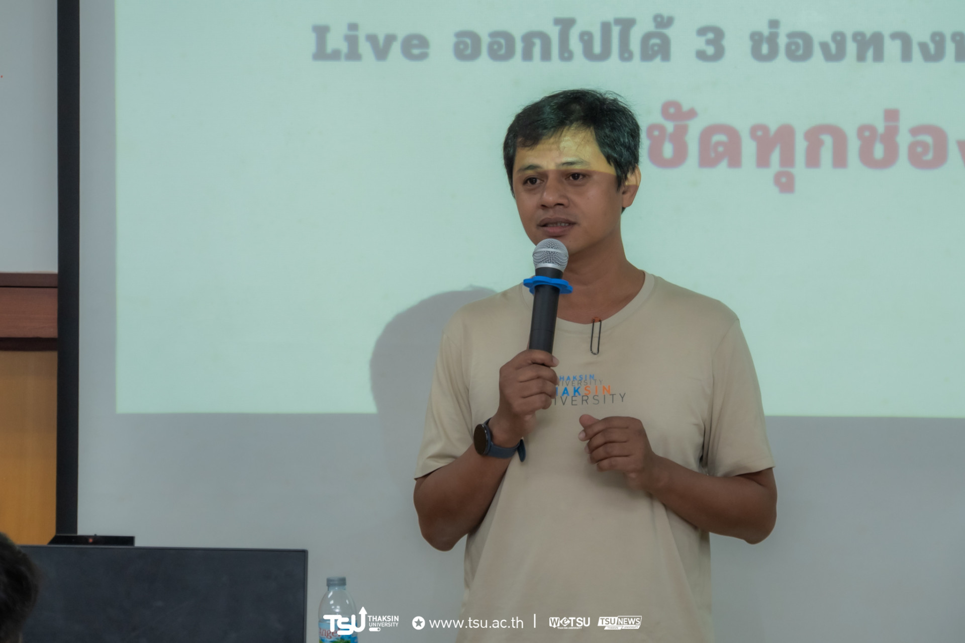 งานสื่อสารองค์กร สำนักงานมหาวิทยาลัย มหาวิทยาลัยทักษิณ จัดโครงการพัฒนานักสื่อสารองค์กร หลักสูตร เทคนิค Live stream ฉบับมือ PRO เมื่อวันที่ 18 มีนาคม 2568 เวลา 13.00 - 16.30 น. มีเครือข่ายบุคลากรงานสื่อสารองค์กรของหน่วยงานภายในเข้าร่วมอบรมจำนวน 50 คน ณ ห้องIT 307 อาคารสถาบันทรัพยากรเรียนรู้และเทคโนโลยีดิจิทัล มหาวิทยาลัยทักษิณ วิทยาเขตพัทลุง