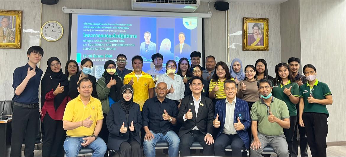 คณะเศรษฐศาสตร์และบริหารธุรกิจ มหาวิทยาลัยทักษิณ โดย ผู้ช่วยศาสตราจารย์ ดร.อนิวัช แก้วจำนงค์ ร่วมมือกับเครือข่ายทีมวิทยาผู้เชี่ยวชาญด้านพัฒนาองค์ความรู้ด้านการบริหารจัดการคุณภาพ ร่วมถ่ายทอดองค์ความรู้สู่การปฏิบัติ พร้อมการติดตามความก้าวหน้าของสมาชิกที่เข้ารับการฝึกอบรม ISO 9001: 2015 ภายใต้โครงการอบรมเชิงปฏิบัติการหลักสูตร "ISO9001:2015/AMD1:2024 และ REQUIREMENT AND IMPLEMENTATION CLIMATE ACTION CHANGE" ที่เปิดโอกาสให้สถานประกอบการ และผู้ประเมินสถานประกอบการ ที่ต้องการพัฒนาองค์ความรู้ด้านการบริหารจัดการคุณภาพระดับสากล เข้าร่วมการอบรม ในระหว่างวันที่ 17-18 มีนาคม 2568 ห้อง 18410 อาคาร 50 ปี มหาวิทยาลัยทักษิณ ได้รับเกียรติจากวิทยากรผู้เชี่ยวชาญด้านการจัดการคุณภาพองค์กร :