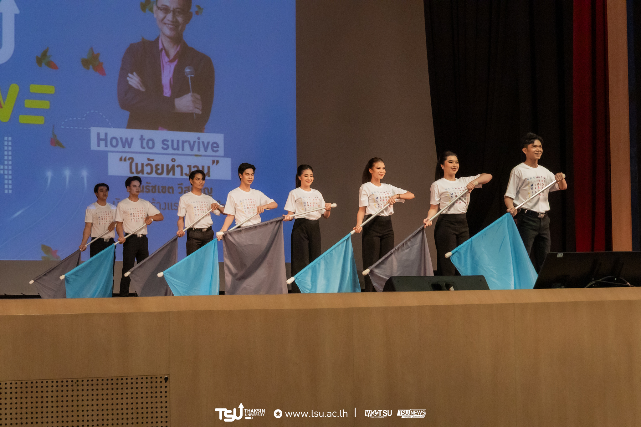 ติดตามด้วย คณบดีแต่ละคณะร่วมอวยพรแก่นิสิต และการบรรยายพิเศษ “How to survive ในวัยทำงาน” โดยวิทยากร คุณรัชเขต วีสเพ็ญ นักพูดสร้างแรงบันดาลใจ