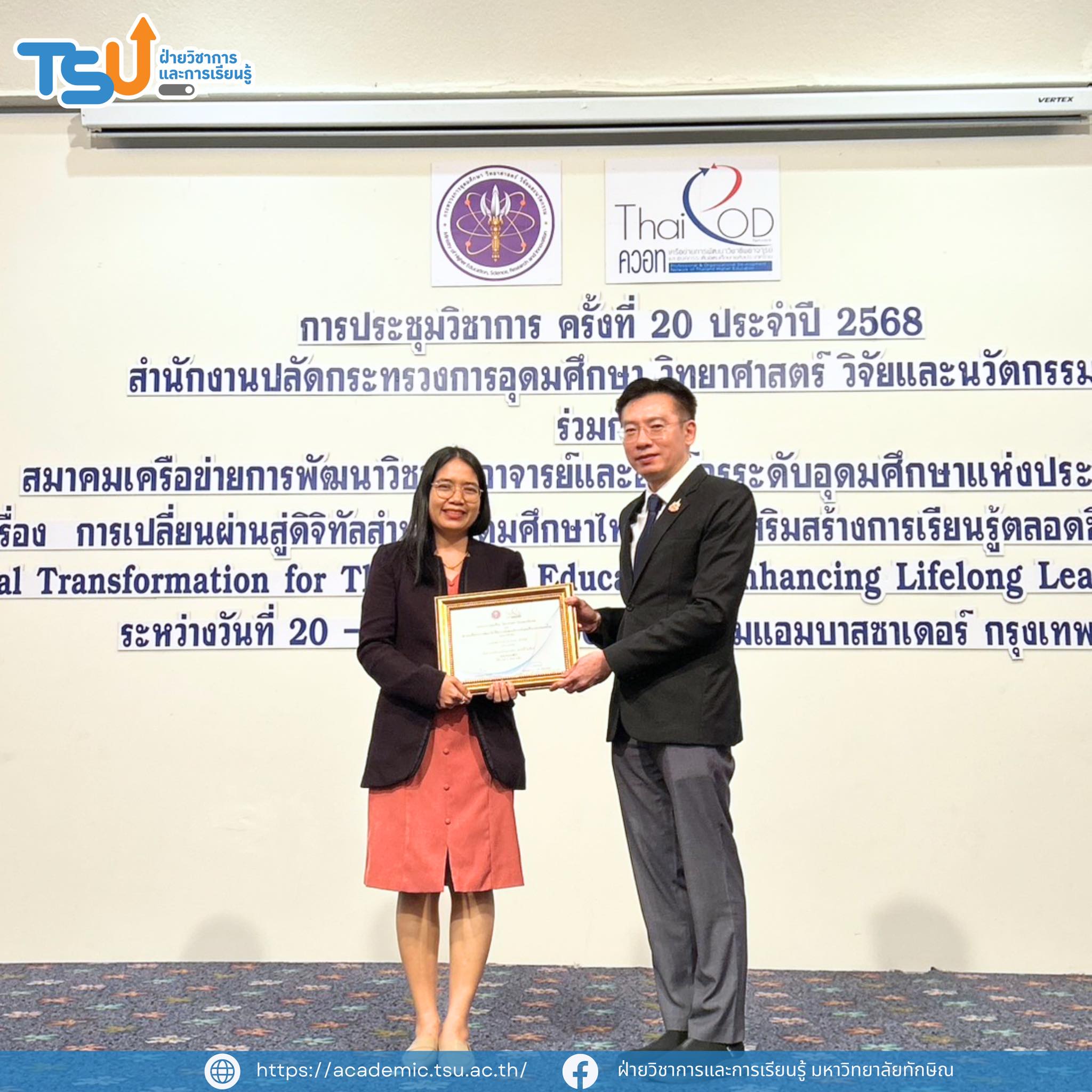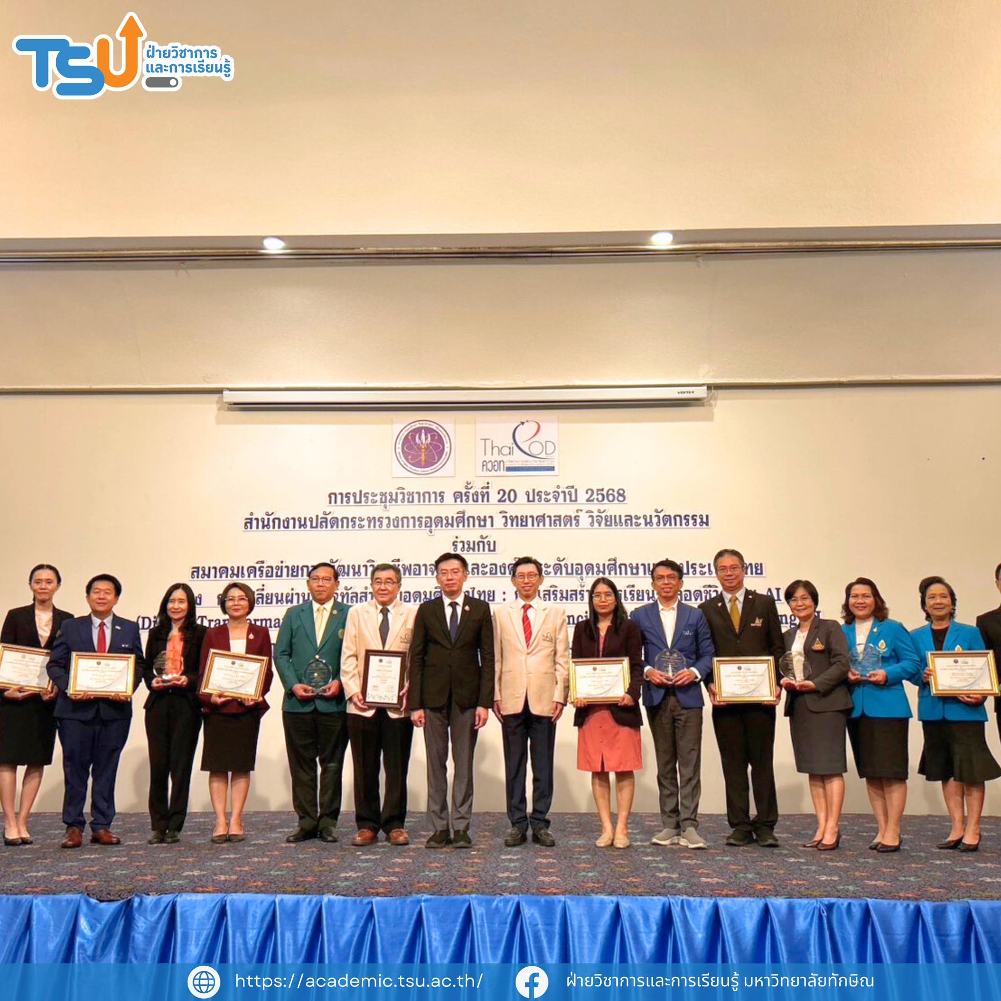 มหาวิทยาลัยทักษิณได้รับรางวัลเชิดชูเกียรติในฐานะสถาบันการศึกษาที่ส่งเสริมและพัฒนาการจัดการเรียนการสอนดีเด่นระดับประเทศ โดย รองศาสตราจารย์ ดร.สุทธิพร บุญมาก รองอธิการบดีฝ่ายวิชาการและการเรียนรู้ เป็นผู้แทนมหาวิทยาลัยเข้ารับรางวัลดังกล่าว นับเป็นความภาคภูมิใจของสถาบันที่ให้ความสำคัญกับคุณภาพการศึกษาและการพัฒนาอาจารย์ต้นแบบด้านการสอนอย่างต่อเนื่อง