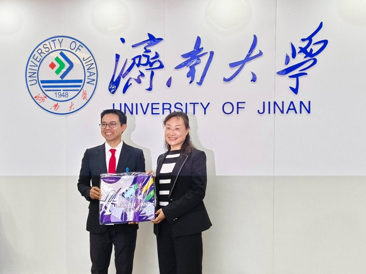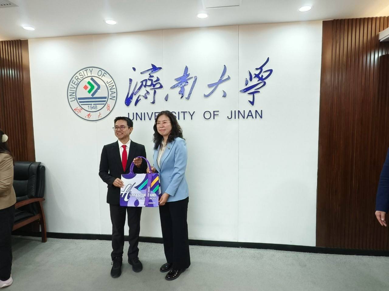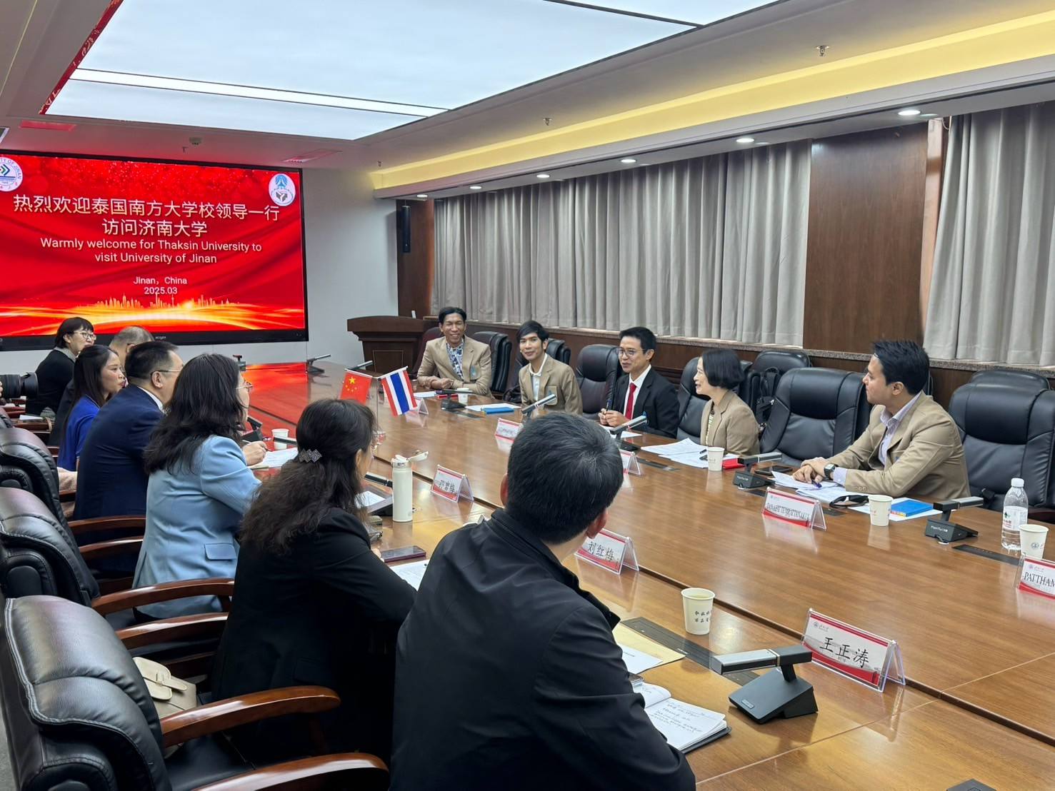 คณะมนุษยศาสตร์และสังคมศาสตร์ ได้ดำเนินโครงการสนับสนุนความเป็นนานาชาติภายใต้ความร่วมมือทางวิชาการกับ Jinan University หรือ มหาวิทยาลัยจี้หนาน (暨南大学) ซึ่งเป็นมหาวิทยาลัยชั้นนำของประเทศสาธารณรัฐประชาชนจีน มีวัตถุประสงค์เพื่อสนับสนุนและส่งเสริมการแลกเปลี่ยนองค์ความรู้และวัฒนธรรม พร้อมสร้างโอกาสทางการศึกษาและการวิจัยในระดับนานาชาติ เปิดประสบการณ์ทางภาษาและวัฒนธรรมในต่างประเทศ เพื่อเตรียมความพร้อมให้นิสิตสู่เวทีระดับนานาชาติ พร้อมทั้งขยายเครือข่ายความร่วมมือกับสถาบันการศึกษาและองค์กรอื่น ๆ ในระดับนานาชาติ จัดขึ้นระหว่างวันที่ 22-28 มีนาคม 2568 โดย รองศาสตราจารย์ ดร.ณฐพงศ์ จิตรนิรัตน์ อธิการบดีมหาวิทยาลัยทักษิณ นำทีมคณะผู้บริหาร และนิสิต คณะมนุษยศาสตร์และสังคมศาสตร์ ร่วมเดินทางไปในครั้งนี้เพื่อเข้าร่วมประชุมแลกเปลี่ยนและร่วมพิธีเปิดกิจกรรมกับผู้บริหารของมหาวิทยาลัยจี้หนาน (University of Jinan) นำโดย Mr.Liu Zongming, the President of University of Jinan พร้อมทีมผู้บริหาร