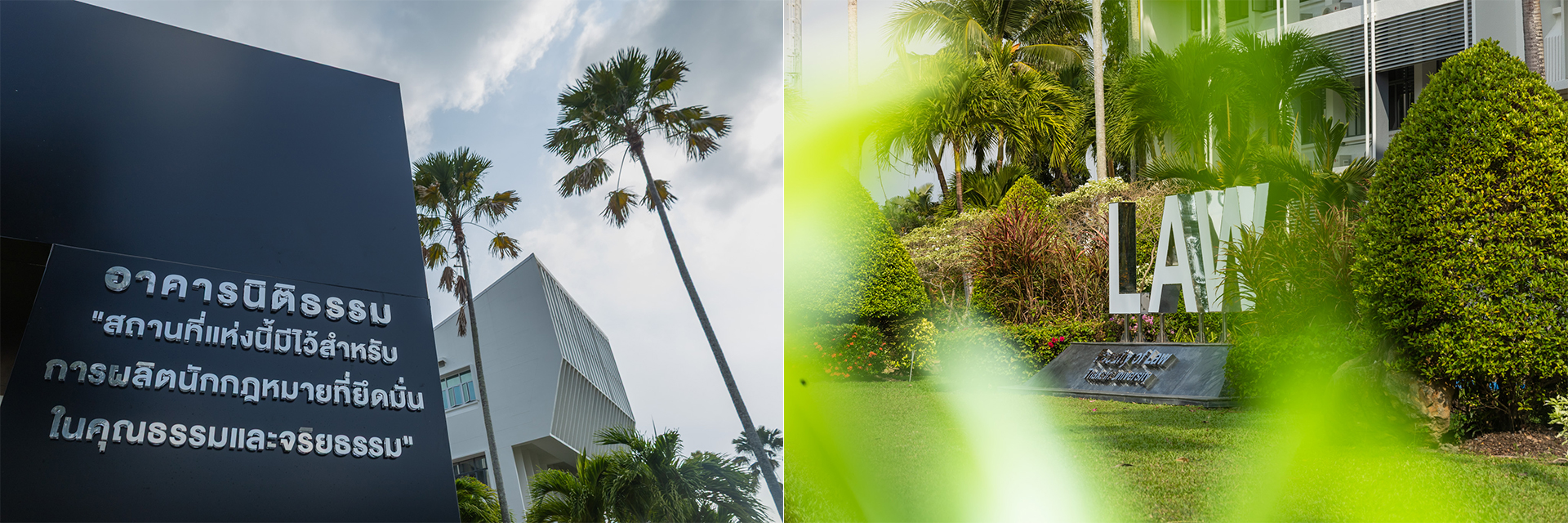 มีชื่อว่า อาคาร “นิติธรรม” โดยสื่อความหมายถึง การเป็นสถานที่ที่มีไว้สำหรับผลิตนักกฎหมายที่ยึดมั่นคุณธรรมและจริยธรรม