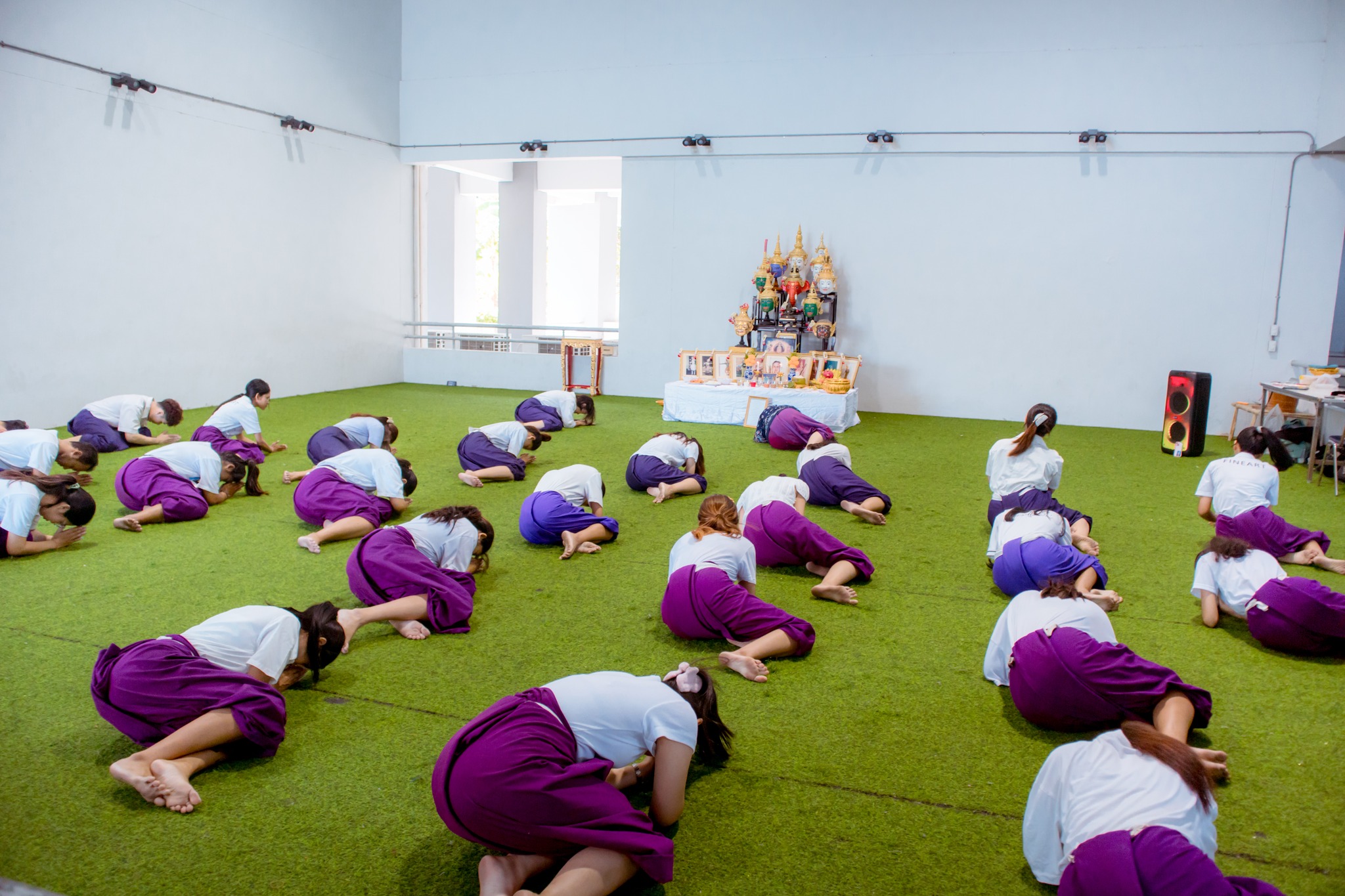 คณาจารย์และนิสิตหลักสูตร ศป.บ.ศิลปะการแสดง คณะศิลปกรรมศาสตร์ นำโดย อาจารย์ประภาพรรณ ภูเก้าล้วน ประธานหลักสูตร ศป.บ.ศิลปะการแสดง พร้อมด้วยผู้ช่วยศาสตราจารย์อรวรรณ โภชนาธาร อาจารย์ประจำหลักสูตร จัดพิธีบวงสรวงครู เพื่อคำนับครูและสร้างขวัญกำลังใจให้กับผู้สร้างสรรค์ผลงาน ผู้แสดง และทีมงานในการนำเสนอผลงานศิลปะการแสดงนิพนธ์ของนิสิตชั้นปีที่ 4 ประจำปีการศึกษา 2567 เสริมความเป็นสิริมงคลและแสดงถึงความเคารพกตเวทีต่อบูรพาจารย์และครูบาอาจารย์ เมื่อวันที่ 27 มีนาคม 2568 ณ ลานหญ้าเทียม ชั้น 2 อาคาร 17 คณะศิลปกรรมศาสตร์ มหาวิทยาลัยทักษิณ