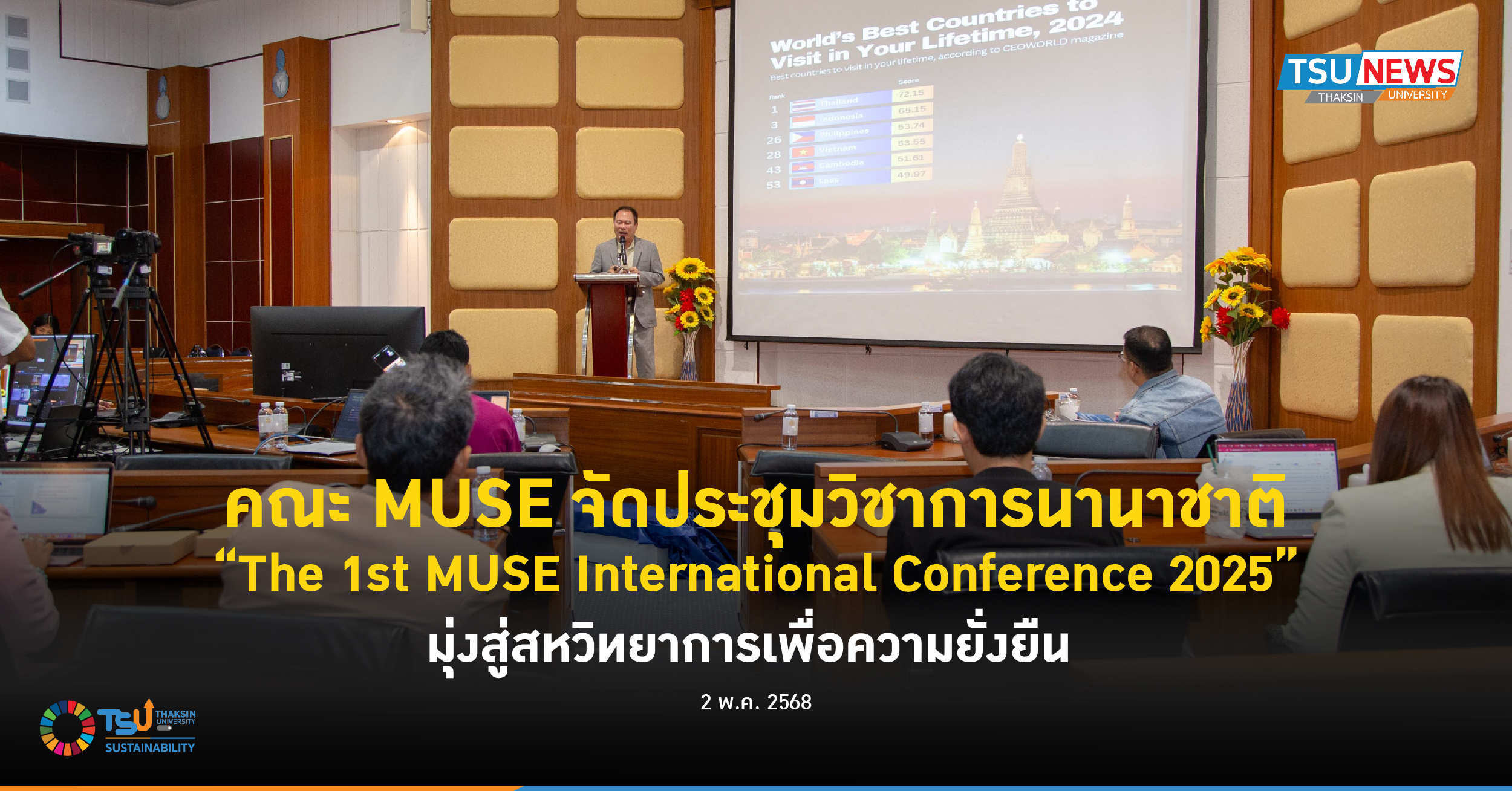 คณะสหวิทยาการและการประกอบการ มหาวิทยาลัยทักษิณ เปิดเวทีประชุมวิชาการนานาชาติ “The 1st MUSE International Conference 2025” ภายใต้แนวคิด “สหวิทยาการเพื่อความยั่งยืน” รวมพลังนักวิจัยไทย-ต่างชาติ ร่วมนำเสนอผลงาน สร้างเครือข่ายความรู้ที่ยั่งยืน
