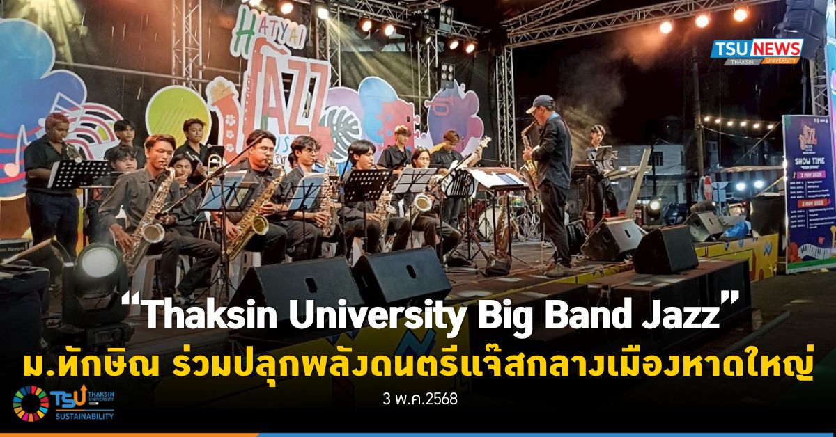 หนึ่งในไฮไลท์ (Highlight) สำคัญของงาน Hatyai Jazz Music Festival 2025 ผู้เข้าชมงานไม่ควรพลาด คือการแสดงวงดนตรีแจ๊สจากสาขาวิชาดุริยางคศาสตร์ คณะศิลปกรรมศาสตร์ มหาวิทยาลัยทักษิณ ในนามวงดนตรี Thaksin University Big Band Jazz (วงดนตรีมหาวิทยาลัยทักษิณ) สำหรับวงดนตรี Thaksin University Big Band Jazz ก่อตั้งขึ้นตั้งแต่ปี พ.ศ. 2541 โดยมีสมาชิกเป็นนิสิตสาขาวิชาดุริยางคศาสตร์สากลและนิสิตระดับบัณฑิตศึกษา สาขาวิชาดนตรีสร้างสรรค์ ร่วมกับคณาจารย์ในสาขาวิชาดุริยางคศาสตร์ ภายใต้การควบคุมวงดนตรีโดย ผู้ช่วยศาสตราจารย์ ดร.ประหยัด ศุภจิตรา Artistic Director วงดนตรี Big Band ที่เล่นได้ทุกแนวเพลง พวกเขาเคยนำบทเพลง Jazz Standard Repertoire อันไพเราะมากมายออกแสดง และเป็นตัวแทนของมหาวิทยาลัยในเวทีระดับชาติและนานาชาติ เช่น Thailand International Jazz Conference (TIJC) คอนเสิร์ตร่วมกับ Mahidol Faculty Jazz Ensemble