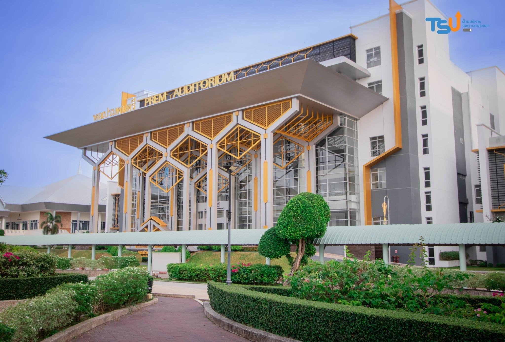 หอเปรมดนตรี คือ อาคารศูนย์ปฏิบัติการดนตรีและหอศิลปะการแสดง ที่ถูกจัดให้เป็น “ศูนย์ศิลปะและชีวิตเอเชียตะวันออกเฉียงใต้” เปรียบเสมือน Landmark อีกแห่งหนึ่งของมหาวิทยาลัยทักษิณ วิทยาเขตสงขลา สถาปนิกได้ออกแบบงานสถาปัตยกรรมให้มีความสง่างาม แสดงให้เห็นถึงความเป็นศูนย์กลางทางด้านศิลปวัฒนธรรม และด้านการแสดงดนตรีของภาคใต้ มีพื้นที่กว้าง และระบบแสง สี เสียงมีคุณภาพ สำหรับรองรับการใช้งานที่หลากหลาย ทั้งการแสดงดนตรี การแสดงละคร การประชุม สัมมนาในระดับประเทศ