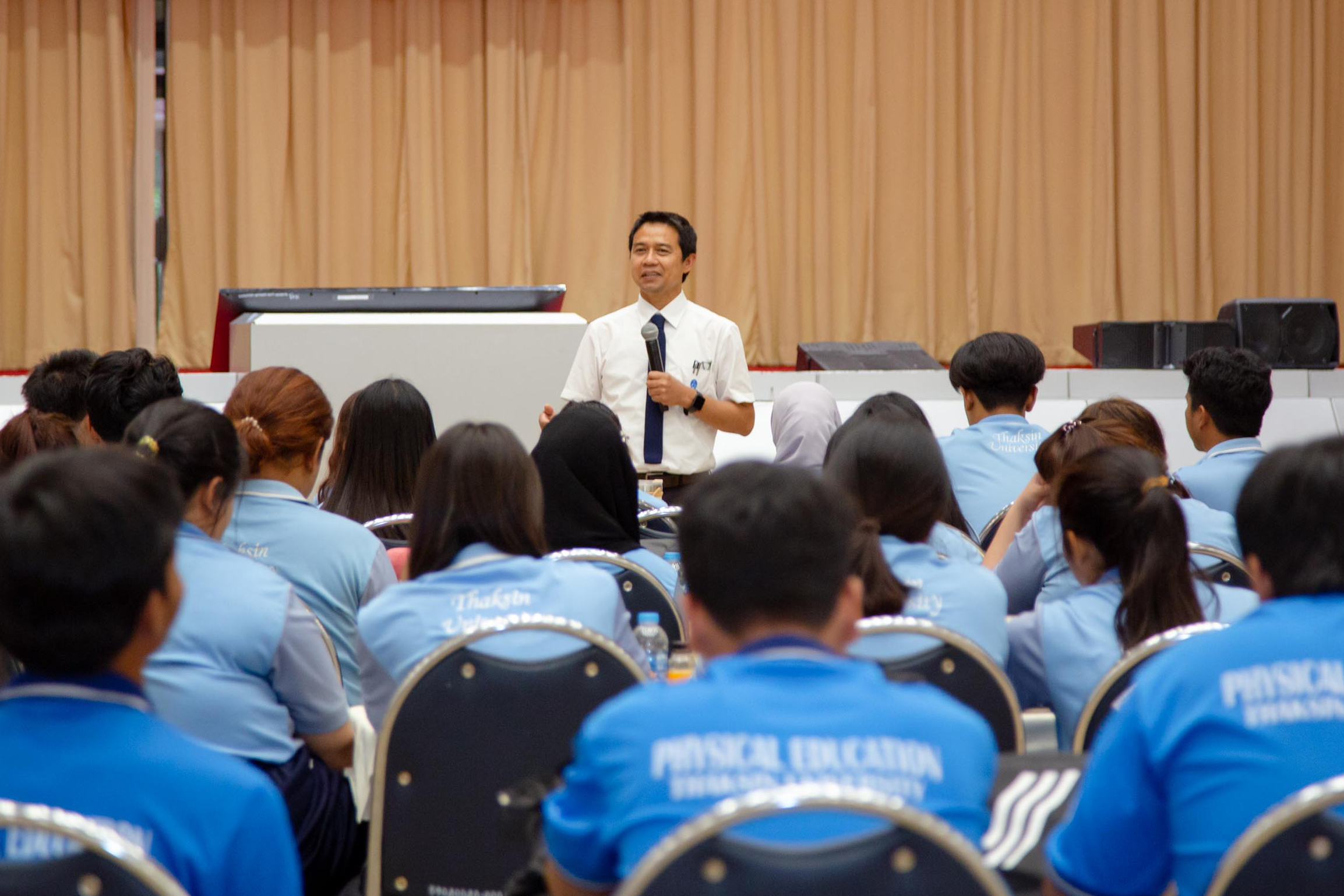 ในช่วงบ่ายของวันเดียวกัน มีการบรรยายพิเศษหัวข้อ “ทิศทางการจัดกิจกรรมนิสิตภายใต้หมุดหมายของมหาวิทยาลัย” โดย รองศาสตราจารย์ ดร.ณฐพงศ์ จิตรนิรัตน์ อธิการบดีมหาวิทยาลัยทักษิณ ซึ่งได้ให้แนวทางในการจัดกิจกรรมที่มุ่งเน้นสมดุลระหว่างการเรียนและกิจกรรม พร้อมถ่ายทอดแนวคิดการใช้ชีวิตในรั้วมหาวิทยาลัยอย่างมีคุณค่า เพื่อสร้างแรงบันดาลใจให้นิสิตสามารถนำไปปรับใช้ได้จริง