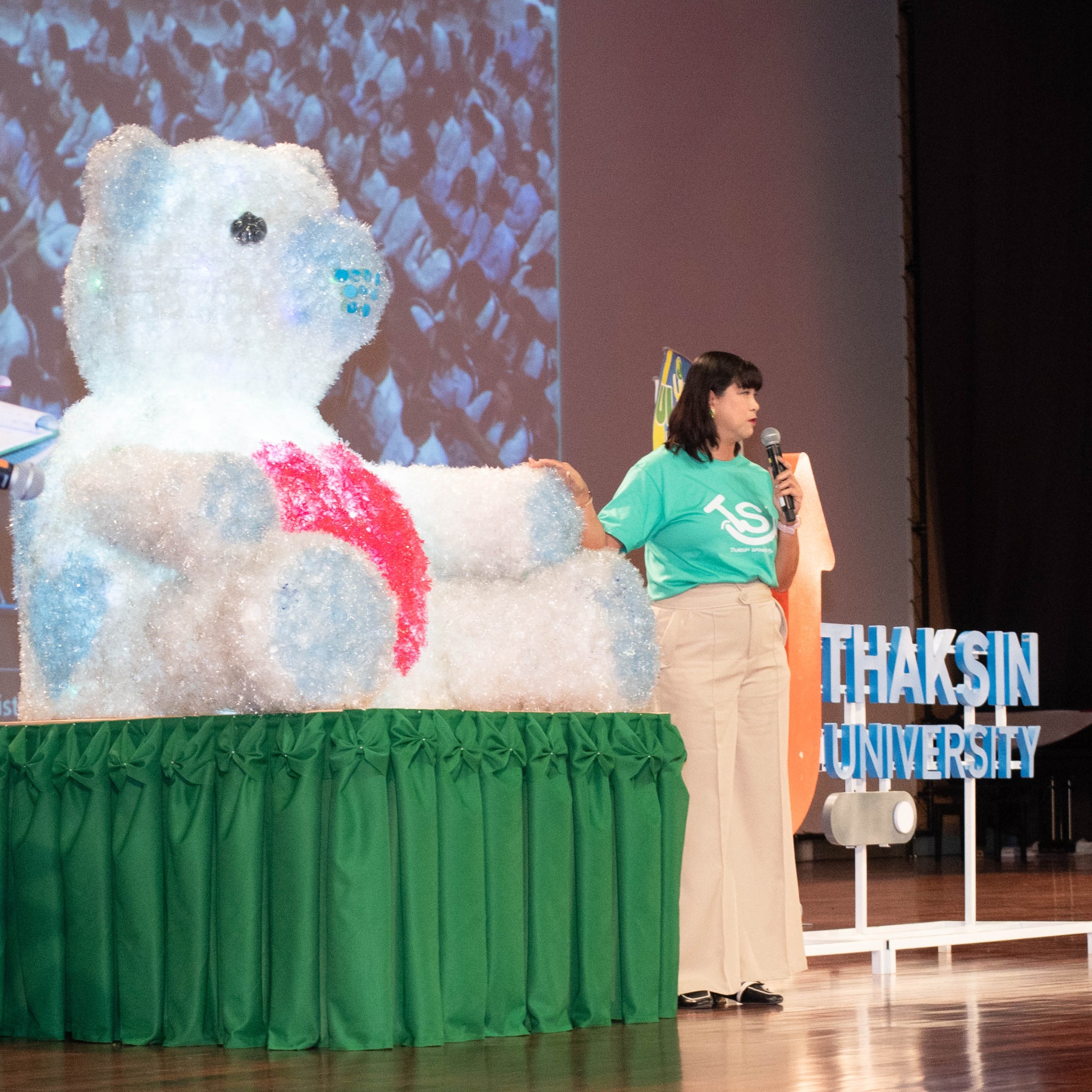 มหาวิทยาลัยทักษิณ วิทยาเขตสงขลา มีกิจกรรมคัดแยกขยะเพื่อสร้างจิตสำนึกที่ดีต่อสิ่งแวดล้อมช่วยลดปริมาณขยะตามนโยบายมหาวิทยาลัยสีเขียว โดยส่งเสริมการรีไซเคิลขวดพลาสติกให้สามารถนำกลับมาใช้ใหม่เพื่อขับเคลื่อนหมุดหมายนโยบายมหาวิทยาลัยตามแผนกลยุทธ์มหาวิทยาลัยทักษิณ ระยะ 5 ปี (พ.ศ. 2566 - 2570) กลยุทธ์ 6.7 พัฒนาสู่การเป็นมหาวิทยาลัยสีเขียว และขับเคลื่อนให้มหาวิทยาลัยทักษิณมุ่งสู่การเป็น The University of Glocalization โดยได้จัดแสดงสัญลักษณ์ ของการลดขยะคือ ตุ๊กตาน้องหมีรีไซเคิล ที่ผลิตจากขวดน้ำดื่มที่แปลงจากขยะขวดพลาสติก กลายเป็น ตุ๊กตาน้องหมี ที่จะไม่ใช่ขยะอีกต่อไป ตั้งเด่นเป็นจุดเช็คอินภายในงาน