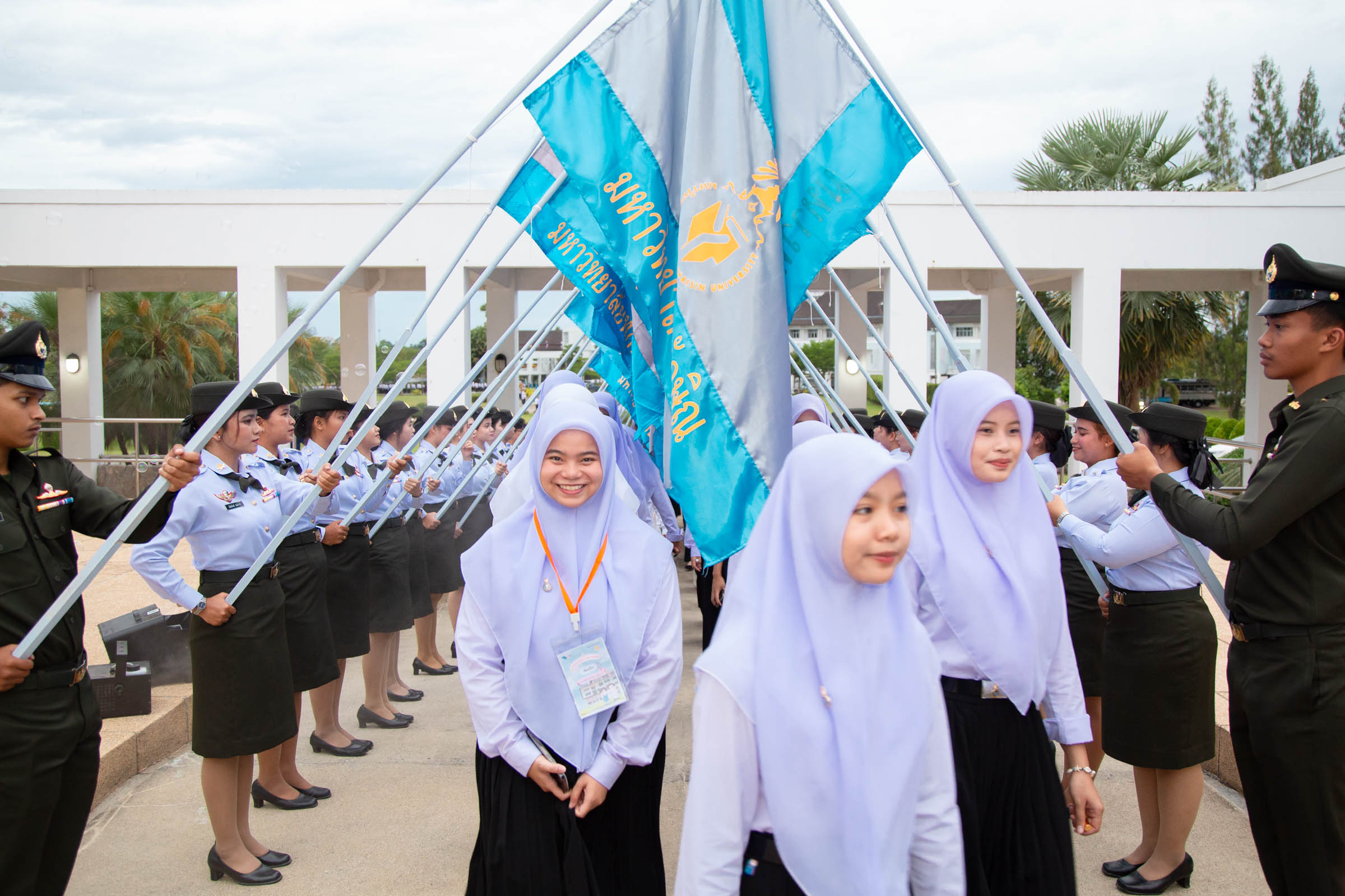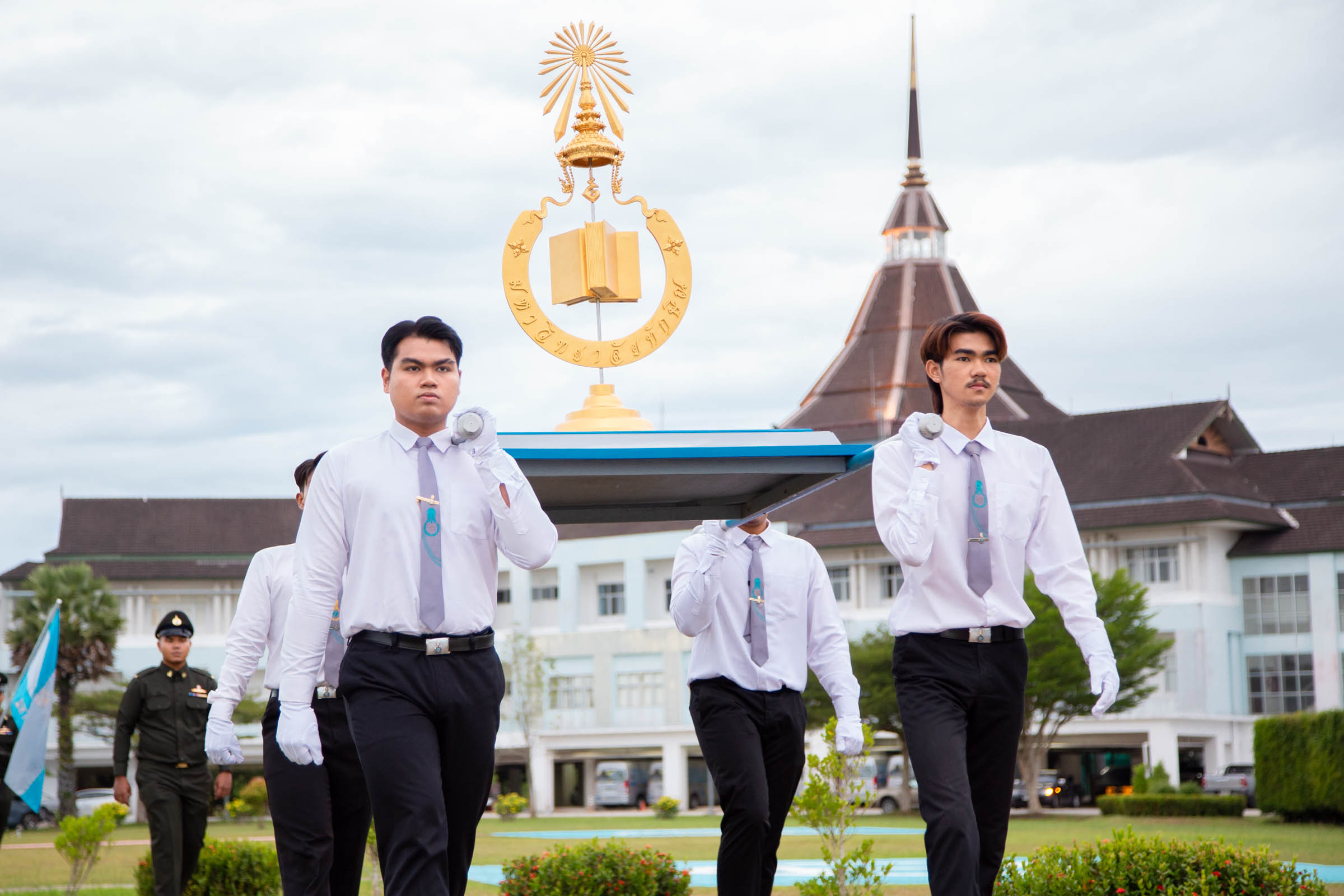 บรรยากาศเริ่มต้นขึ้นเมื่อพระอาทิตย์ลาลับขอบฟ้า เวลา 18.00 น. นิสิตชั้นปีที่ 1 พร้อมใจกันรวมตัว ณ ลานหน้าเสาธง ร่วมกันร้องเพลงชาติไทยอย่างพร้อมเพรียง จากนั้นขบวนเกียรติยศแห่งความภาคภูมิใจได้เริ่มต้นขึ้น นิสิตเดินลอดซุ้มริ้วธงของมหาวิทยาลัยอย่างสง่างาม มุ่งหน้าสู่ลานกิจกรรมหน้าอาคารหอประชุมเฉลิมพระเกียรติ ก่อนจะร่วมกันแปรอักษรเป็นคำว่า “TSU 68” สะท้อนพลังของนิสิตรุ่นใหม่ที่เต็มเปี่ยมด้วยจิตวิญญาณแห่งความเป็นทักษิณ