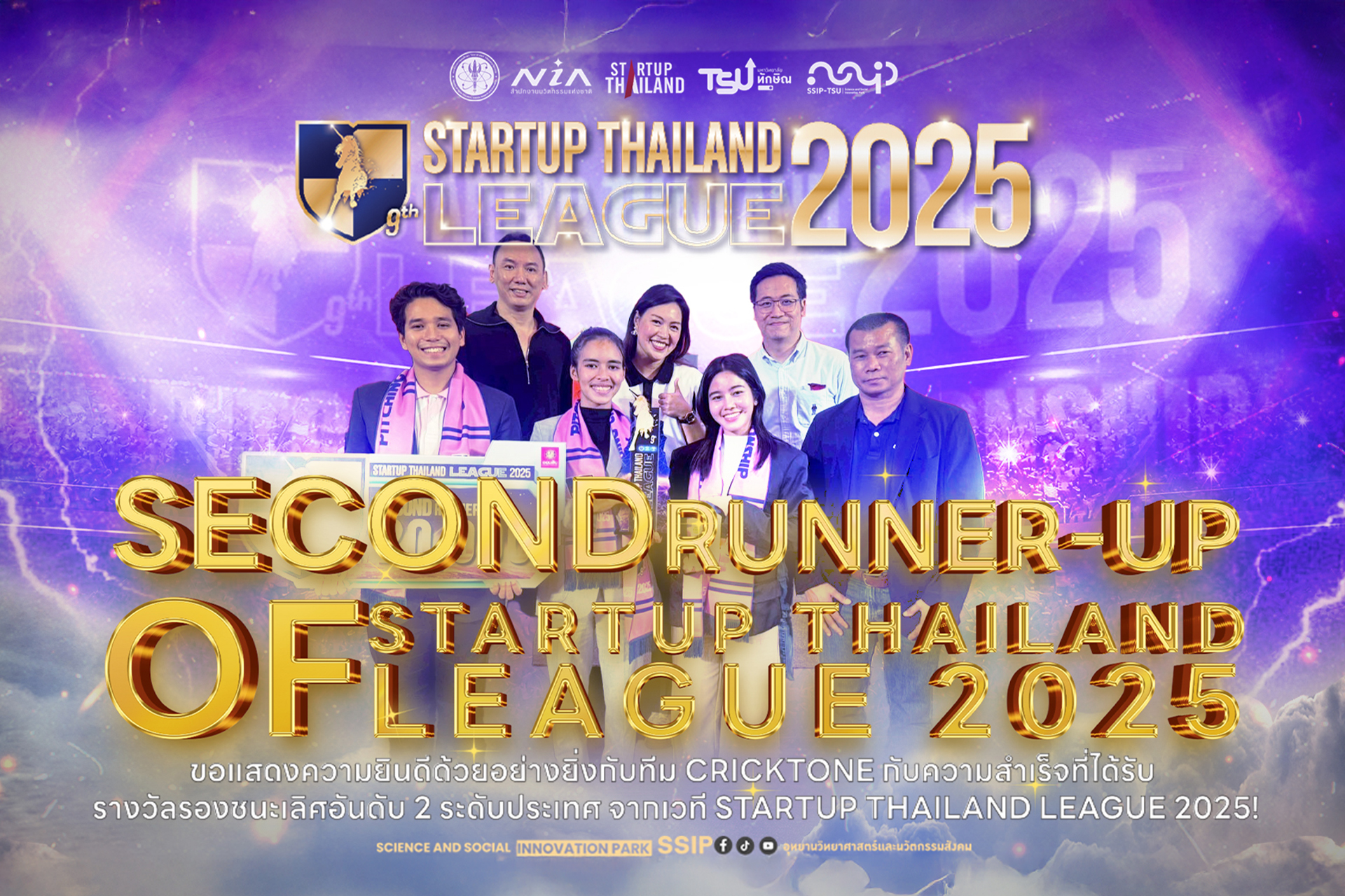 SSIP TSU ขอแสดงความยินดีกับทีม Cricktone  กับความสำเร็จคว้ารางวัล รองชนะเลิศอันดับ 2 ระดับประเทศ จากเวที Startup Thailand League 2025