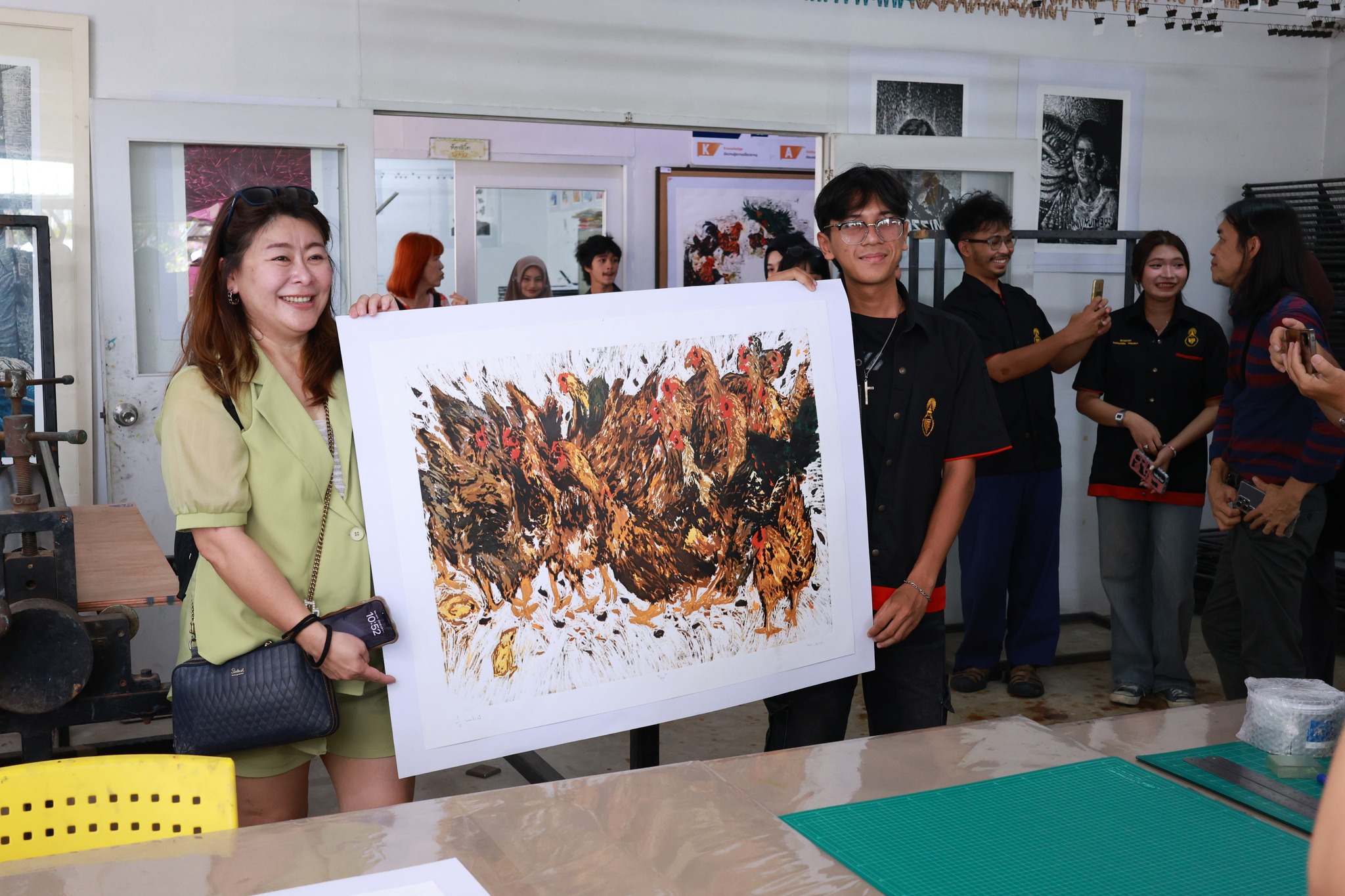 นับเป็นอีกหนึ่งก้าวสำคัญในการเชื่อมโยงความร่วมมือระหว่างสถาบันการศึกษากับชุมชน และส่งเสริมการแลกเปลี่ยนองค์ความรู้ทางศิลปะอย่างสร้างสรรค์ เมื่อวันเสาร์ที่ 5 กรกฎาคม 2568 ณ ห้องประชุมคณะศิลปกรรมศาสตร์ และสตูดิโอภาพพิมพ์หลักสูตรทัศนศิลป์