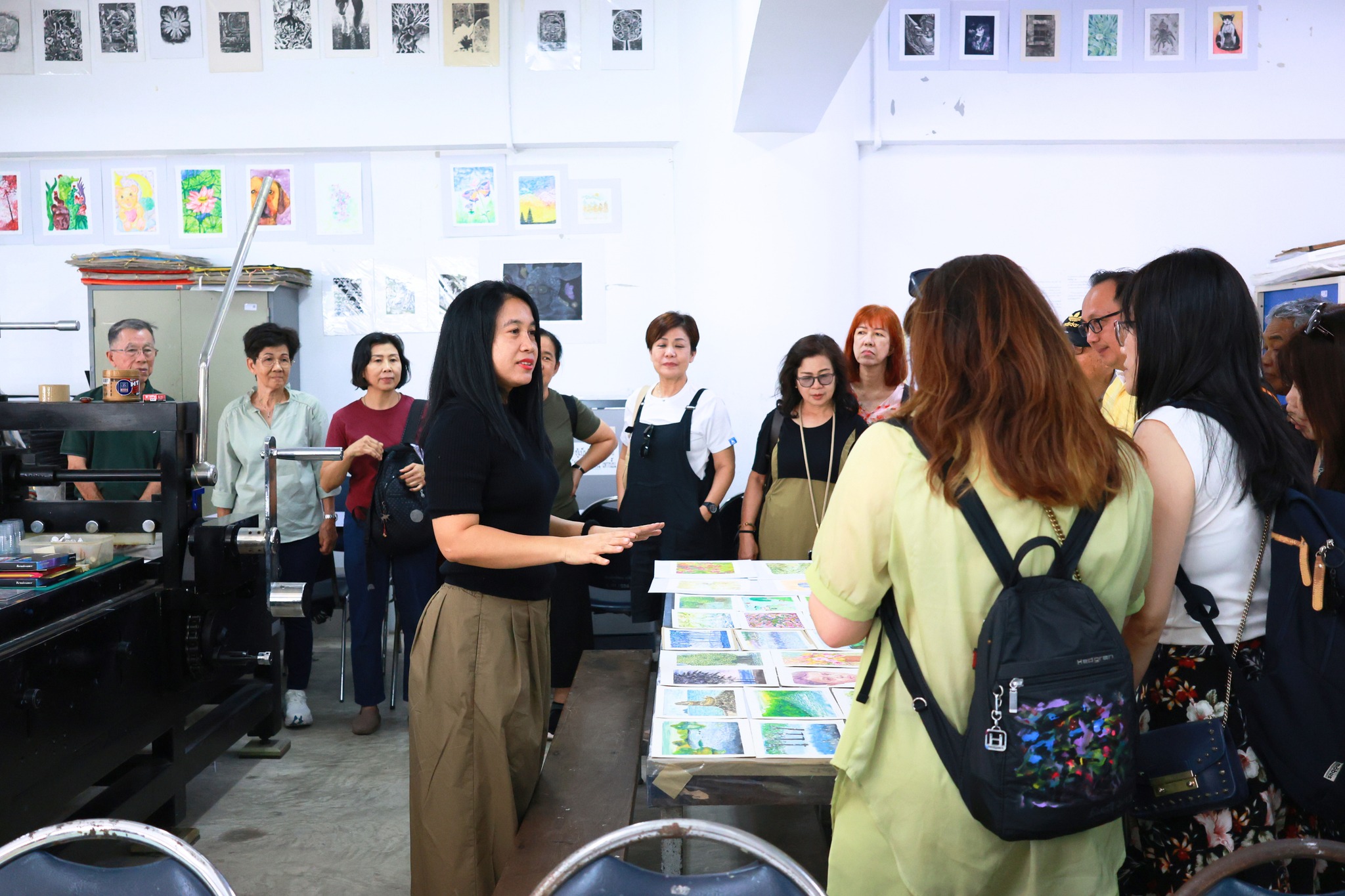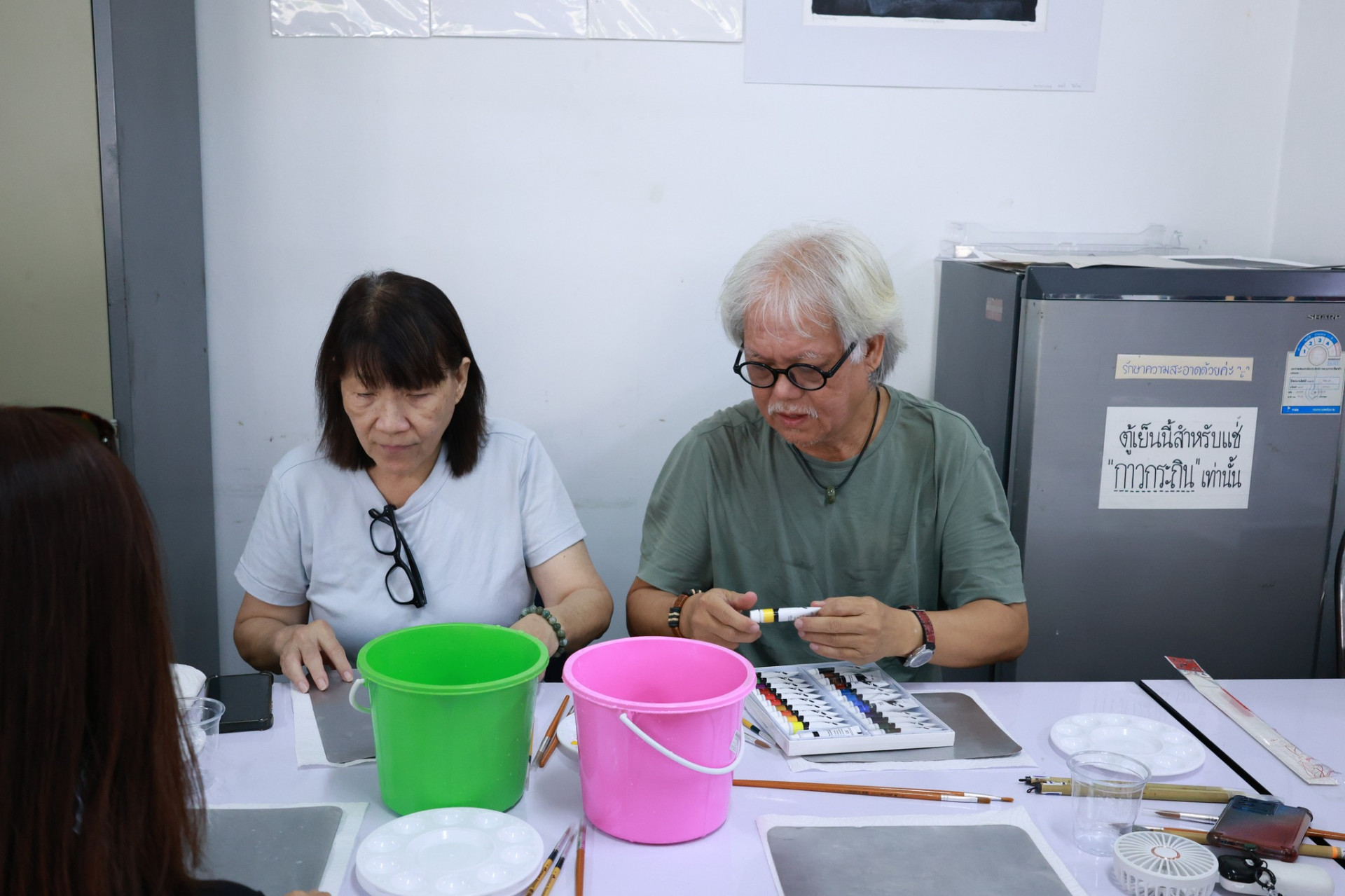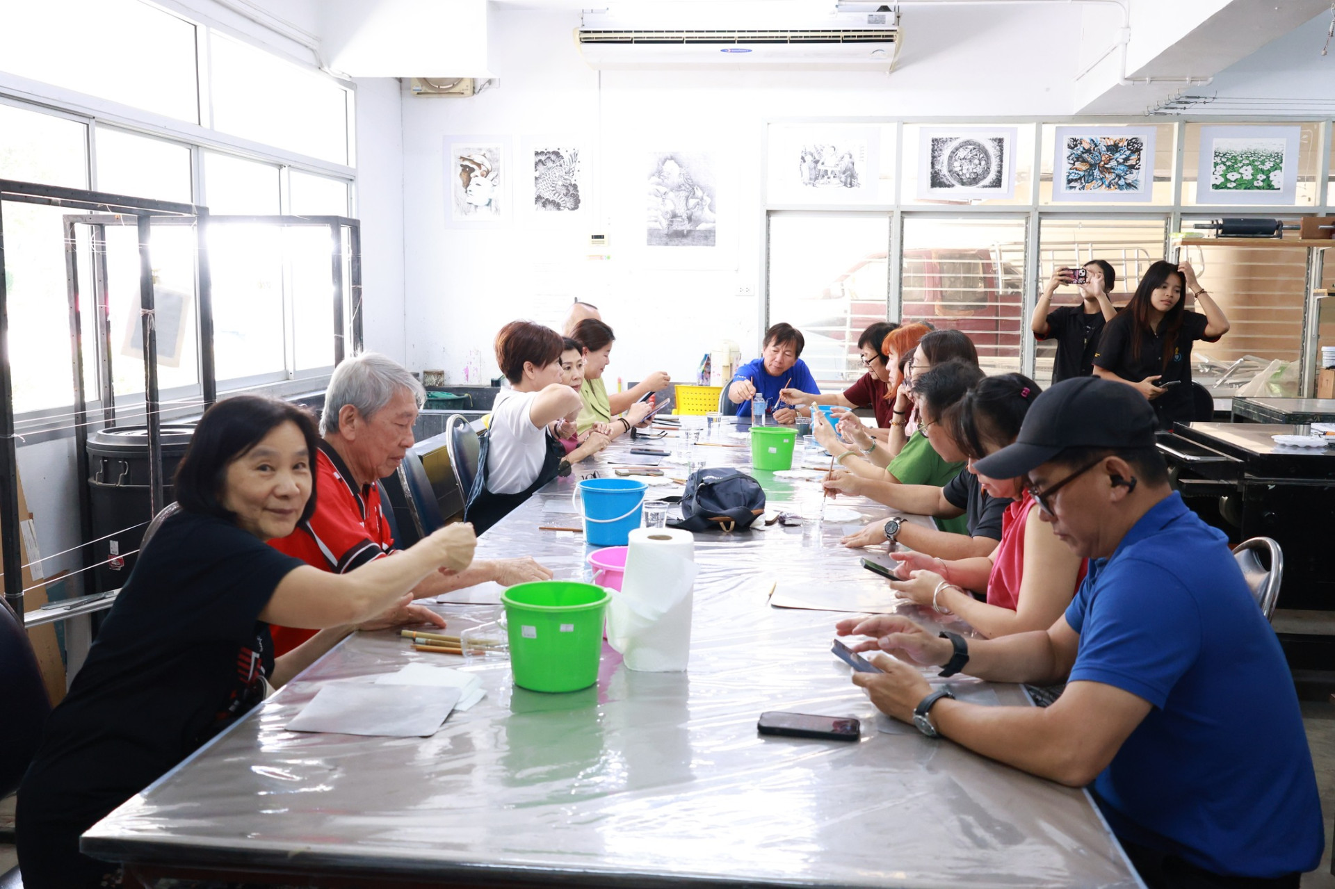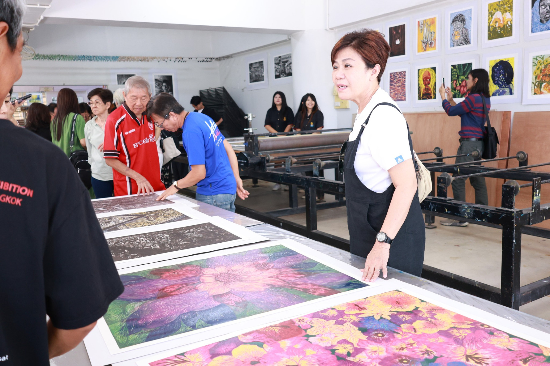 สำหรับการเยี่ยมชมครั้งนี้ สมาคมฯ มีความสนใจต่อกระบวนการสร้างสรรค์ผลงานภาพพิมพ์ และการจัดกิจกรรม Workshop ร่วมกันเพื่อส่งเสริมความรู้ด้านศิลปะให้กับผู้เข้าร่วมทำกิจกรรม โดย ผู้ช่วยศาสตราจารย์ ดร.มณี มีมาก นำเสนอ เทคนิคภาพพิมพ์ Mono Print สีน้ำ พร้อมทั้งเปิดโอกาสให้ผู้ร่วมกิจกรรมได้ทดลองสร้างสรรค์ผลงานผ่านเทคนิคภาพพิมพ์ สร้างประสบการณ์ใหม่ทางศิลปะที่ทั้งสนุกและเสริมสร้างความเข้าใจในกระบวนการสร้างสรรค์