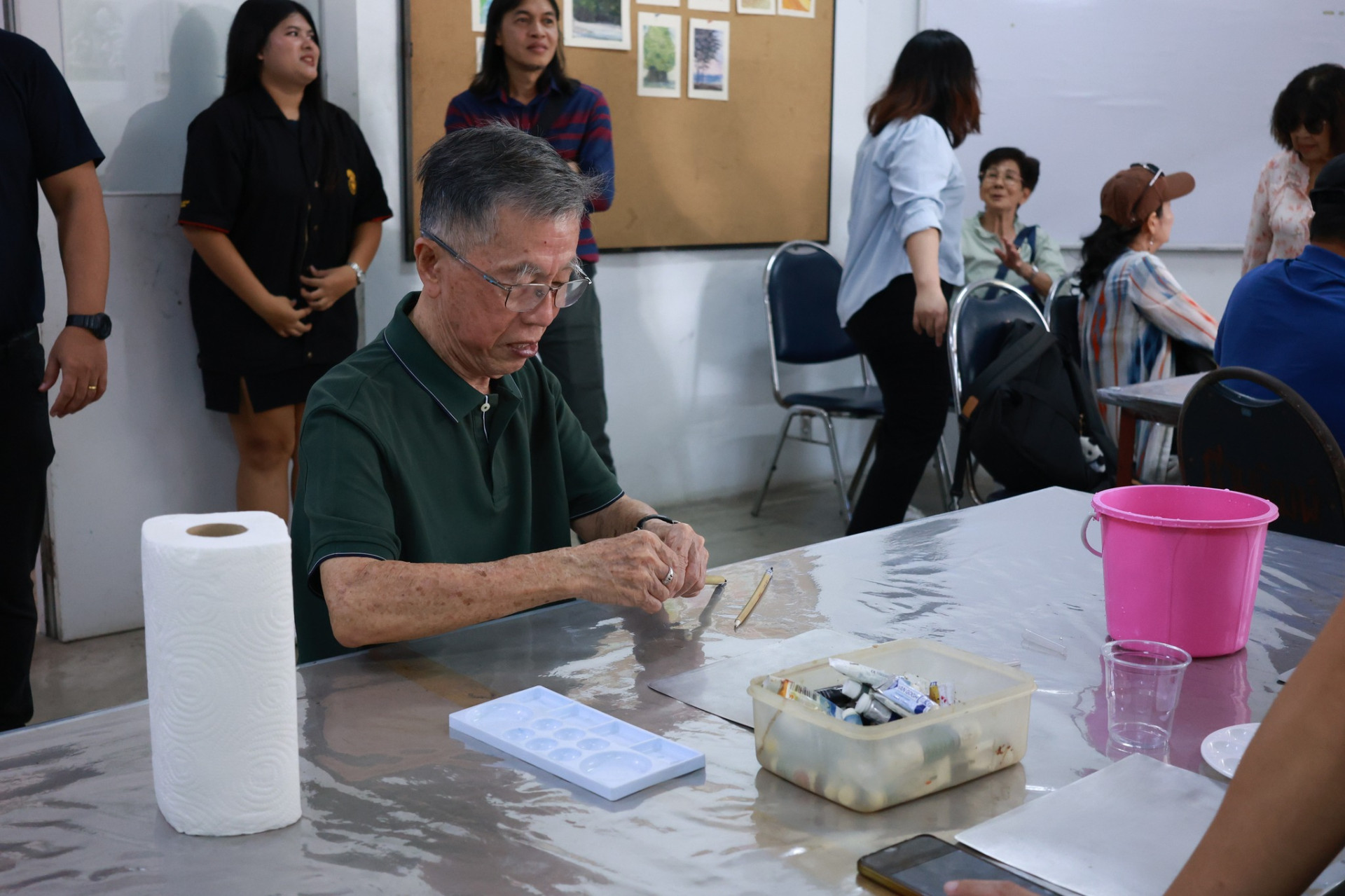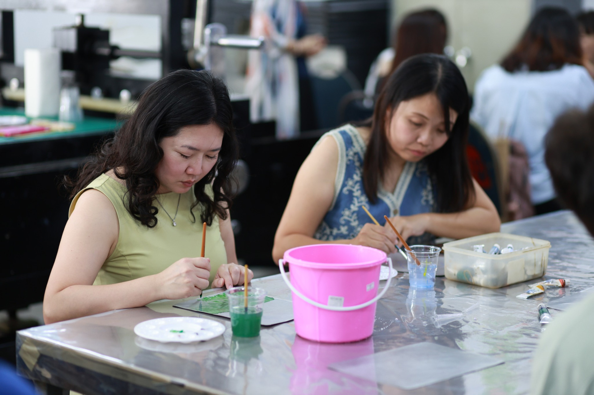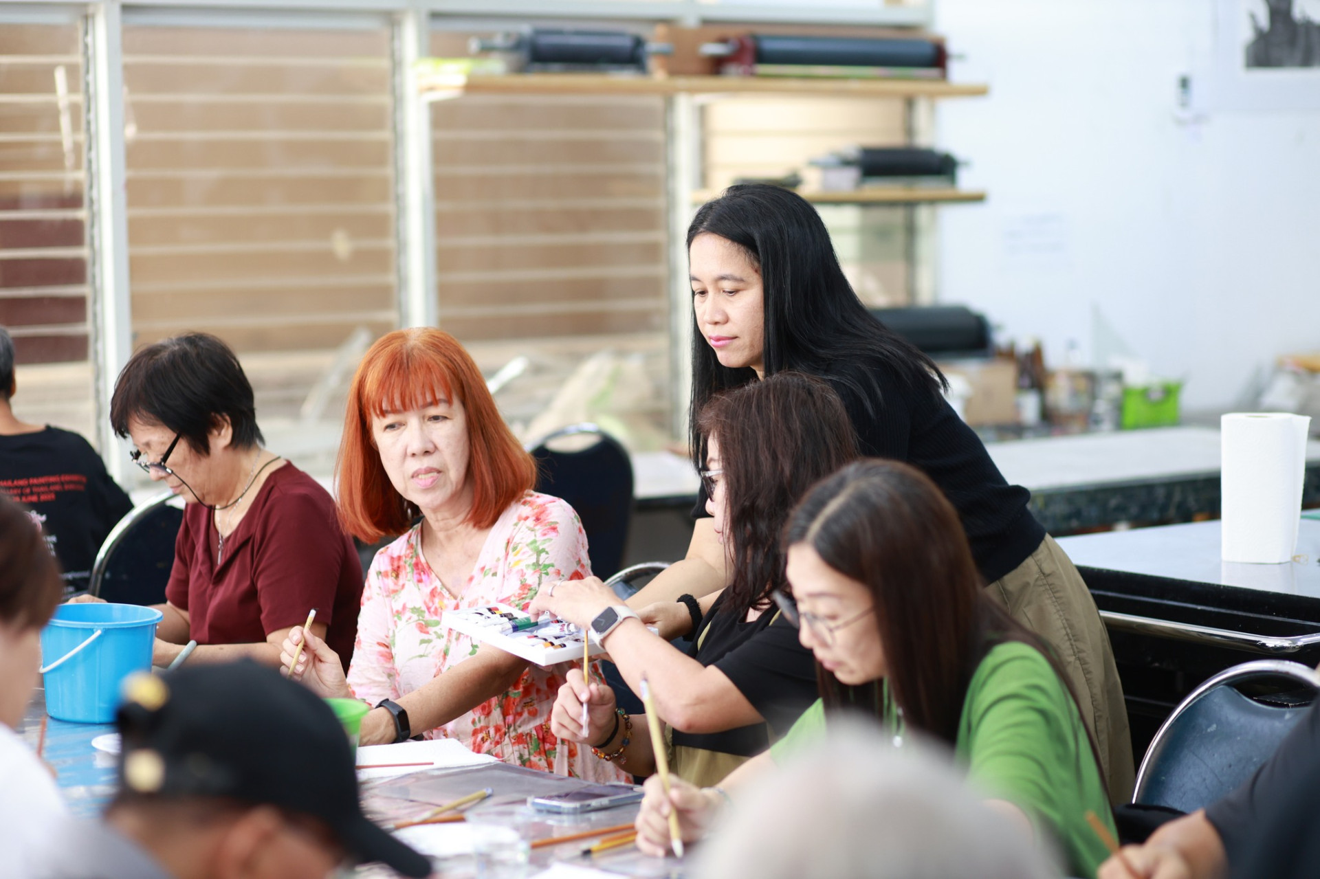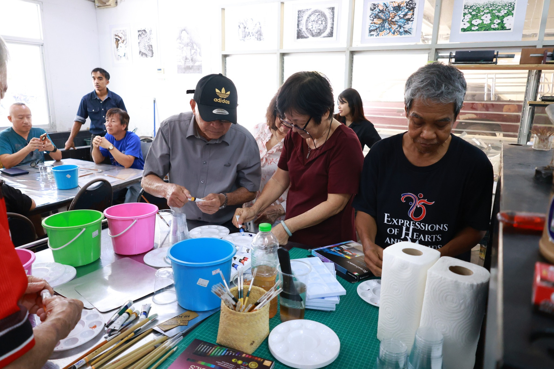 สำหรับการเยี่ยมชมครั้งนี้ สมาคมฯ มีความสนใจต่อกระบวนการสร้างสรรค์ผลงานภาพพิมพ์ และการจัดกิจกรรม Workshop ร่วมกันเพื่อส่งเสริมความรู้ด้านศิลปะให้กับผู้เข้าร่วมทำกิจกรรม โดย ผู้ช่วยศาสตราจารย์ ดร.มณี มีมาก นำเสนอ เทคนิคภาพพิมพ์ Mono Print สีน้ำ พร้อมทั้งเปิดโอกาสให้ผู้ร่วมกิจกรรมได้ทดลองสร้างสรรค์ผลงานผ่านเทคนิคภาพพิมพ์ สร้างประสบการณ์ใหม่ทางศิลปะที่ทั้งสนุกและเสริมสร้างความเข้าใจในกระบวนการสร้างสรรค์