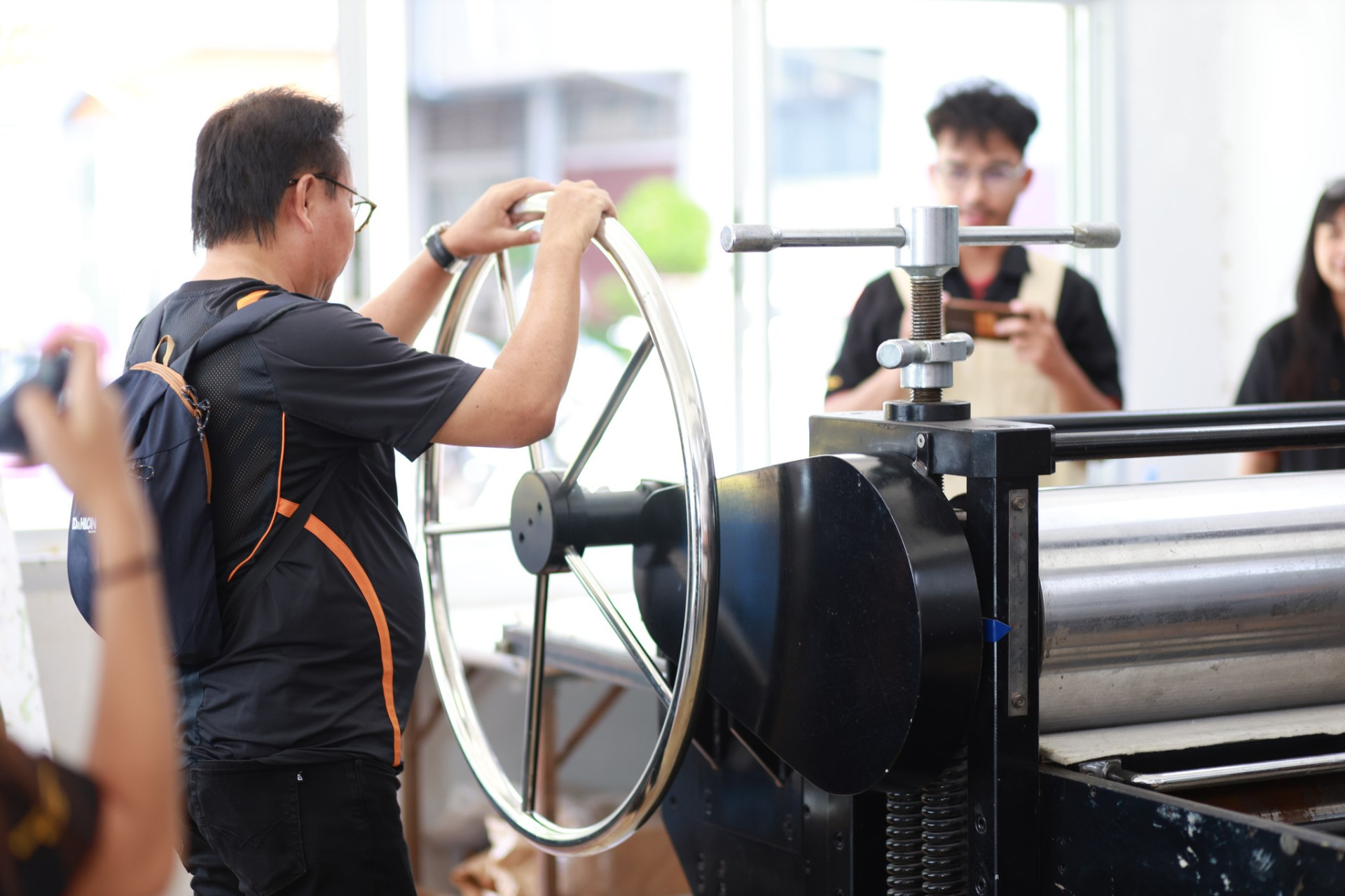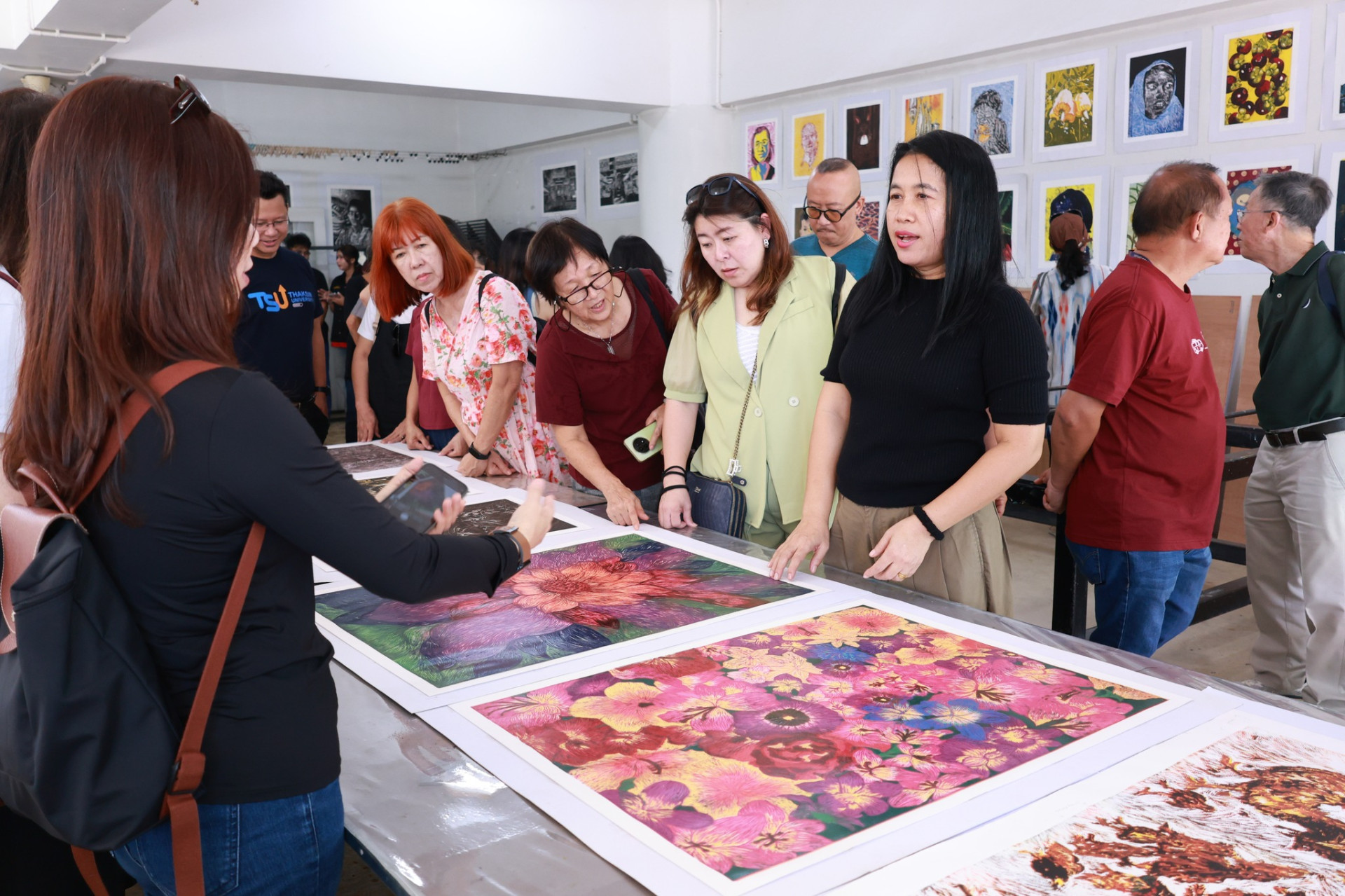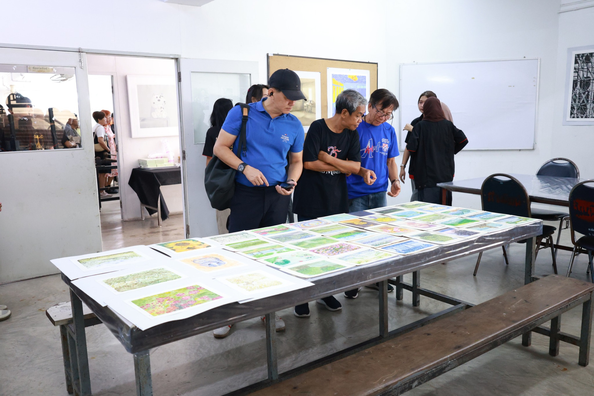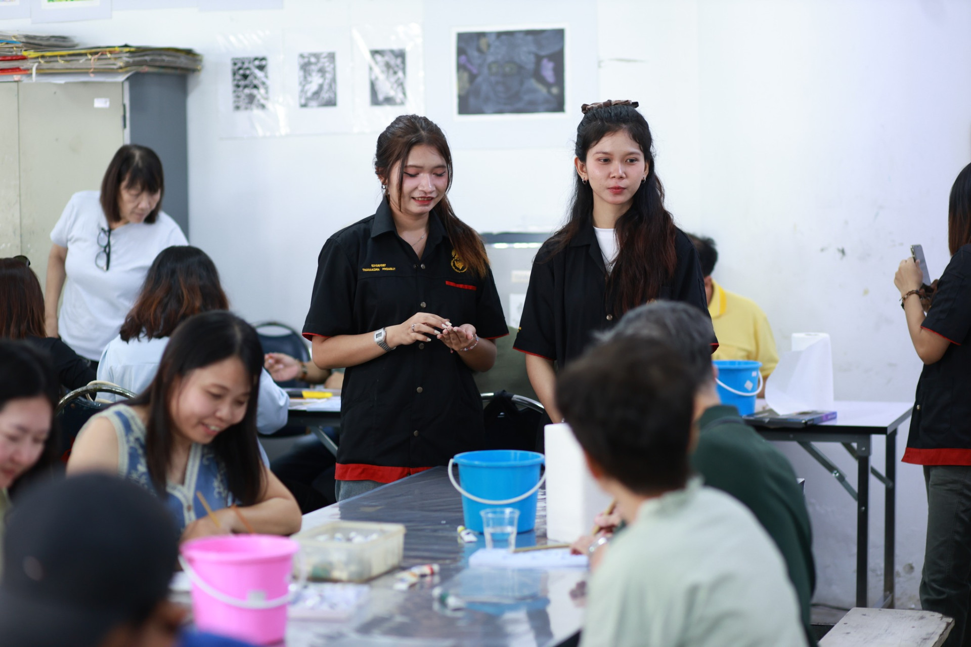 ในโอกาสนี้สมาคมการประดิษฐ์ตัวอักษรและจิตรกรรมสุไหงปัตตานี ประเทศมาเลเซีย ได้เดินทางเข้าเยี่ยมชมคณะศิลปกรรมศาสตร์ และสตูดิโอภาพพิมพ์ของหลักสูตร ศป.บ.ทัศนศิลป์ ภายใต้กิจกรรม “สีสันแห่งมิตรภาพ : นิทรรศการไทย-มาเลเซีย 2025” เพื่อแลกเปลี่ยนประสบการณ์และชมผลงานของนิสิตในแขนงศิลปะภาพพิมพ์