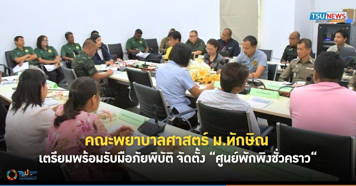 คณะพยาบาลศาสตร์ มหาวิทยาลัยทักษิณ ระดมความคิดเห็นเตรียมพร้อมจัดตั้ง “ศูนย์พักพิงภัยพิบัติ มหาวิทยาลัยทักษิณ” ในการช่วยเหลือประชาชนกรณีเกิดสถานการณ์ฉุกเฉิน พร้อมส่งเสริมบทบาทของพยาบาลในด้านการจัดการภัยพิบัติอย่างยั่งยืน
