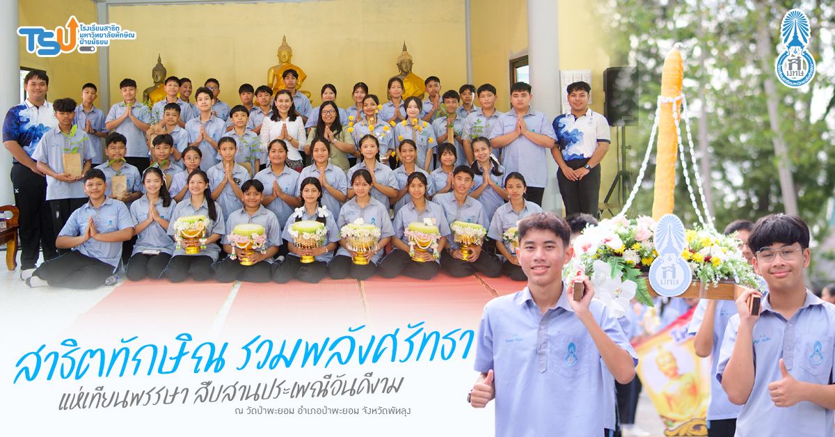 โรงเรียนสาธิตมหาวิทยาลัยทักษิณ ฝ่ายมัธยม จัดโครงการหล่อเทียนและแห่เทียนพรรษา เนื่องในวันอาสาฬหบูชาและวันเข้าพรรษา โดยคณะผู้บริหาร ครู และนักเรียน ม.2 ได้ร่วมทำบุญและแห่เทียนไปถวาย ณ วัดป่าพะยอม อ.ป่าพะยอม จ.พัทลุง กิจกรรมนี้จัดขึ้นเพื่อให้นักเรียนและบุคลากรได้เรียนรู้ถึงความสำคัญของวันสำคัญทางพุทธศาสนา และได้ประพฤติตนตามหลักธรรมอย่างถูกต้อง เหมาะสม และเป็นการร่วมกันทำนุบำรุงพระพุทธศาสนา โครงการนี้ยังเป็นการสืบสาน อนุรักษ์ประเพณีและวัฒนธรรมอันดีงามของไทยให้คงอยู่สืบไป