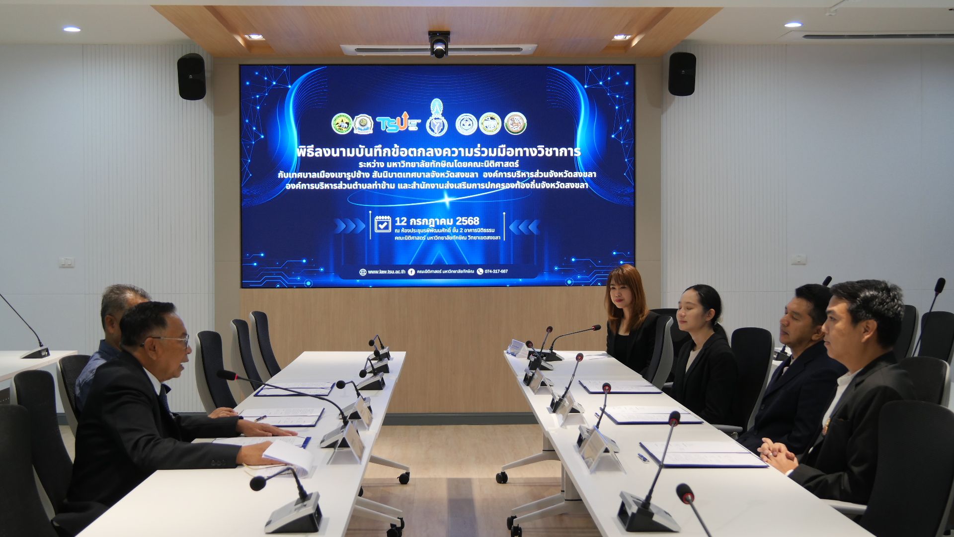 พิธีลงนามบันทึกข้อตกลงความร่วมมือทางวิชาการ ระหว่าง คณะนิติศาสตร์ มหาวิทยาลัยทักษิณ กับหน่วยงานองค์กรปกครองส่วนท้องถิ่นในจังหวัดสงขลา เพื่อขับเคลื่อนการศึกษาและสร้างประโยชน์ให้แก่สังคมอย่างยั่งยืน