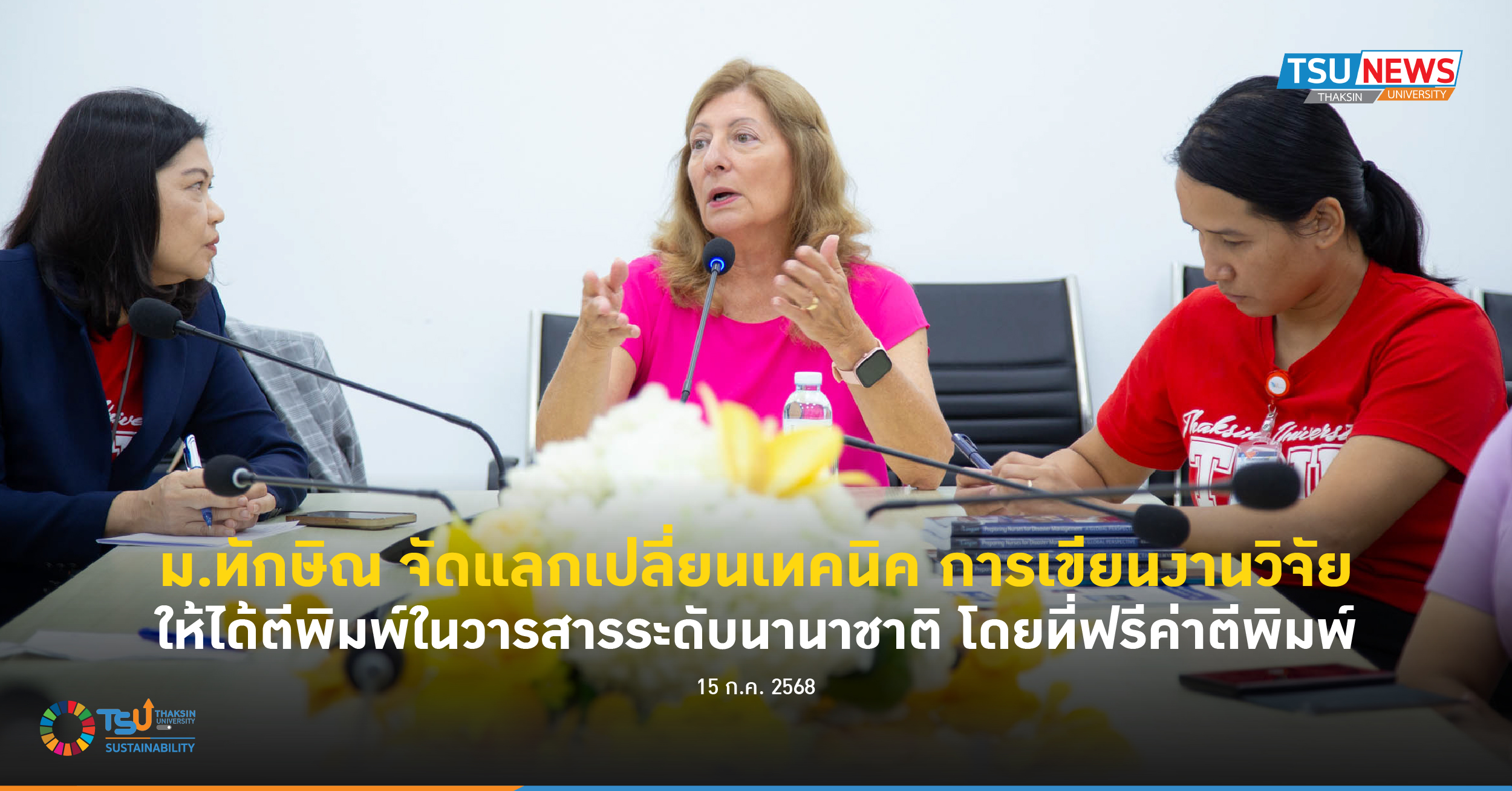 วันที่ 15 กรกฎาคม 2568 คณะพยาบาลศาสตร์ มหาวิทยาลัยทักษิณ ร่วมกับ สถาบันวิจัยและนวัตกรรม มหาวิทยาลัยทักษิณ จัดกิจกรรมแลกเปลี่ยนเรียนรู้หัวข้อ “การเขียนงานวิจัยอย่างไรให้ได้ตีพิมพ์ในวารสารระดับนานาชาติ โดยที่ฟรีค่าตีพิมพ์” เพื่อเสริมสร้างศักยภาพด้านการวิจัยแก่คณาจารย์ภายในมหาวิทยาลัย และเปิดโอกาสให้ผู้สนใจได้รับความรู้จากประสบการณ์จริงของผู้เชี่ยวชาญระดับนานาชาติ