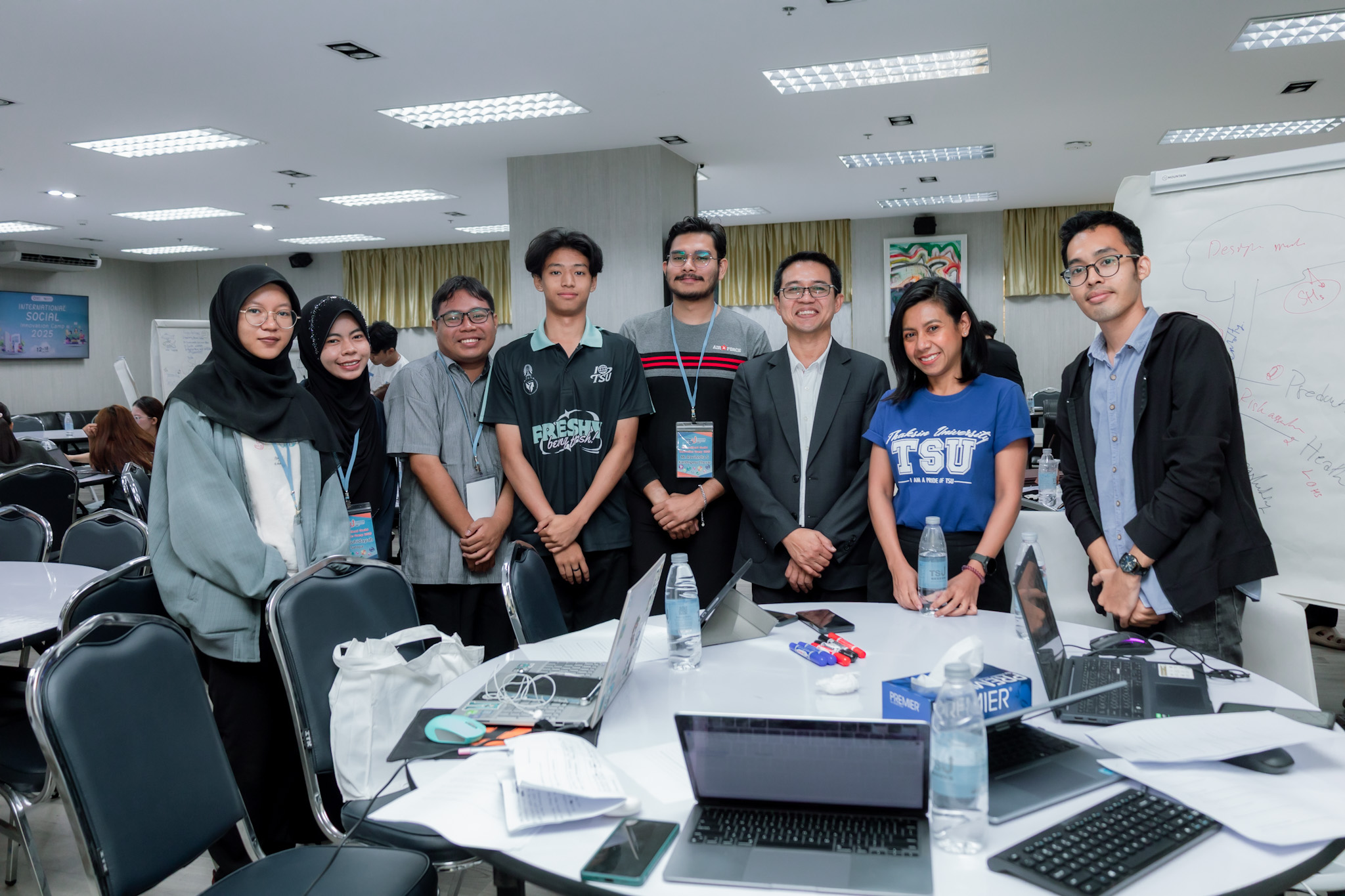 รองศาสตราจารย์ ดร.ณฐพงศ์ จิตรนิรัตน์ อธิการบดีมหาวิทยาลัยทักษิณ เยี่ยมนิสิตและคณะวิทยากร ในการอบรม ค่ายนวัตกรรมสังคมนานาชาติ (International Social Innovation Camp 2025) พื้นที่เชื่อมโยงพลเมืองโลกผ่านภาษา วัฒนธรรม และนวัตกรรม ส่งพลังใจ เพื่อเป็นขวัญและกำลังใจ ในการร่วมการแข่งขันนำเสนอโครงการนวัตกรรมสังคม (Pitching Competition) ในงาน มหกรรมนวัตกรรมจากผลงานวิจัยภาคใต้และการประกวดสิ่งประดิษฐ์และนวัตกรรม : Southern Innovation Fair 2025