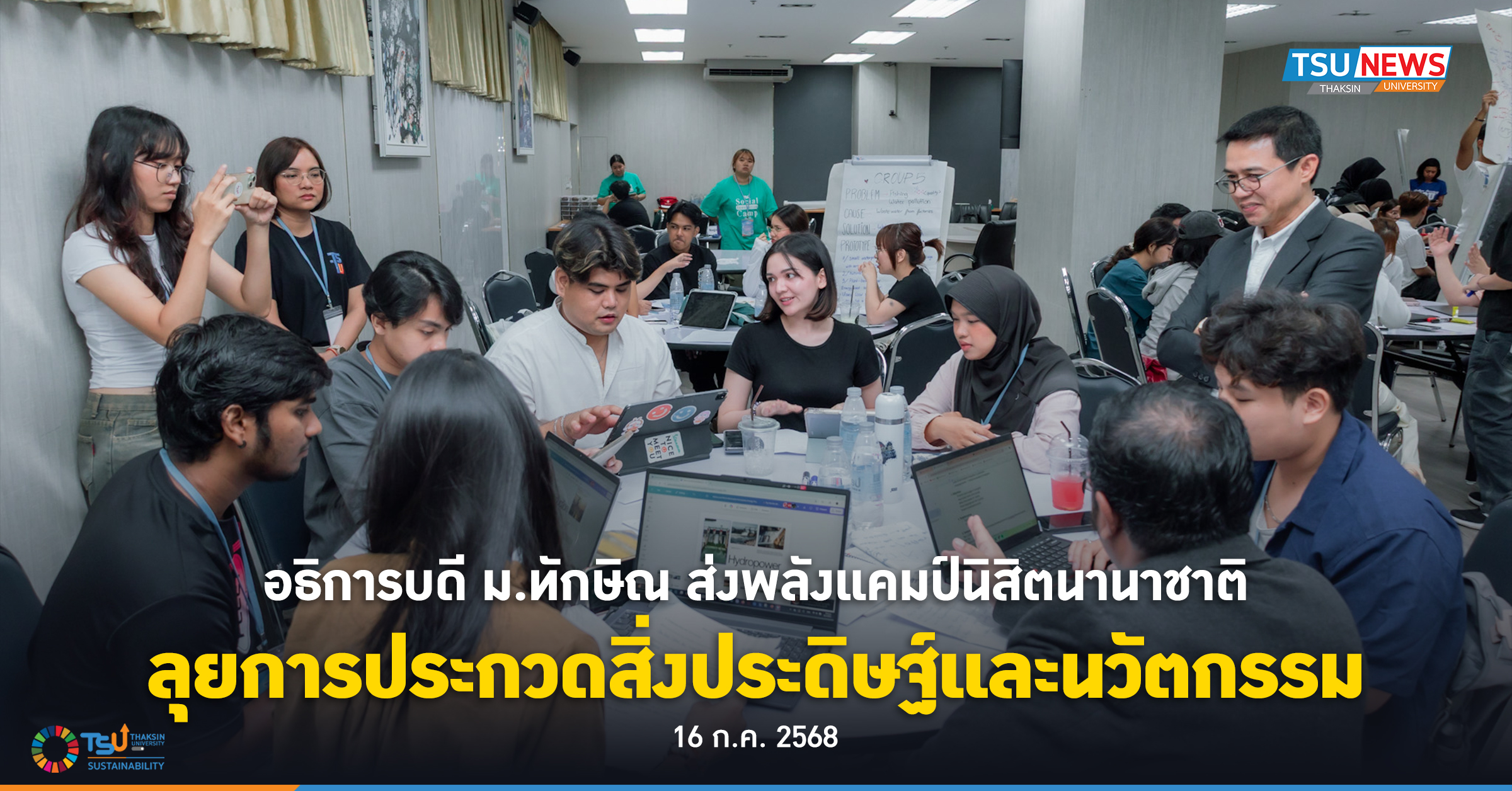 รองศาสตราจารย์ ดร.ณฐพงศ์ จิตรนิรัตน์ อธิการบดีมหาวิทยาลัยทักษิณ เยี่ยมเยียนนิสิตและคณะวิทยากร ในการอบรม ค่ายนวัตกรรมสังคมนานาชาติ (International Social Innovation Camp 2025) พื้นที่เชื่อมโยงพลเมืองโลกผ่านภาษา วัฒนธรรม และนวัตกรรม เมื่อวันที่ 16 กรกฎาคม 2568 ณ ห้องประชุม 18410 ชั้น 4 อาคาร 50 ปี มหาวิทยาลัยทักษิณ วิทยาเขตสงขลา งานวิเทศสัมพันธ์ สำนักงานมหาวิทยาลัยทักษิณ ได้จัดค่ายดังกล่าว ระหว่างวันที่ 12 – 18 กรกฎาคม 2568 ณ มหาวิทยาลัยทักษิณ วิทยาเขตสงขลา และพื้นที่ภาคสนามในจังหวัดพัทลุงและสงขลา เพื่อเตรียมความพร้อมให้นิสิต และนักศึกษาที่เข้าร่วมกิจกรรม ได้ขยายผลการเรียนรู้ สำหรับเตรียมนำเสนอโครงการนวัตกรรมสังคม เพื่อเข้าร่วมการแข่งขันนำเสนอโครงการนวัตกรรมสังคม (Pitching Competition) ในงาน มหกรรมนวัตกรรมจากผลงานวิจัยภาคใต้และการประกวดสิ่งประดิษฐ์และนวัตกรรม : Southern Innovation Fair 2025 ที่กำหนดจัดขึ้น ณ หอเปรมดนตรี มหาวิทยาลัยทักษิณ วิทยาเขตสงขลา ใน ระหว่างวันที่ 17-19 กรกฎาคม 2568 นี้
