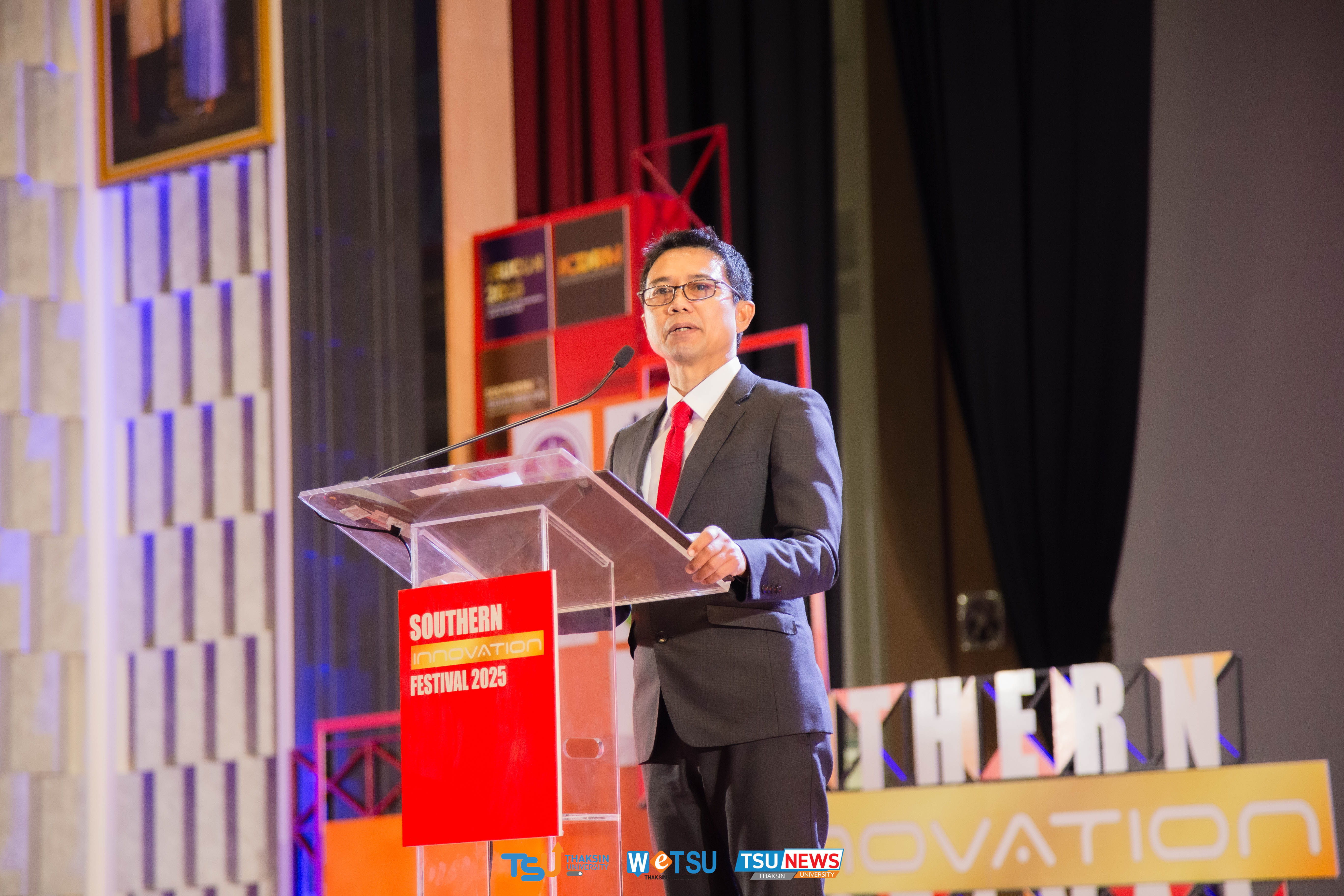 รองศาสตราจารย์ ดร.สมัคร แก้วสุกแสง กล่าวเสริมว่า การจัดกิจกรรมปีนี้มีไฮไลต์ภายในงานที่น่าสนใจ อาทิ การบ่มเพาะทักษะนวัตกรรุ่นใหม่ กิจกรรม Business Talk Show และ Show & Share จากผู้ประกอบการและภาคอุตสาหกรรม BCG และการเรียนรู้ตลอดชีวิต ด้วยกิจกรรม Reskill/Upskill สำหรับทุกช่วงวัย และนิทรรศสิ่งประดิษฐ์และนวัตกรรมผลงานจากเครือข่ายมหาวิทยาลัยในภาคใต้และชุมชนนวัตกรรมเพื่อธุรกิจฐานราก นอกจากนี้ยังมีเวทีการประกวดระดับเยาวชนและอุดมศึกษา “Southern Innovation Awards 2025” เปิดโอกาสให้นักเรียน นักศึกษา และอาชีวศึกษา ร่วมแข่งขันและแสดงผลงานด้านเกษตรและอุตสาหกรรมเกษตร สาธารณสุข สุขภาพ และเทคโนโลยีการแพทย์ ปัญญาประดิษฐ์และอุปกรณ์อัจฉริยะ พลังงาน สิ่งแวดล้อม และโมเดลเศรษฐกิจ BCG และการพัฒนาคุณภาพชีวิตและเศรษฐกิจสร้างสรรค์