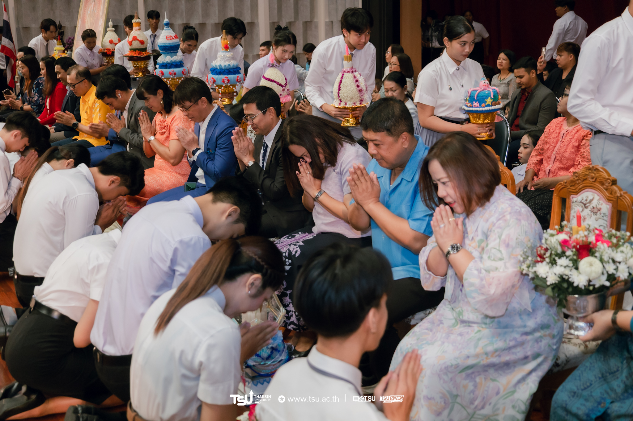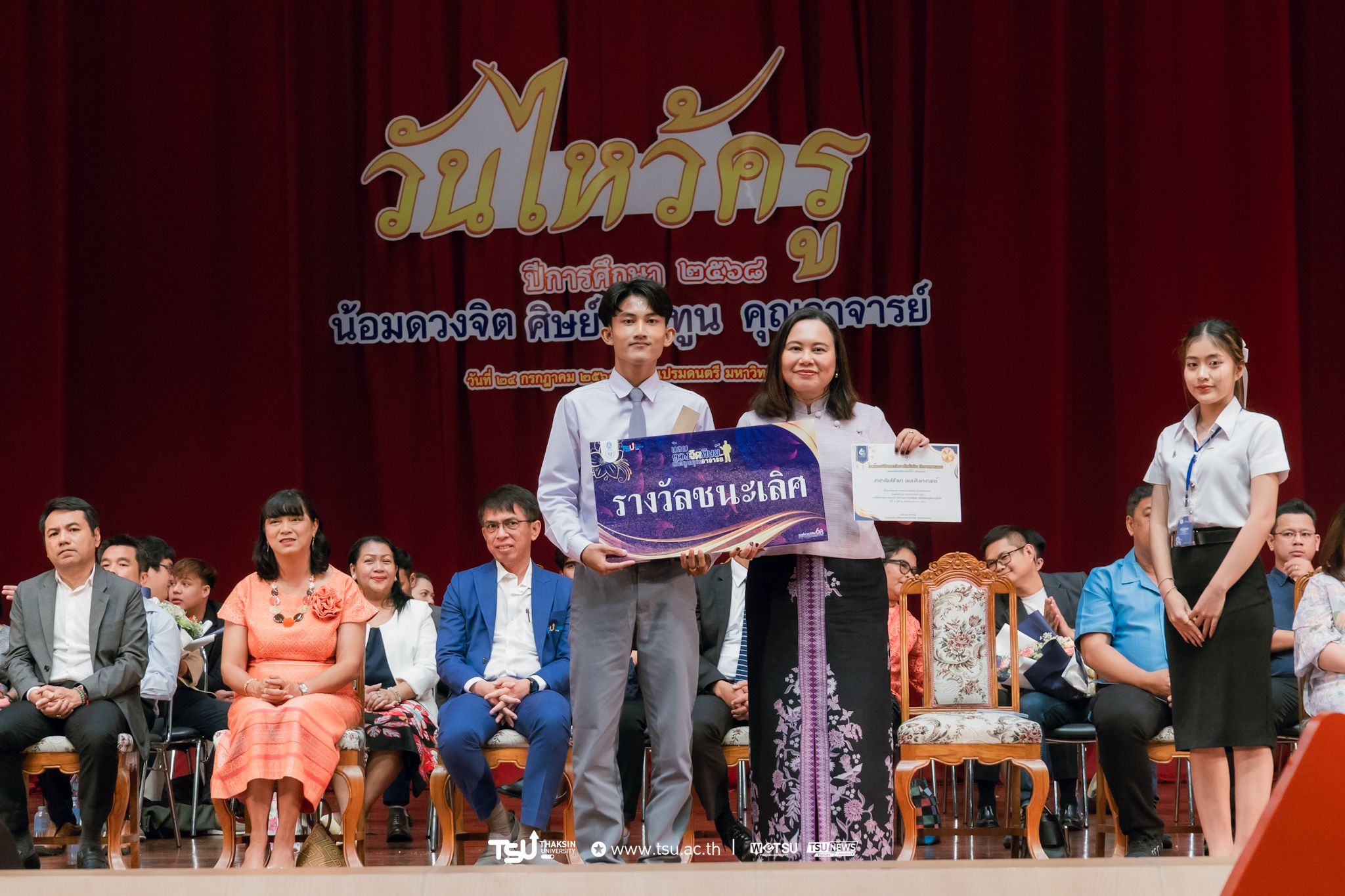 วันนี้ (24 กรกฎาคม 2568) องค์การนิสิตร่วมกับ สภานิสิต สโมสรนิสิตทุกคณะ และฝ่ายกิจการนิสิต มหาวิทยาลัยทักษิณ วิทยาเขตสงขลา จัดพิธีไหว้ครู ประจำปีการศึกษา 2568 เพื่อเป็นการแสดงความเคารพและระลึกถึงพระคุณของครูอาจารย์ ภายใต้งาน "น้อมดวงจิต ศิษย์เทิดทูน คุณอาจารย์" เพื่อสืบสานคุณค่าแห่งความกตัญญู และให้นิสิตแสดงความเคารพและสำนึกในพระคุณของครูผู้ประสิทธิ์ประสาทวิชา เป็นการส่งเสริมอัตลักษณ์อันดีงามของนิสิตใหม่ รวมถึงสืบสานคุณค่าทางวัฒนธรรมในสังคมพหุวัฒนธรรม โดยรองศาสตราจารย์ ดร.ณฐพงศ์ จิตรนิรัตน์ อธิการบดีมหาวิทยาลัยทักษิณ เป็นประธานเปิดงาน และให้โอวาทพร้อมข้อคิดดีๆ แก่นิสิต เพื่อนำไปประยุกต์ใช้ในชีวิตประจำวัน โดยกิจกรรมดังกล่าวมีผู้บริหารและคณาจารย์เข้าร่วมพิธีโดยพร้อมเพรียง