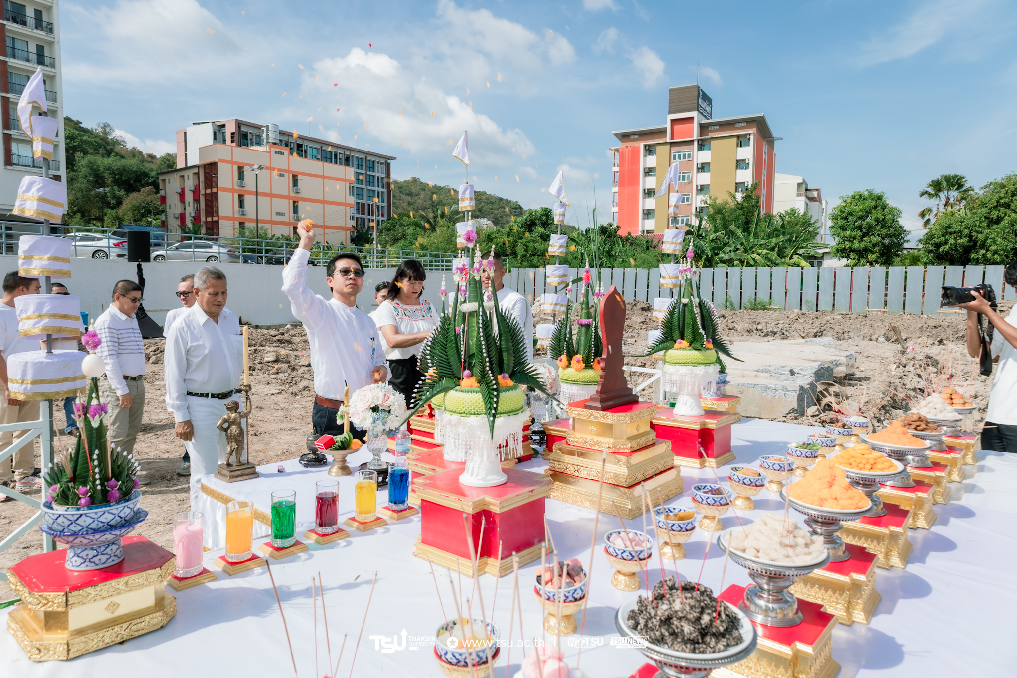 โรงเรียนสาธิตมหาวิทยาลัยทักษิณ ฝ่ายประถม จัดพิธีวางศิลาฤกษ์และลงเสาเอก เพื่อความเป็นสิริมงคลมงคลในการก่อสร้าง